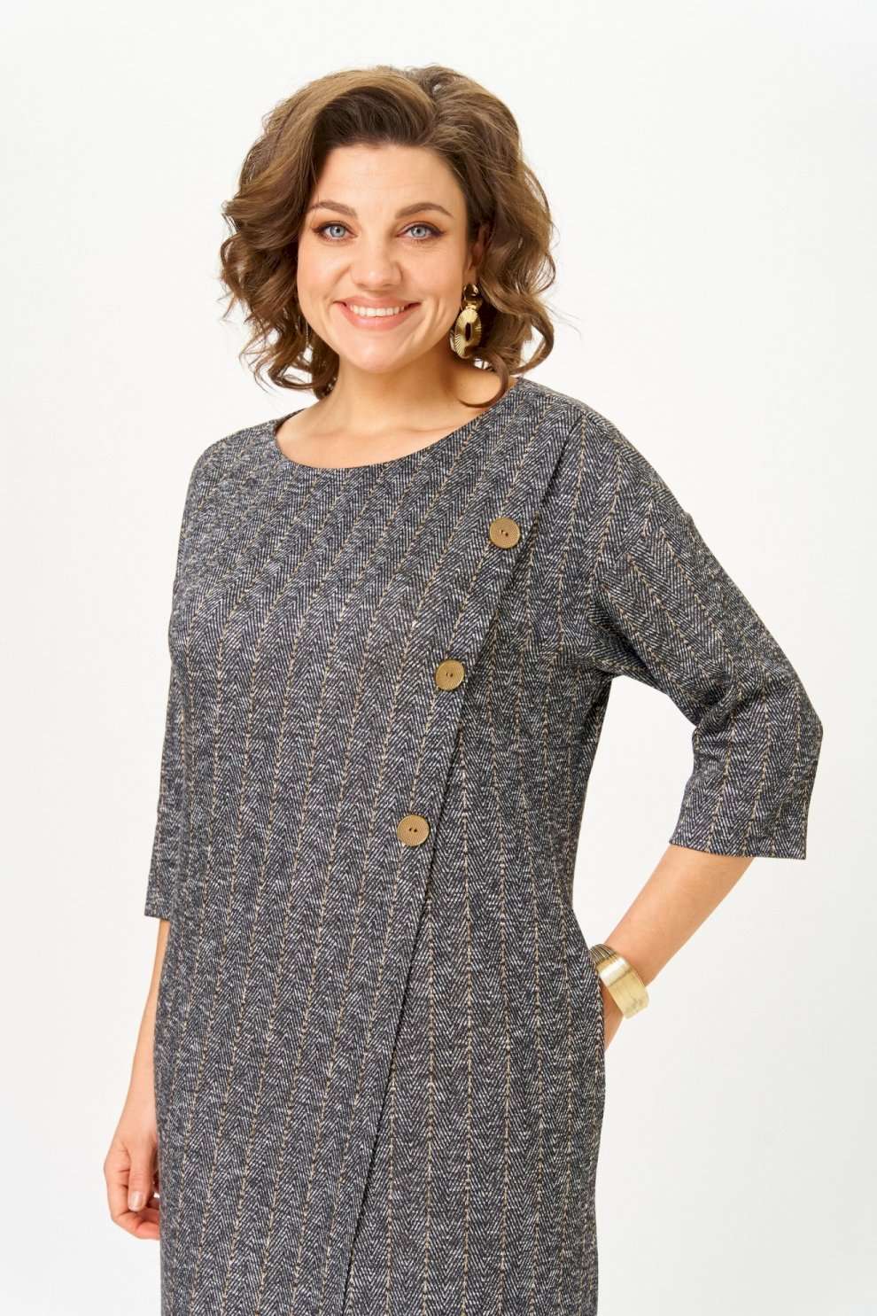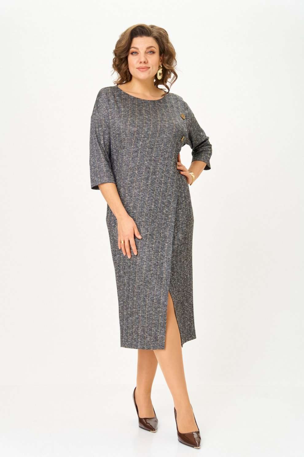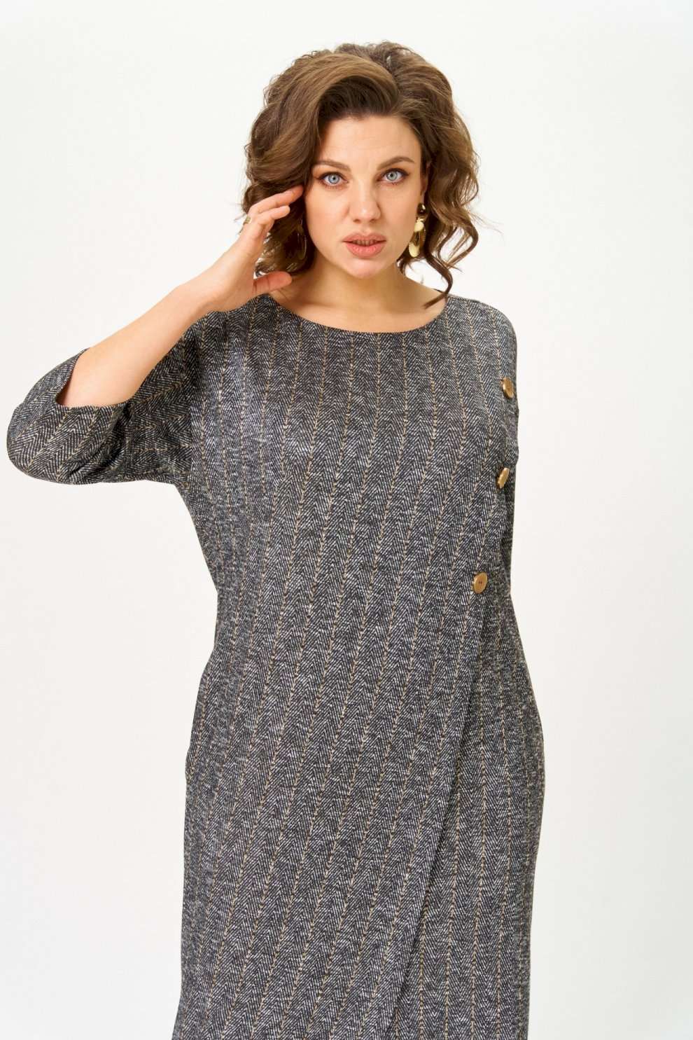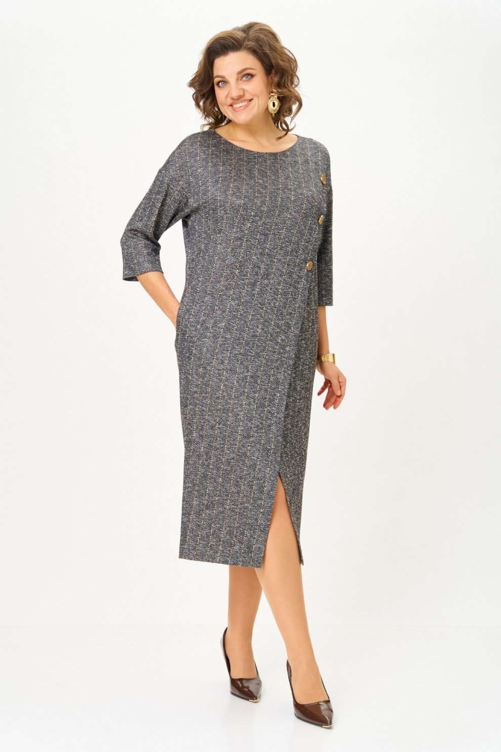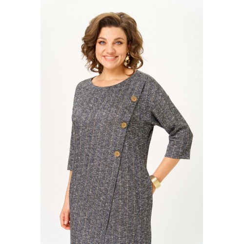 Это платье создано для женщины, которая выбирает уверенность, комфорт и безупречный вкус. Трикотаж с мелким узором мягко держит форму, не подчеркивая лишнего и создавая элегантный силуэт. А имитация асимметричной застёжки с декоративными пуговицами добавляет изюминку и визуально вытягивает фигуру. Платье идеально садится на любую фигуру. Декоративные пуговицы создают акцент и утонченность без лишнего блеска. Трикотаж средней плотности — не мнётся, комфортен, приятен к телу. Подходит для офиса, прогулок и особых случаев — всё зависит от настроения и аксессуаров. Лёгкий разрез спереди добавляет женственности и свободы движения. Длина платья по спинке 115 см +\\- 1 см, длина рукава 50 см +\\-1 см. Изделие подойдет на рост 170 см