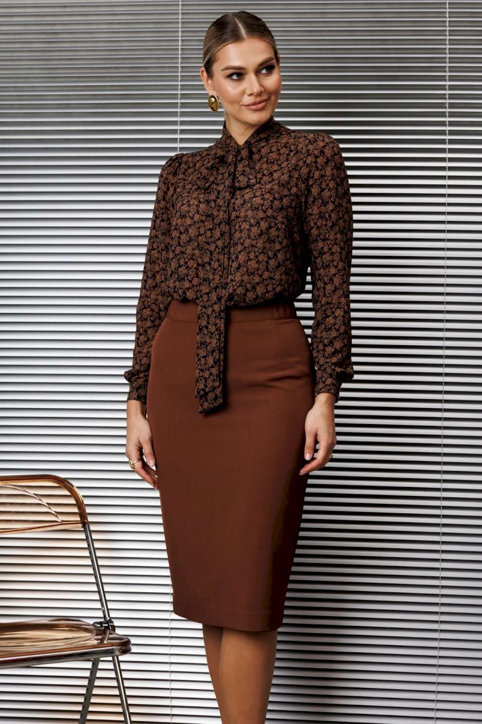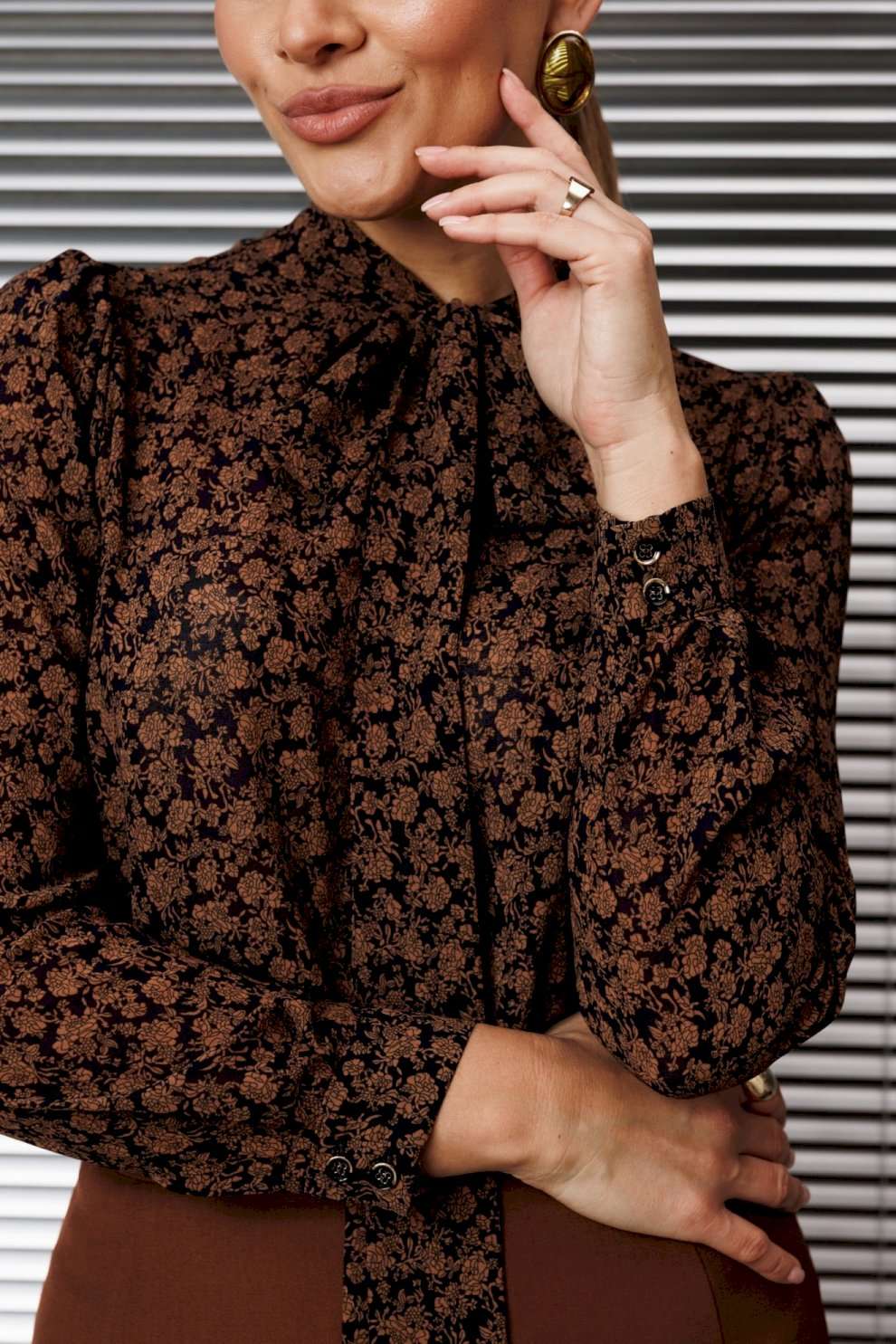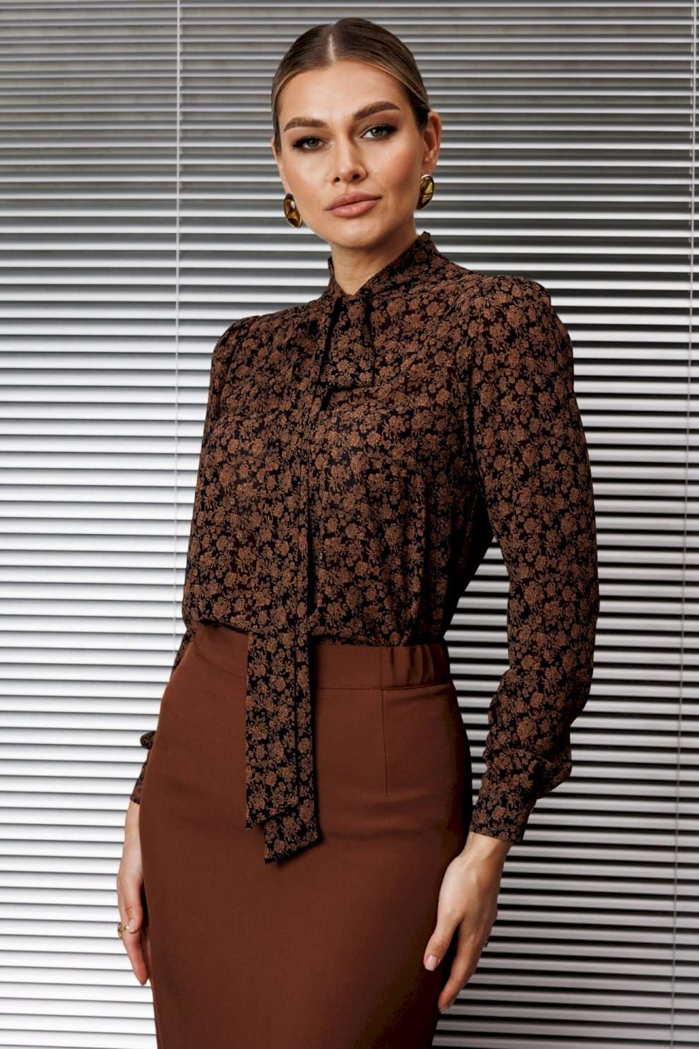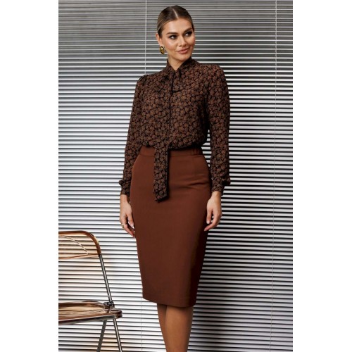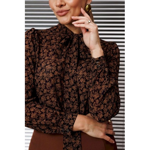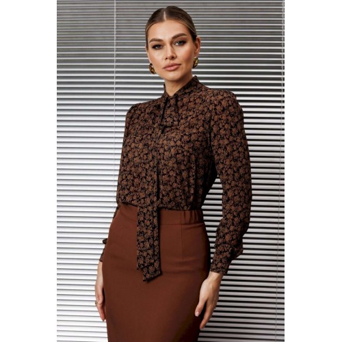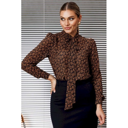 Эта классическая блузка отличается элегантным дизайном и вниманием к деталям. Блуза прямого силуэта, в боковых швах с разрезами, по переду с нагрудной вытачкой. Воротник-стойка, переходящий в бант. Рукав втачной, одношовный, снизу на манжете. Сверху по окату со сборкой. длина по спинке: 71см длина рукава: 62,5 см