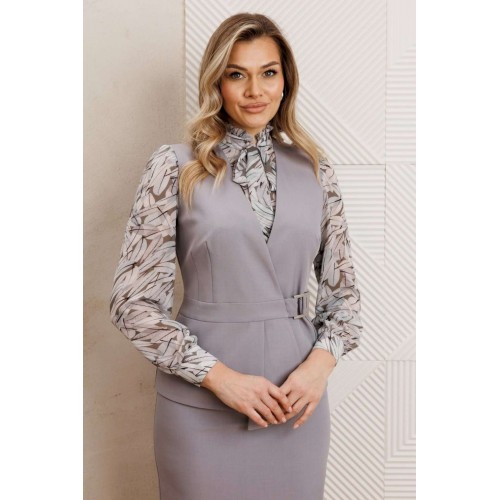 Состав: Жилет, юбка: полиэстер 65%, вискоза 33%, спандекс 2% блуза:, полиэстер 100% (шифон)