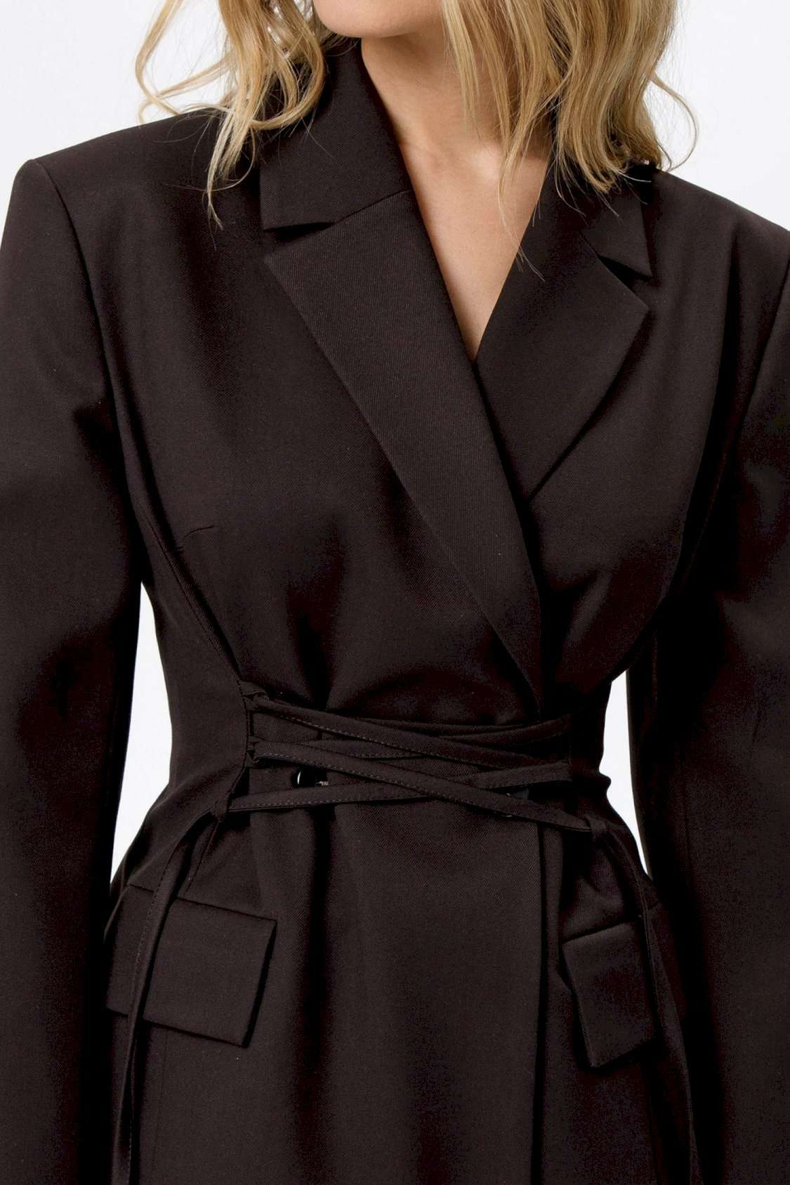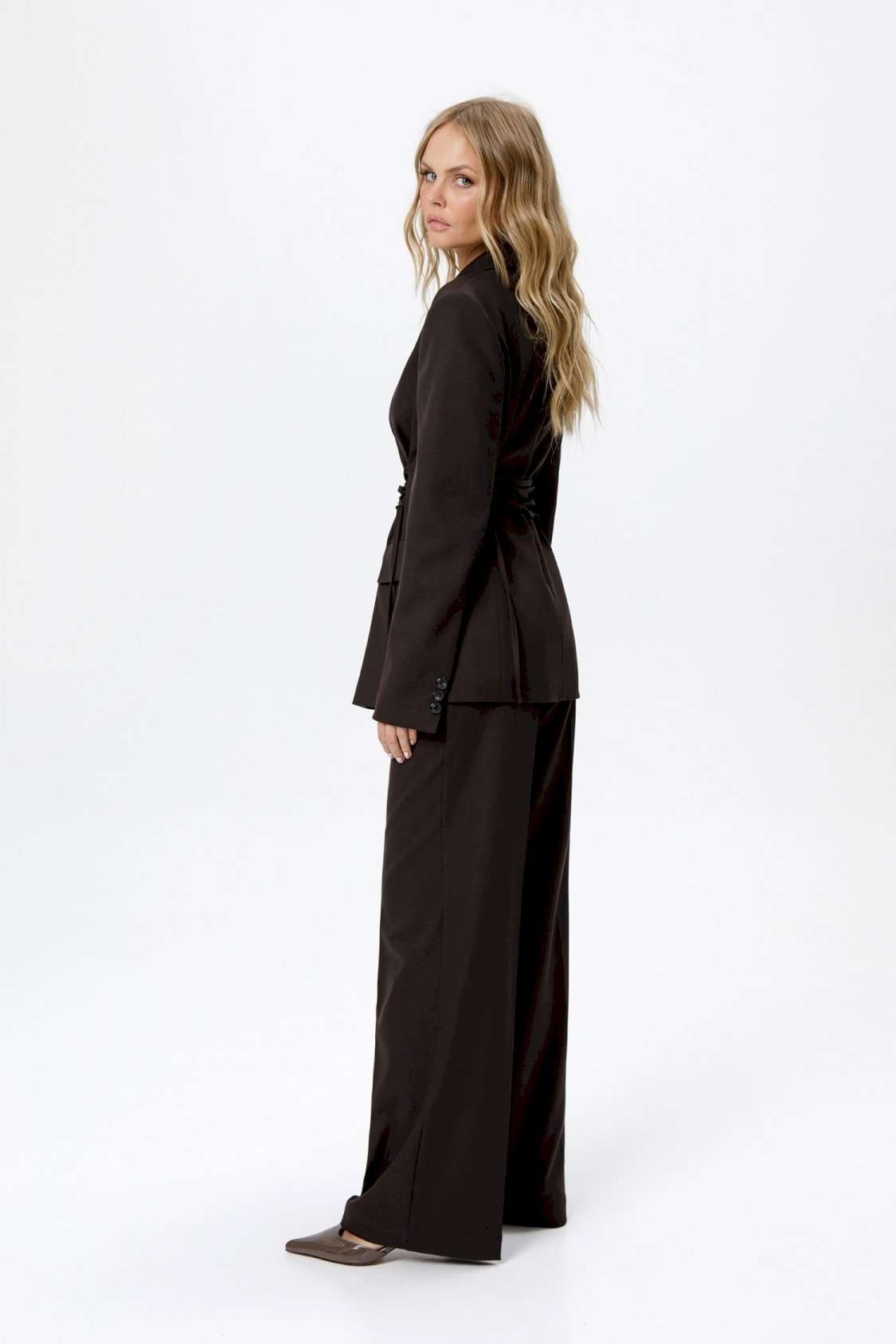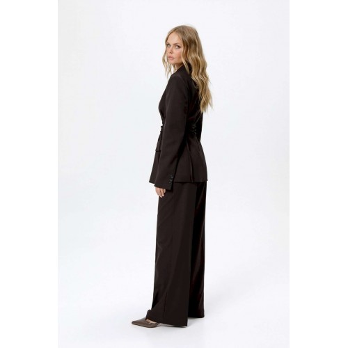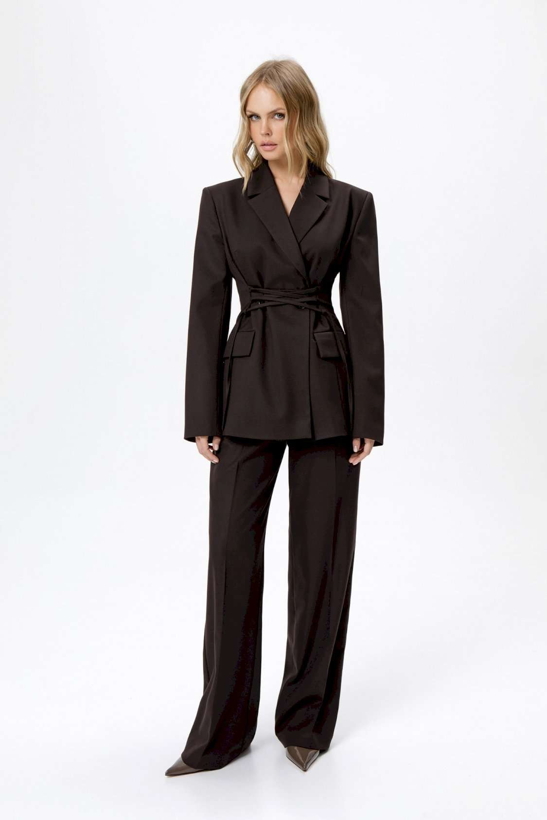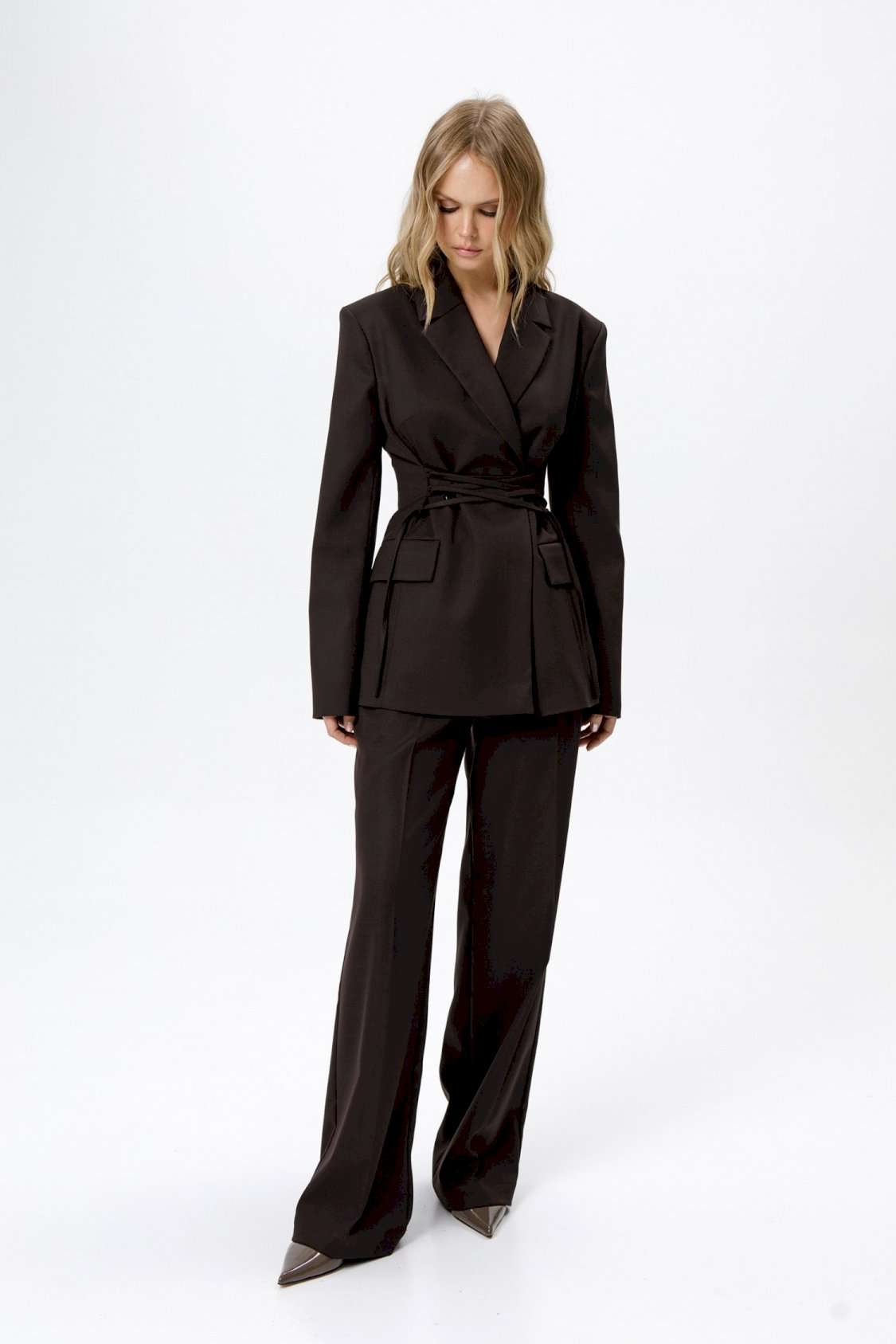 Жакет со шнуровкой. Детали: жакет полуприлегающего силуэта, расширенные плечи, рельефы, пиджачный воротник, застежка на две петли и пуговицы, функциональные карманы, жакет на подкладке. Жакет также можно зашнуровать по бокам. Длина по спинке около 69 в размерах 40-46 и около 72 см в размерах 48-52, длина рукавов около 61 см