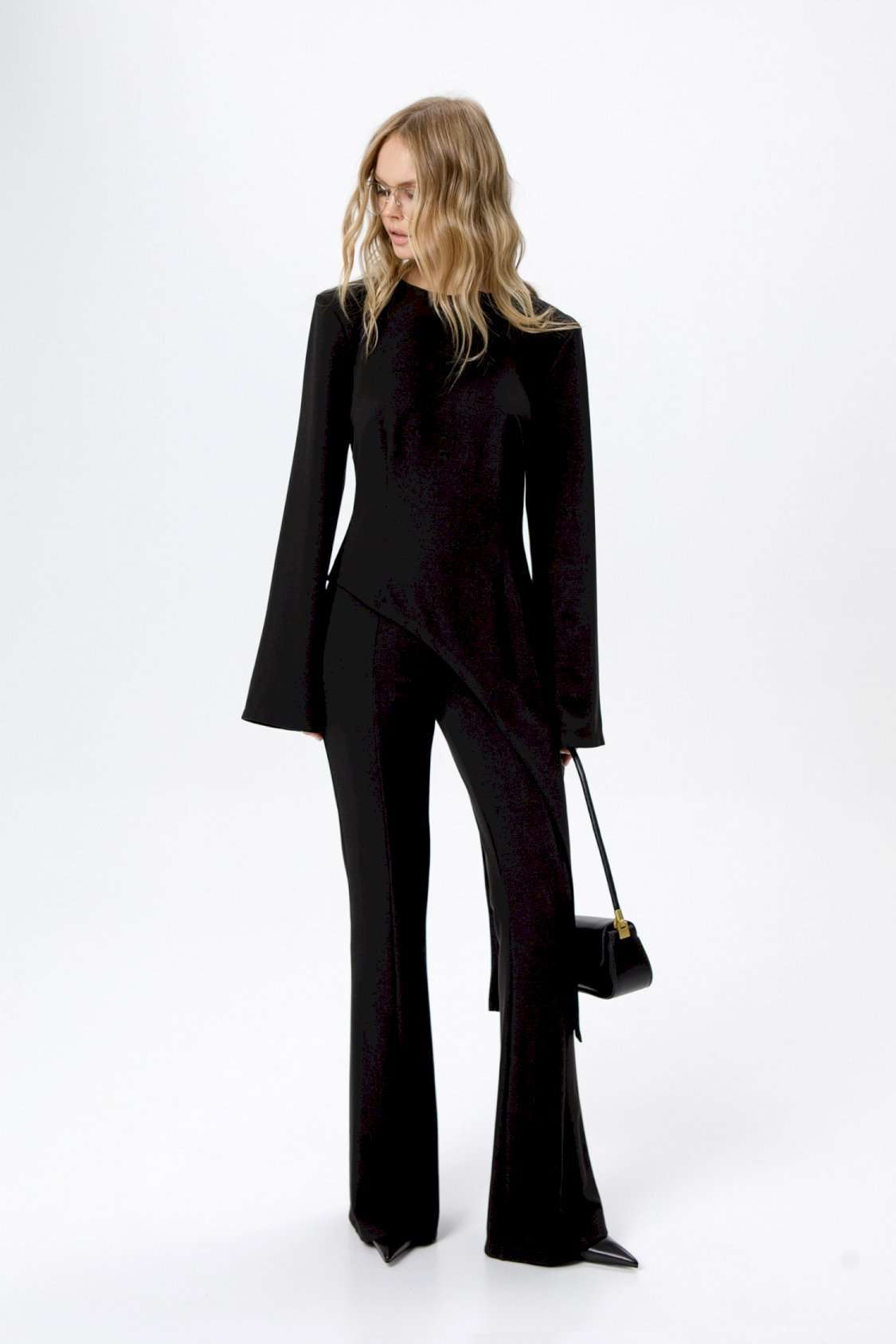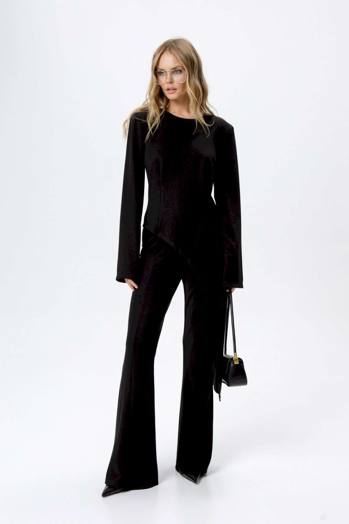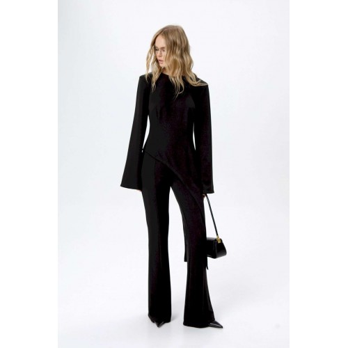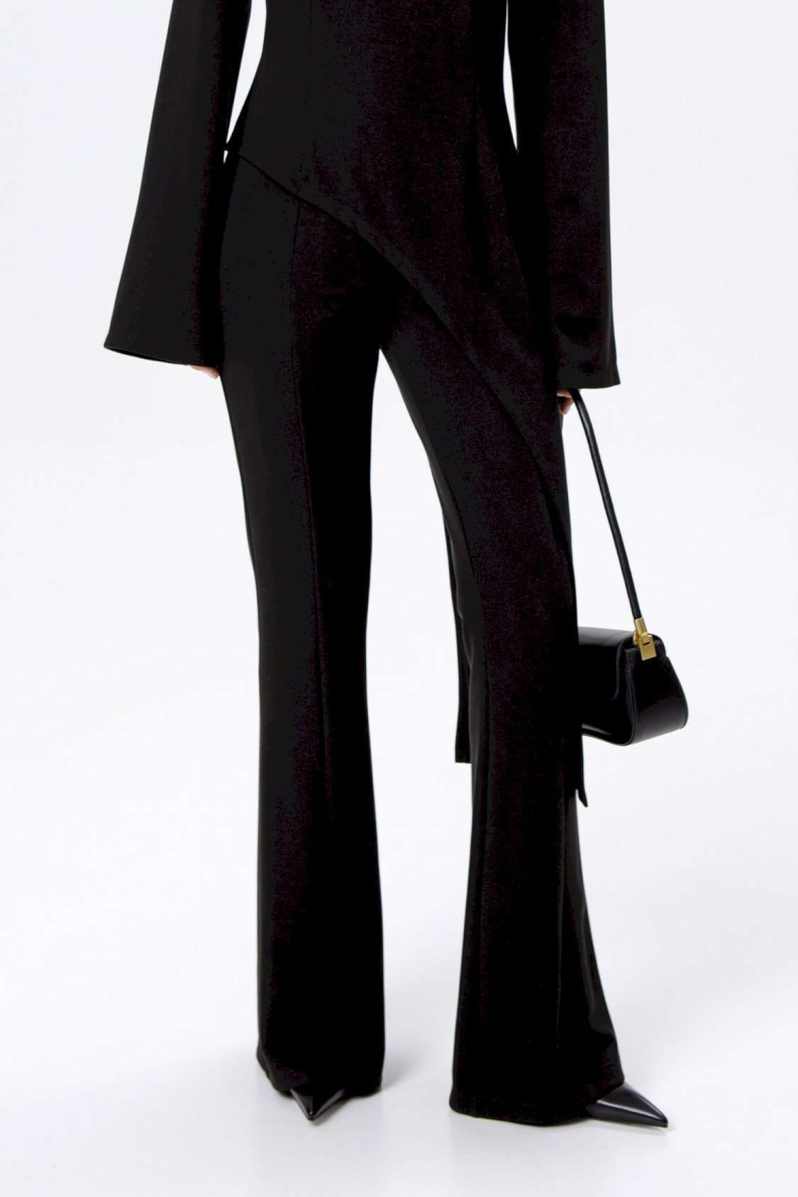 Трикотажные облегающие брюк-клеш.