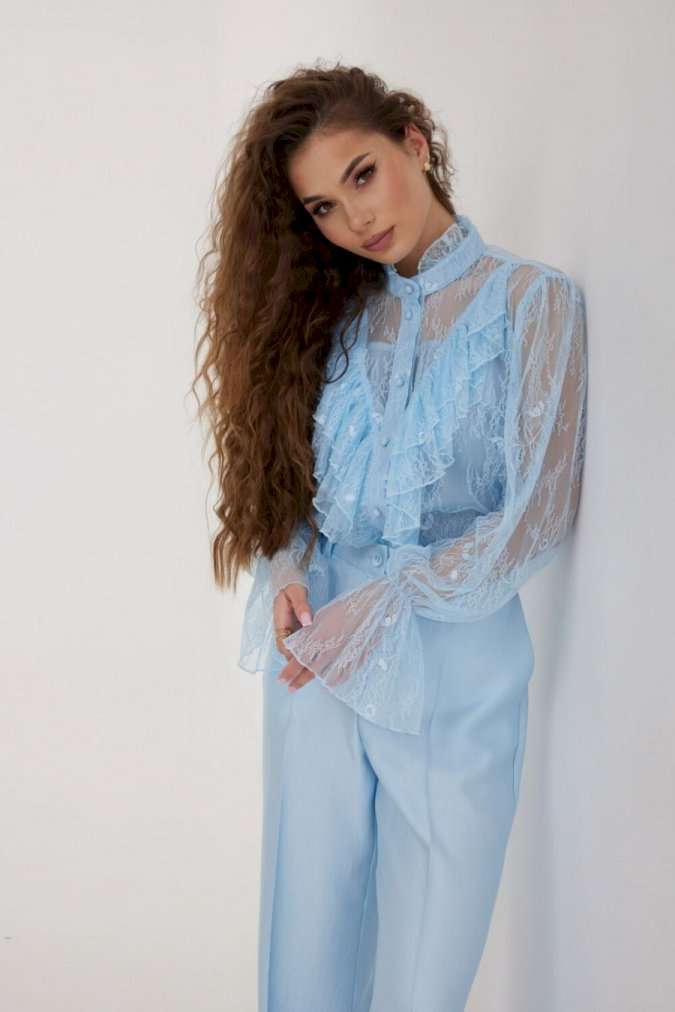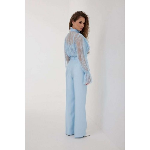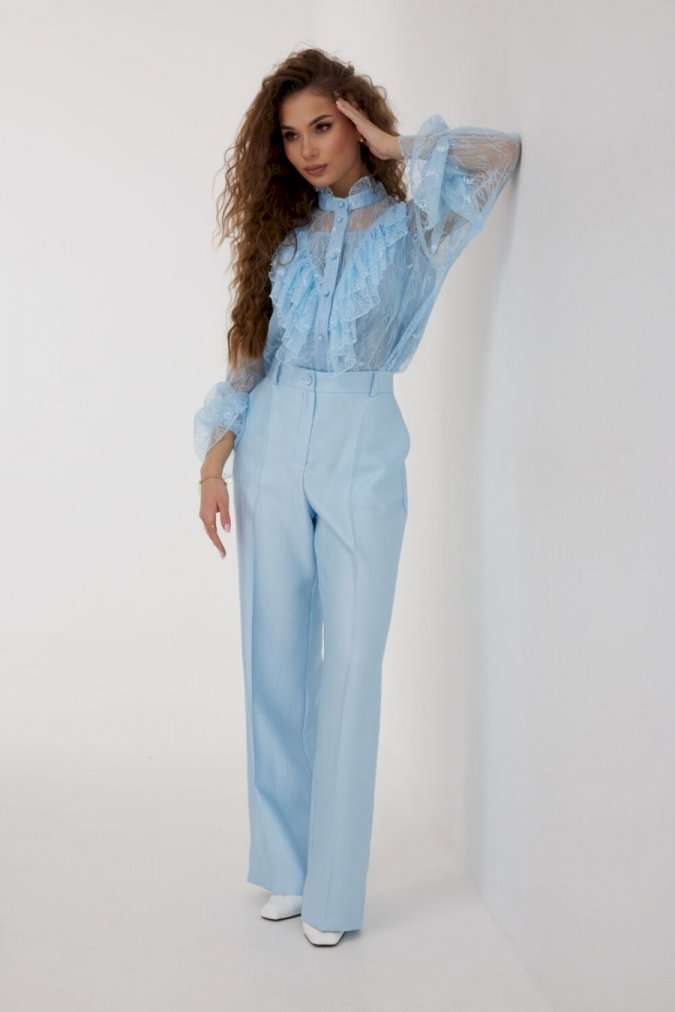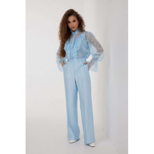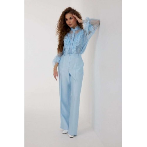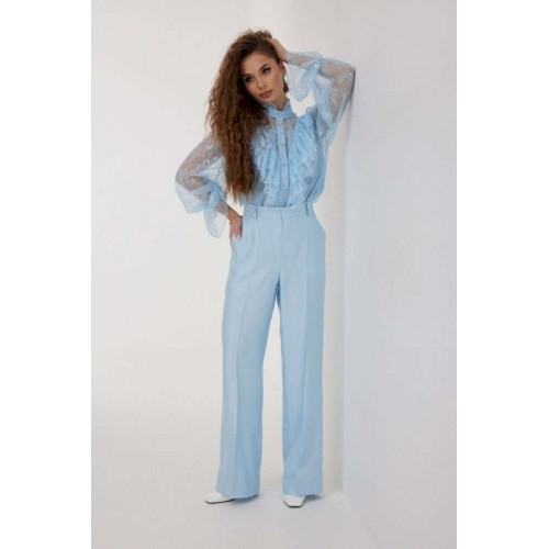 Брюки из костюмно-плательной ткани, прямые со стрелками, полной длины. Средняя посадка, пояс притачной, застежка спереди на молнию и пуговицу. По переду боковые карманы. Длина по боковому шву - 107 см. Длина по шаговому шву - 81 см. Измерения по готовому изделию: 44 р-р: ОТ - 72 см., ОБ - 98 см. 46 р-р: ОТ - 76 см., ОБ - 102 см. 48 р-р: ОТ - 80 см., ОБ - 106 см. 50 р-р: ОТ - 84 см., ОБ - 110 см. 52 р-р: ОТ - 88 см., ОБ - 114 см.