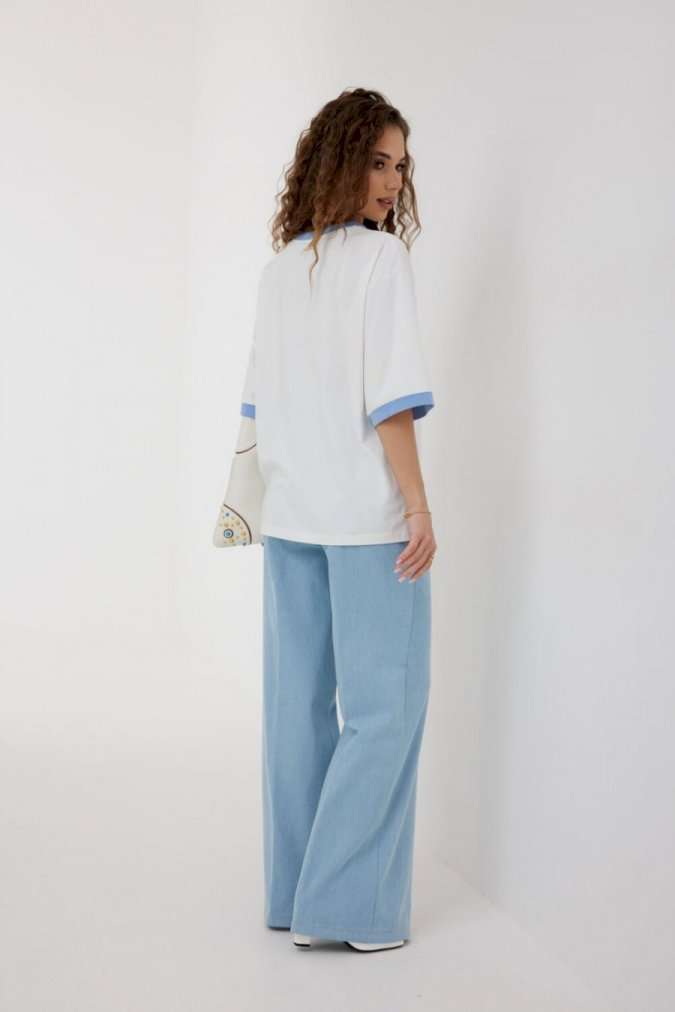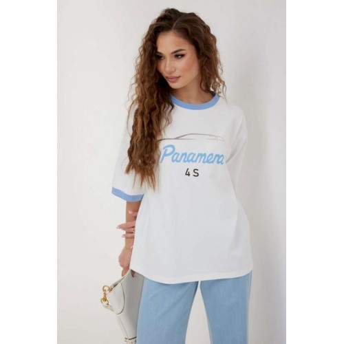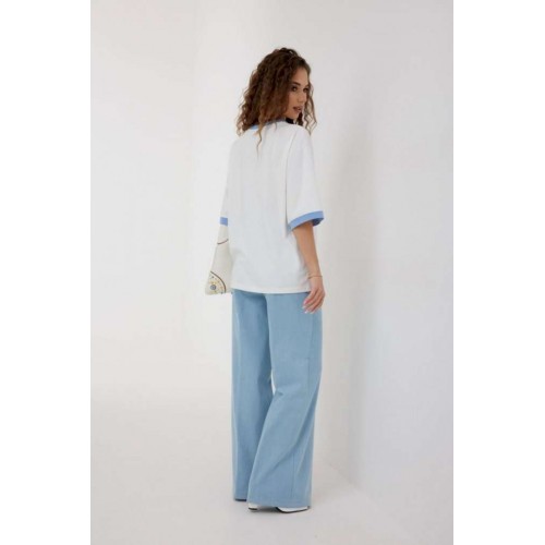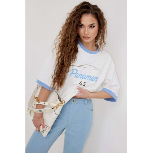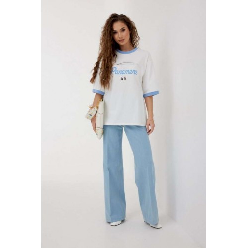 Джемпер прямого силуэта из трикотажного полотна. Горловина круглой формы. Расширенная линия плеча. Рукав прямой, по низу отделка. По переду вышивка. Длина рукава 47 см. (от горловины) Длина джемпера 67 см Измерения по готовому изделию: 44 р-р: ОГ - 107 см., ОТ - 106 см., ОБ - 106 см. 46 р-р: ОГ - 111 см., ОТ - 110 см., ОБ - 110 см. 48 р-р: ОГ - 115 см., ОТ - 114 см., ОБ - 114 см. 50 р-р: ОГ - 119 см., ОТ - 118 см., ОБ - 118 см. 52 р-р: ОГ - 123 см., ОТ - 122 см., ОБ - 122 см.