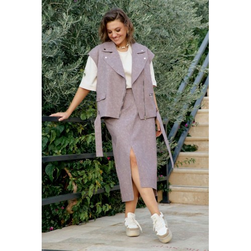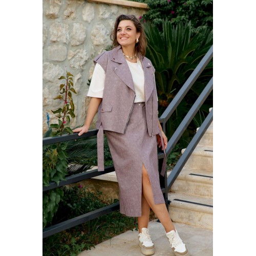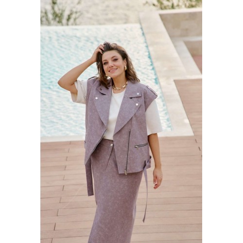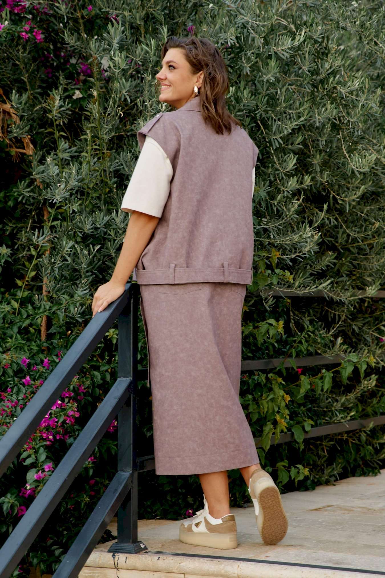 Женская юбка из денима с легкой потертостью придает винтажный шарм и характер. Она является своеобразной базой, которая легко комбинируется с различным верхом, позволяя быть разной, делая любой образ интересным. Юбка прямого силуэта, длины «миди» с ассиметричным подрезом по переду переходящим в разрез, с застёжкой на тесьму-молнию в гульфике и пуговицу в поясе юбки. По переду юбки прорезные карманы. По заднему полотнищу юбки накладные карманы. Пояс в юбке притачной со вставкой эластичной тесьмы-резинки в бочках, что обеспечивает комфортное прилегание по фигуре. Длина юбки 85см.