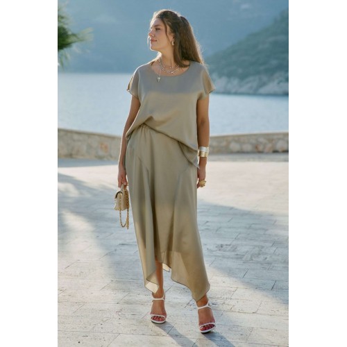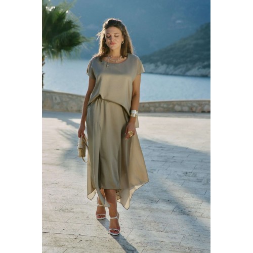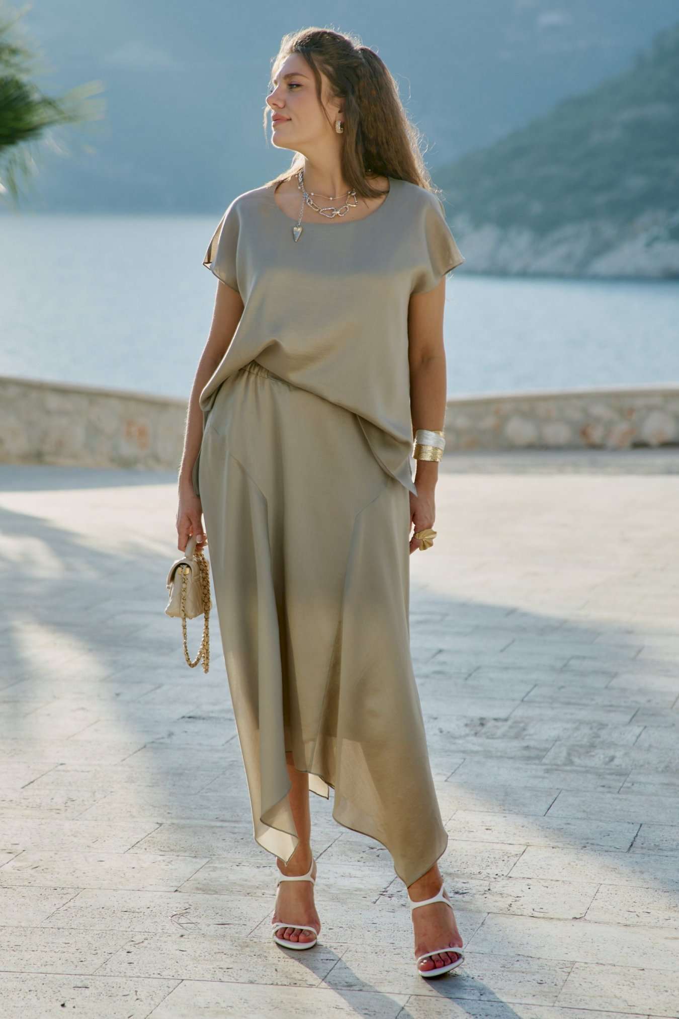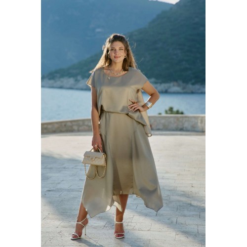 Юбка женская летняя в романтическом стиле небольшого объема. По геометрическому подобию напоминает трапецию. Пластика образа легкая, летящая.Юбка с фигурными рельефами по переду и спинке. Конструктивно-декоративным решением являются клинья с ниспадающей каскадом фалд, удлиненных по линии низа относительно переда и спинки. Застежка на потайную тесьму-молнию в среднем шве и на пуговицу, резинка в боковых частях для комфорта движения. Юбка на подкладке. Она станет любимой в вашем гардеробе благодаря свободному крою, который идеально сидит на талии. Юбка в тренде сезона современного фасона подойдет для торжественных мероприятий, прогулок, встреч, свиданий из натуральных качественных материалов, подобранных с заботой о вас и вашем комфорте. Длина юбки 75 см.