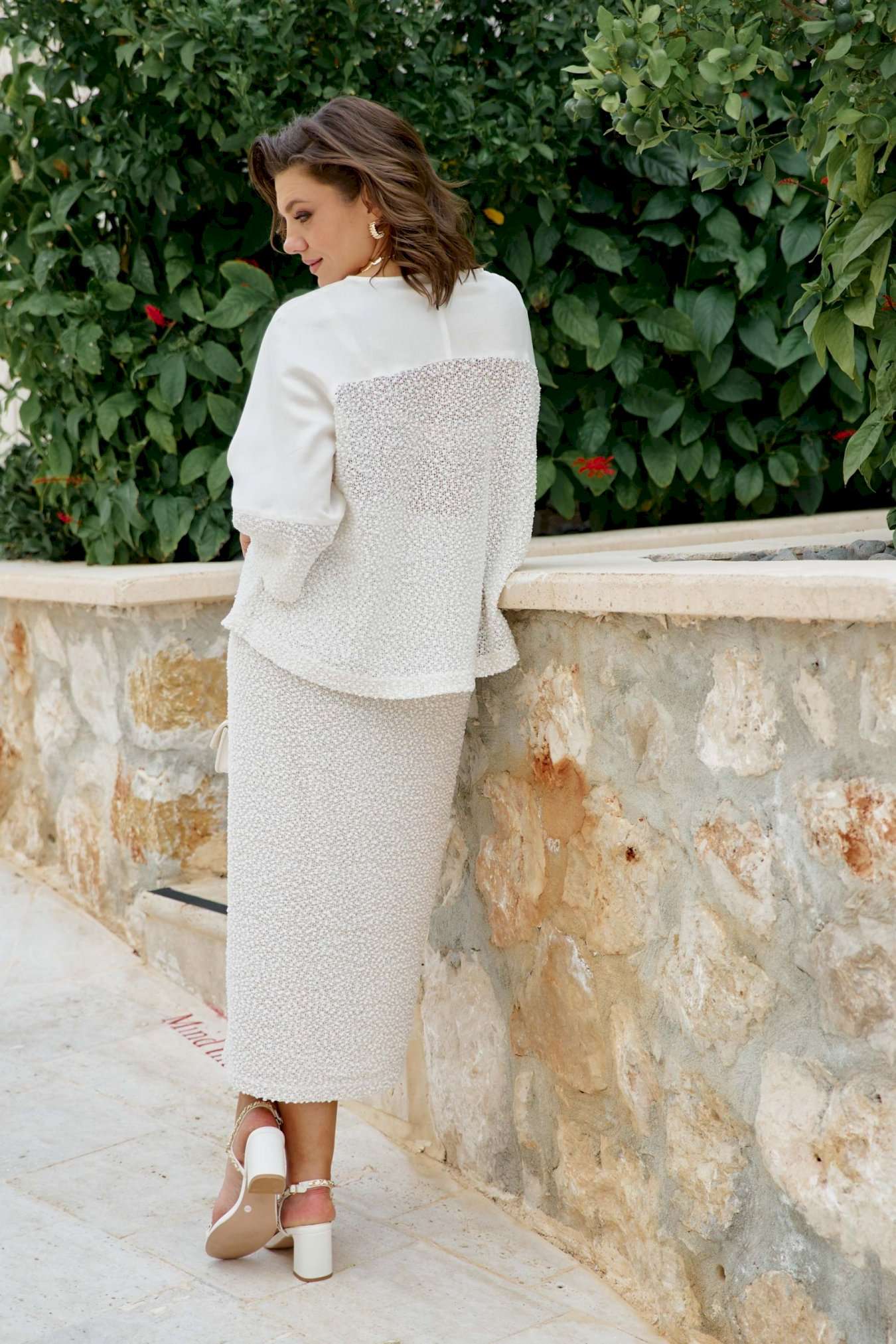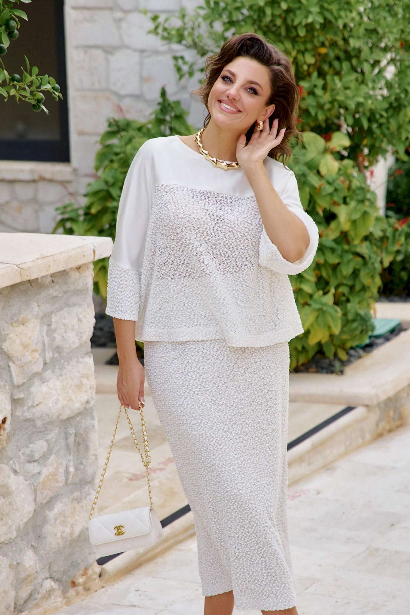 Юбка прилегающего силуэта прямого кроя, немного заужена к низу из трикотажа-букле с притачным поясом-резинкой, длина миди за колено. Юбка хорошо тянется она на подкладке телесного цвета, что выгодно подчеркивает фактуру верхнего материала. Это удобная модель, в тренде сезона современного фасона из качественных материалов делает выгодный акцент на фигуру и идеально сидит на талии. Юбка приятная к телу, комфортная в носке станет любимой для приятных прогулок и встреч. В ней можно пойти в театр, концерт, свидание, торжественное мероприятие, фотосессию, вечеринку, ресторан на юбилей, прием, свадьбу. Длина юбки 96 см.