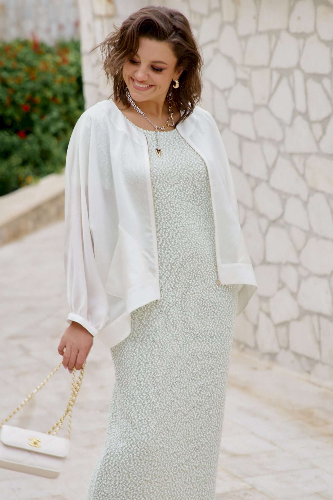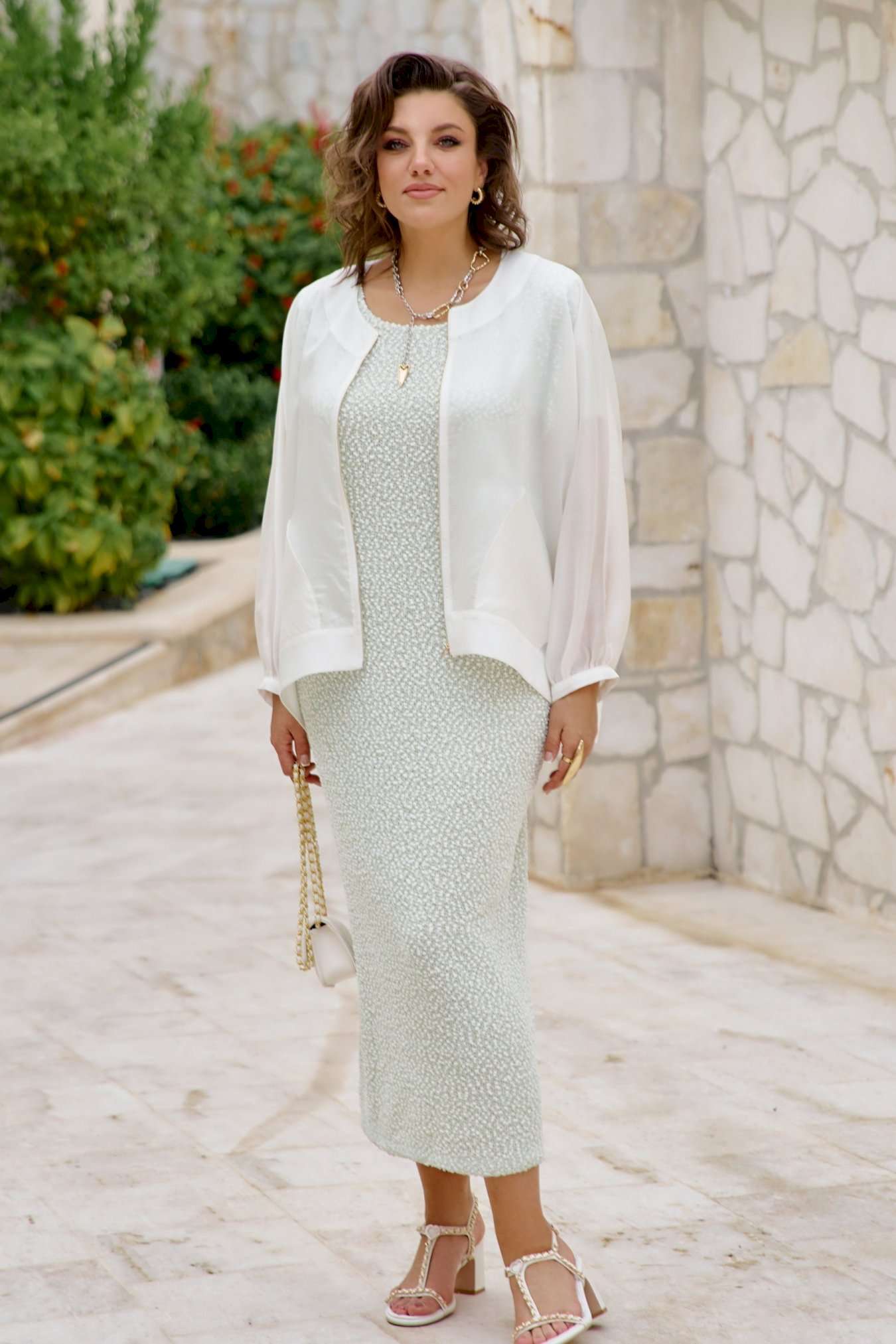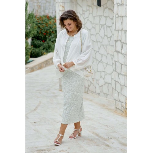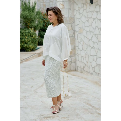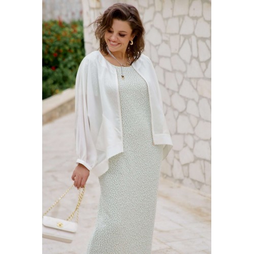 Блузон легкий полупрозрачный в романтическом стиле. В верхней части большого объема, плечевой пояс с естественным наклоном и плавным переходом в линию рукава. Блузон выполнен из полупрозрачной вуали в один слой. Рукава цельнокроенные, немного укороченные с сборкой по низу и притачной узкой манжетой. Застежка вертикальная по переду на металлическую тесьму-молнию. По переду выполнены накладные карманы из вуали. По спинке блузон немного удлинён. Блузон в тренде сезона и будет актуален в следующих. Это стильная женская одежда, которая идеально сядет на любую фигуру. Его легко сочетать с платьем, брюками, комбинезоном. Он станет любым предметом вашего гардероба в теплое время года, образ в нем женственный и элегантный. Фасон современный, из качественных материалов. Блузон уместно надеть на торжество, прогулку с подругами, ресторан, кафе. Вы будете чувствовать себя в нем роскошно и на каблуках, и в спортивном стиле с кроссовками. Это универсальная нарядная одежда для женщины, которая себя любит. Длина блузона 68,5 см, длина рукава 68 см (р 52-56), 69 см (р 58-62).