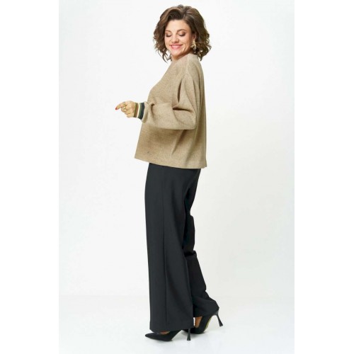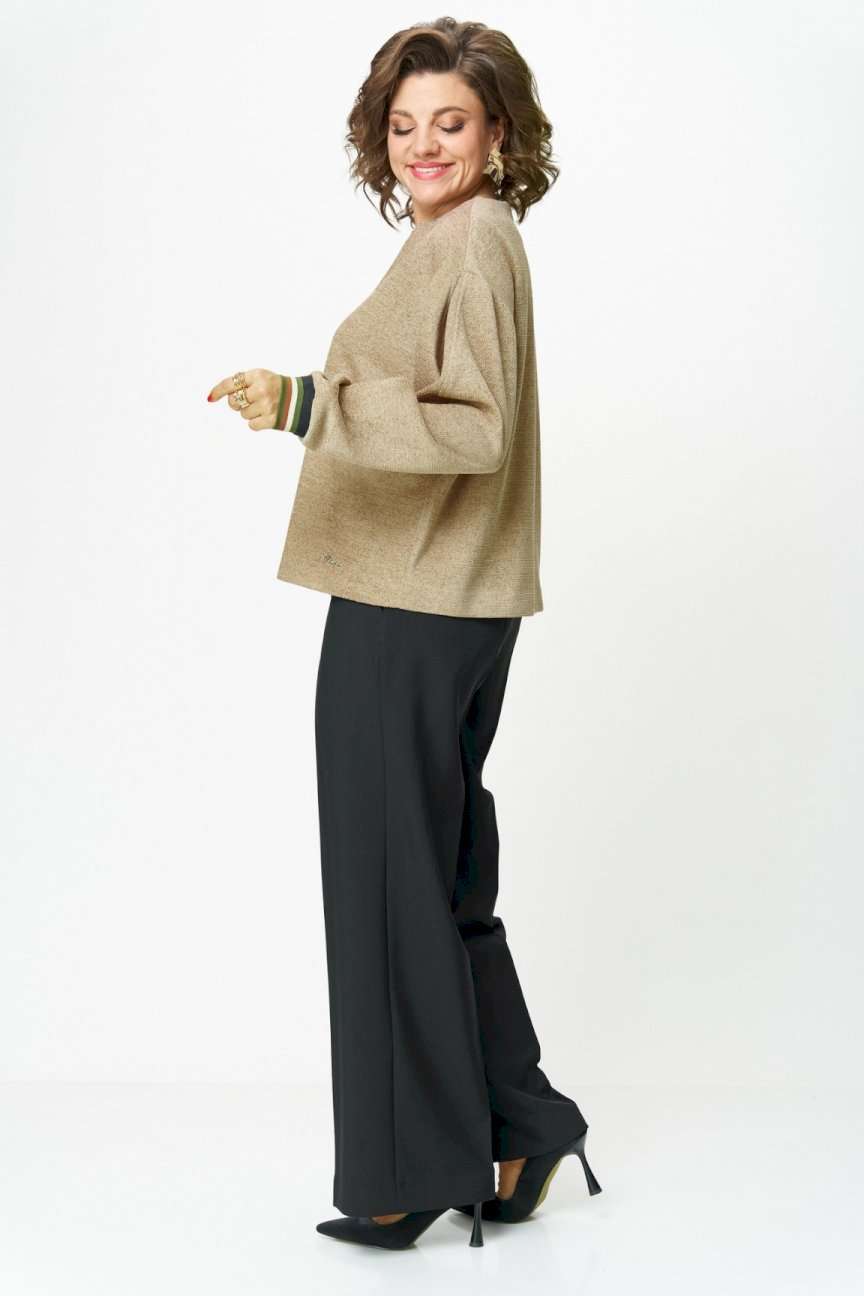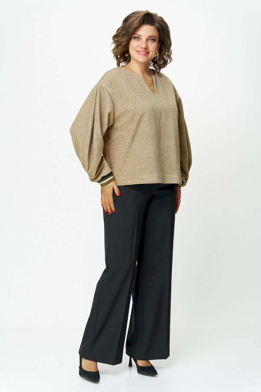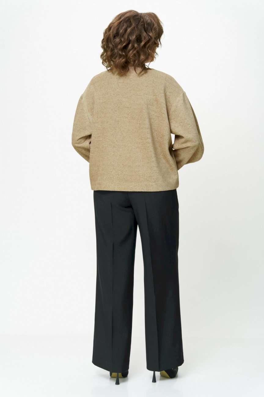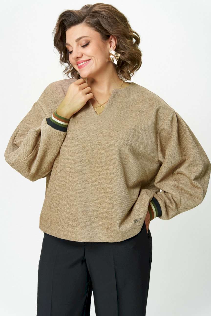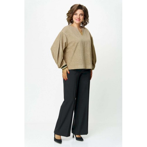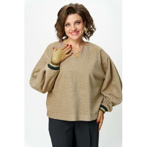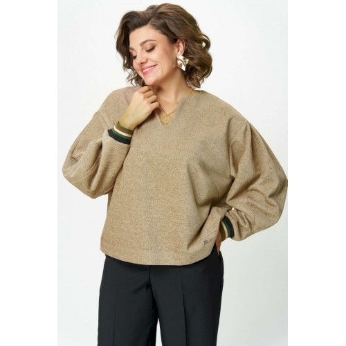 Блуза, свободного силуэта, из трикотажной ткани, вырез горловины V-образный,рукав немного спущенный, фигурный, спинка цельная. Длина по спинке 59 см.