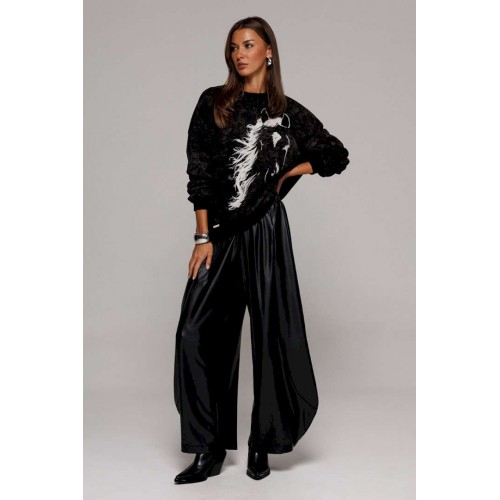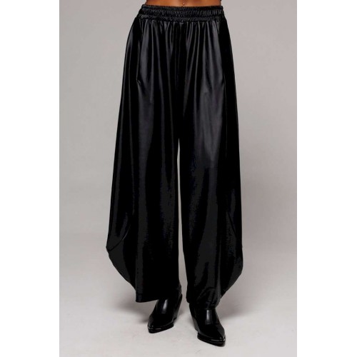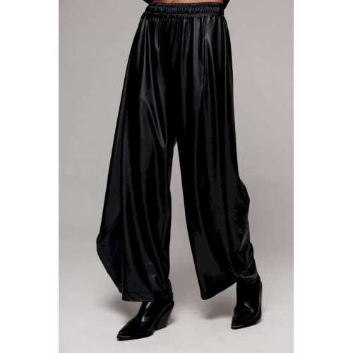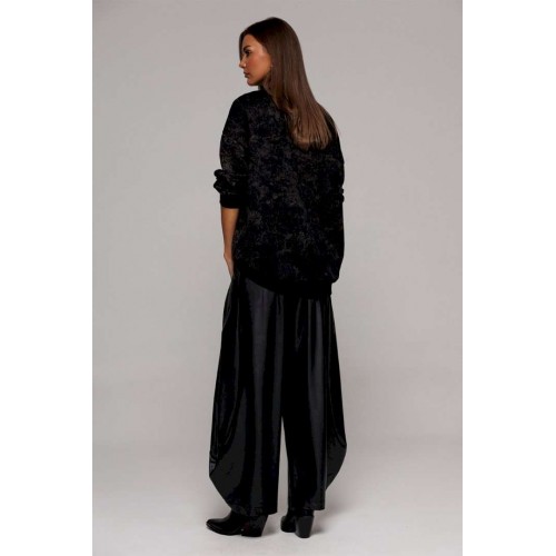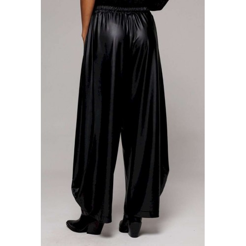 Элегантные женские брюки-шаровары из качественной эко-кожи черного цвета, представляют собой идеальный выбор для создания современного и стильного образа. Брюки имеют свободный силуэт, который заужен к низу, обеспечивая актуальный геометрический вид и добавляя изысканности в наряд. Модель оснащена удобным притачным поясом на отсрочке с встроенной резинкой для идеальной посадки. Фигурные рельефы как на передней, так и на задней части брюк добавляют объема и изящества силуэту. В деталях дизайна выделяется полочка с оригинальным карманом в рельефе, что делает эту модель не только практичной, но и визуально привлекательной. Эти брюки будут отлично смотреться как в деловых, так и в более неформальных образах.