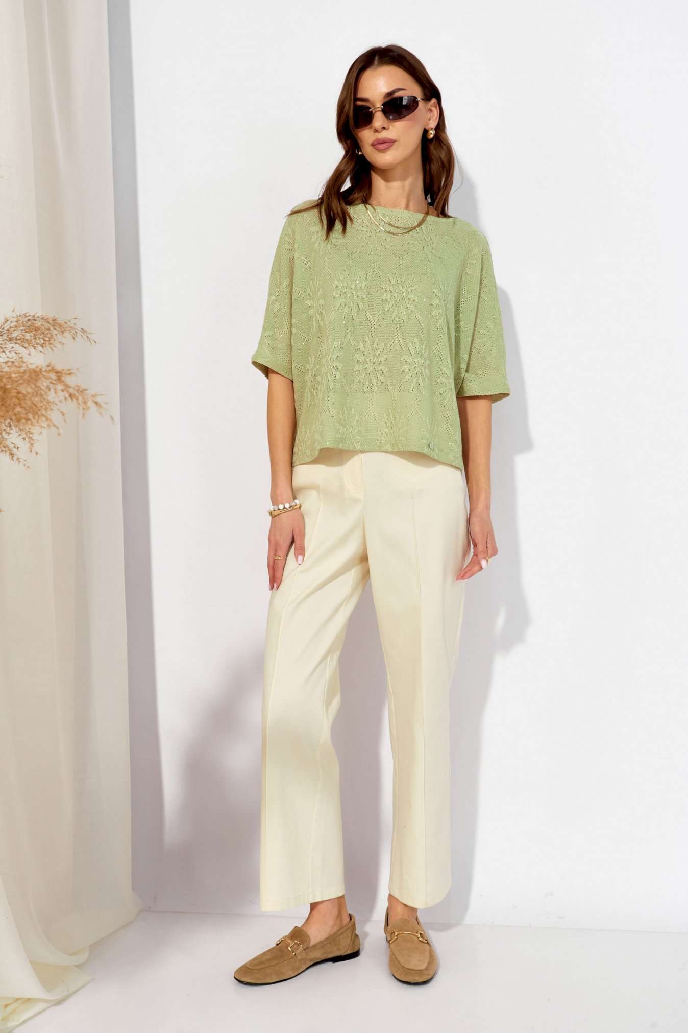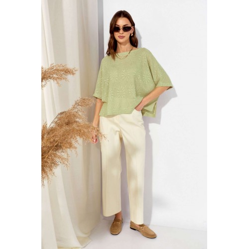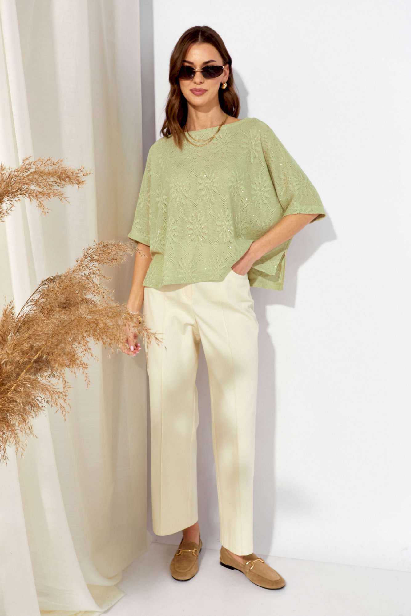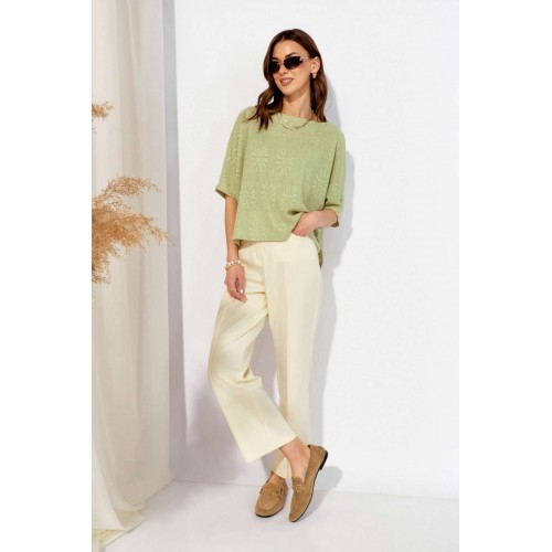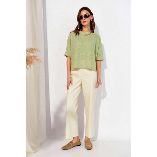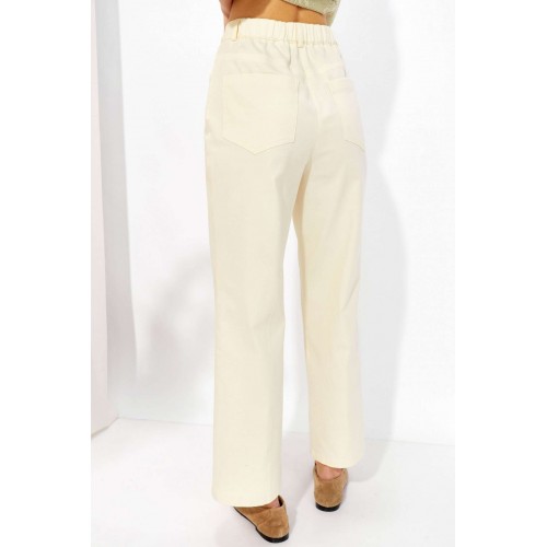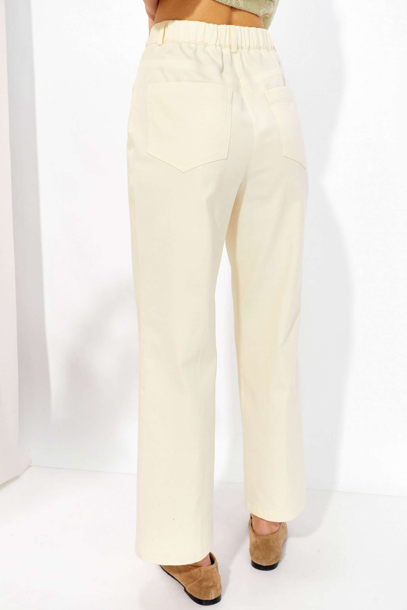 Брюки полуприлегающего силуэта из джинсовой ткани. По верху брюк притачной пояс со шлевками для ремня. На передних половинках обработаны карманы, декоративные защипы и застежка молния в среднем шве, на задних –кокетка и карманы. По поясу задних половинок брюк эластичная тесьма (резинка). Обращаем ваше внимание, что фурнитура может отличаться от фото. Длина брюк (44-48р – 97 +4см пояс)(50-54р - 98 +4см пояс)