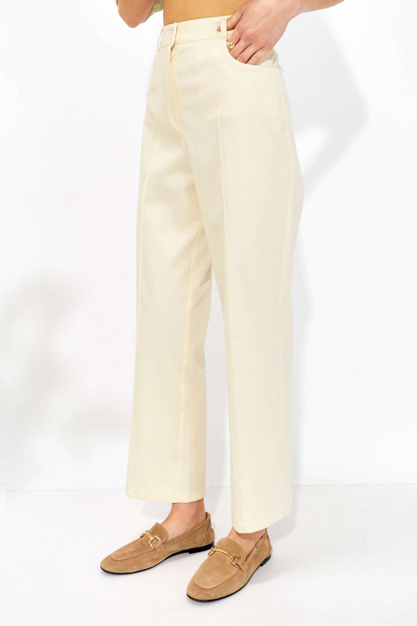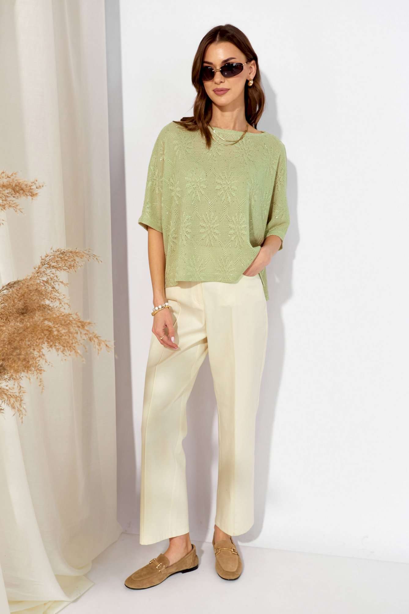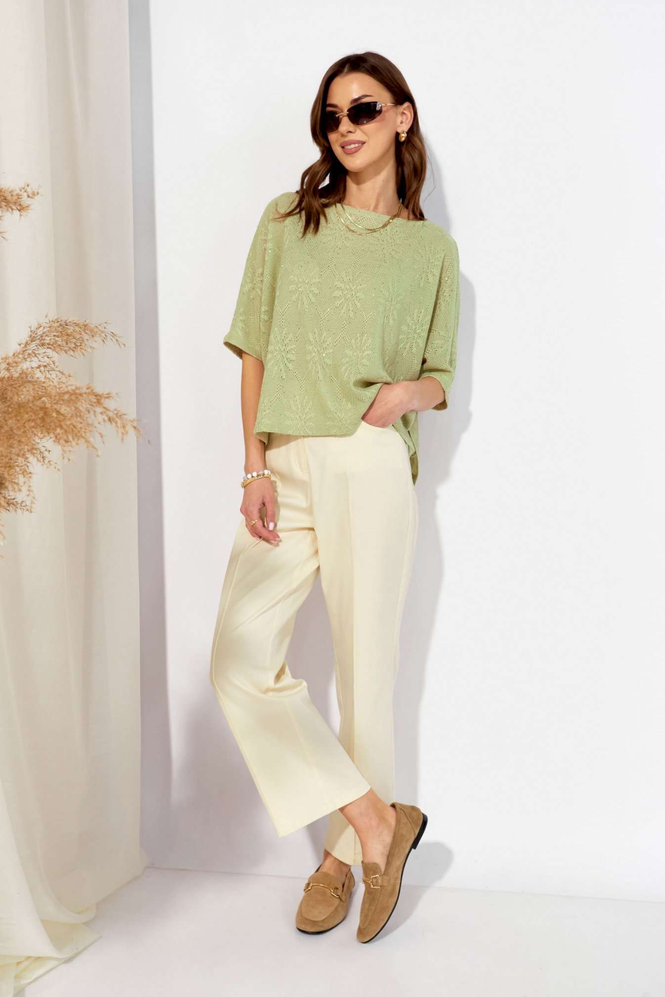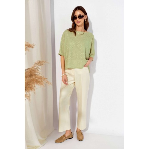 Брюки полуприлегающего силуэта из джинсовой ткани. По верху брюк притачной пояс со шлевками для ремня. На передних половинках обработаны карманы, декоративные защипы и застежка молния в среднем шве, на задних –кокетка и карманы. По поясу задних половинок брюк эластичная тесьма (резинка). Обращаем ваше внимание, что фурнитура может отличаться от фото. Длина брюк (44-48р – 97 +4см пояс)(50-54р - 98 +4см пояс)