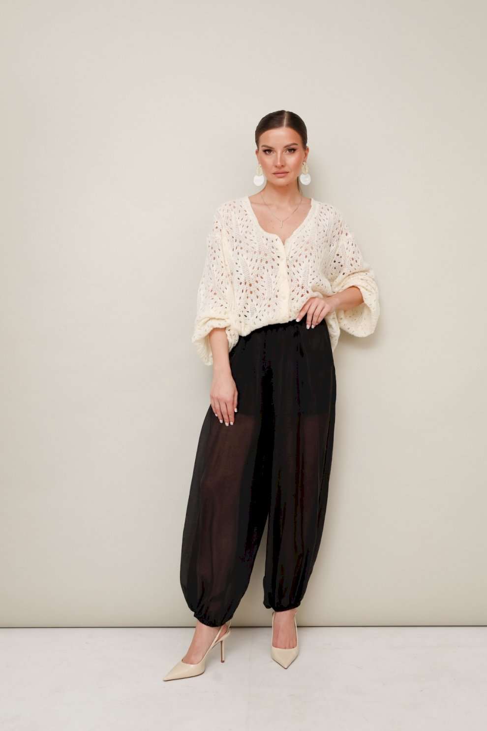 Брюки 11-480 Pur Pur — идеальный выбор для создания актуальных образов. Коллекция бренда Pur Pur выполнена из натуральной вискозной ткани, что обеспечивает мягкость и комфорт. Свободный силуэт и манжеты на резинке гарантируют удобство в носке. Наклонные карманы в боковых швах добавляют функциональности. Стильный и повседневный дизайн прекрасно подходит для весенне-летнего сезона. Черный цвет делает эти алладины универсальным элементом гардероба. Эти брюки — ваш верный спутник для домашнего отдыха или прогулок в городе.