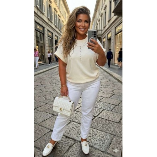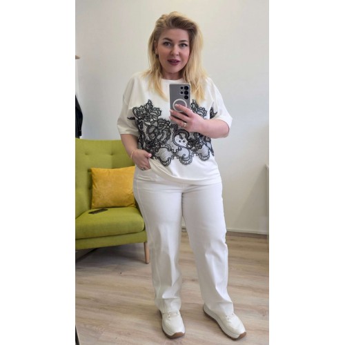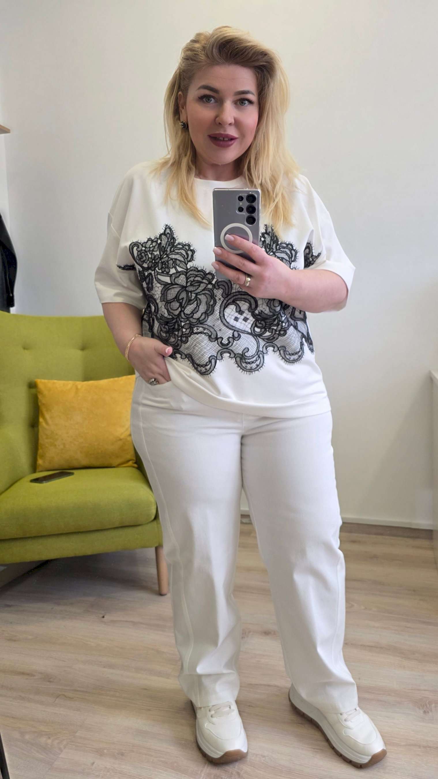 Брюки женские, прямого силуэта идеально сидят на фигуре. Это вещь для тех, кто ценит уютную элегантность и хочет выглядеть продуманно, но непринуждённо. Служат основой для минималистичных ансамблей и для более смелых цветовых сочетаний, универсальны — выглядят органично и летом, и в межсезонье. Брюки прямого силуэта, немного заужаются к низу, застежкой на тесьму молнию в гульфике и пуговицу в поясе. В поясе брюк вставка эластичной тесьмы резинки резинки «в бочках», а так же декоративные рельефы по переду. По переду брюк наклонные карманы. В задних половинках брюк вставка декоративной кокетки и накладные карманы. Длина брюк 97 см.