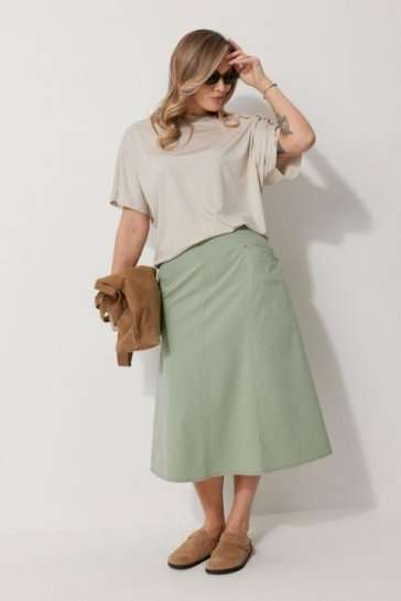 Юбка женская А – силуэта длиной до середины икры. Перед юбки состоит из 4 клиньев. Вверху передней части юбки располагается карман с отрезным бочком с хольнитенами по концам крмана. Спинка юбки состоит из 4 клиньев. Швы всех клиньев отстрочены контрастной отделочной строчкой По среднему шву юбки находится застежка – молния. Верхний срез юбки обработан обтачкой. Длина по боковому шву 80 см.