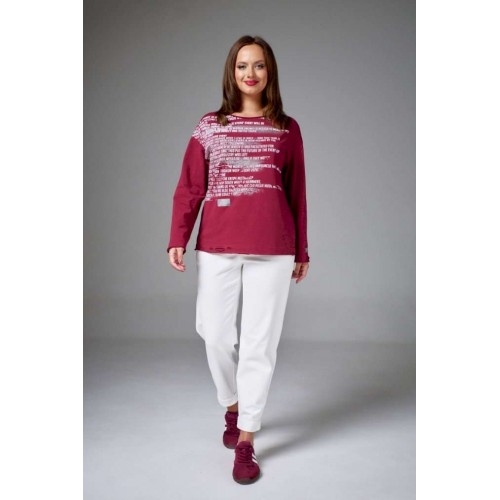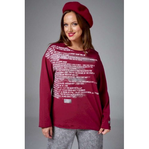 Лонгслив из хлопковой кулирки, свободного силуэта, с длинным рукавом и круглой горловиной. На переде авторский принт. По низу изделия и рукава декоративные прорези.