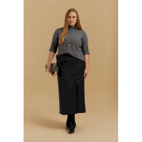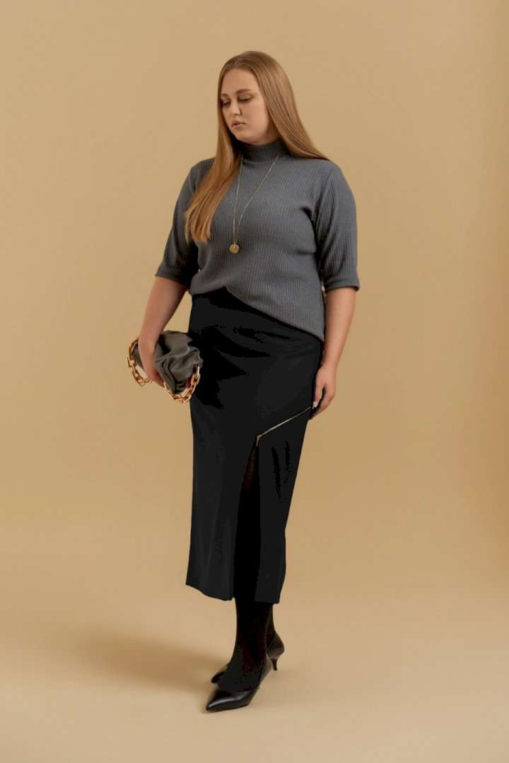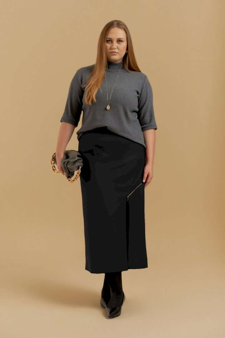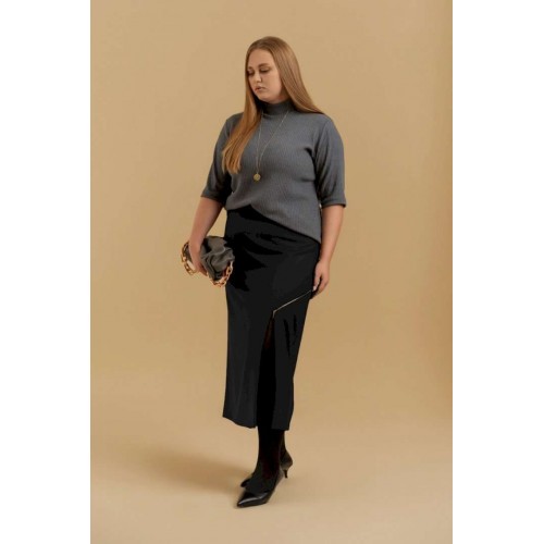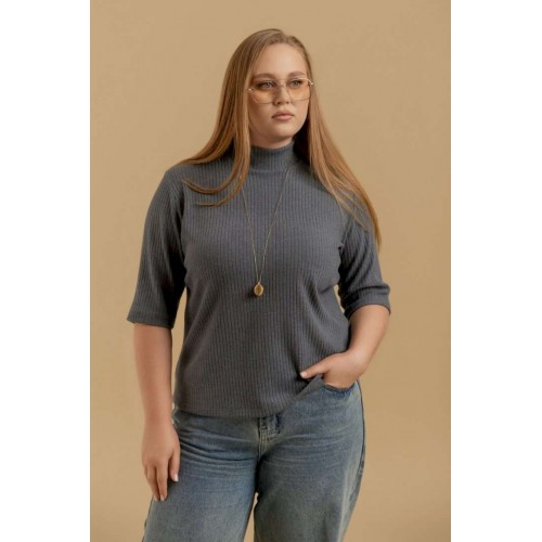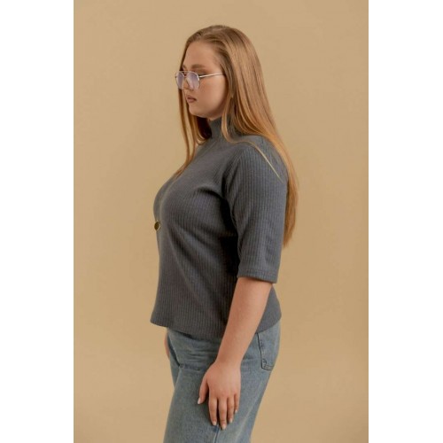 Джемпер женский полуприлегающего силуэта из трикотажного полотна. Вырез горловины оформлен воротником - стойкой. Рукава - втачные с естественной линией плеча.