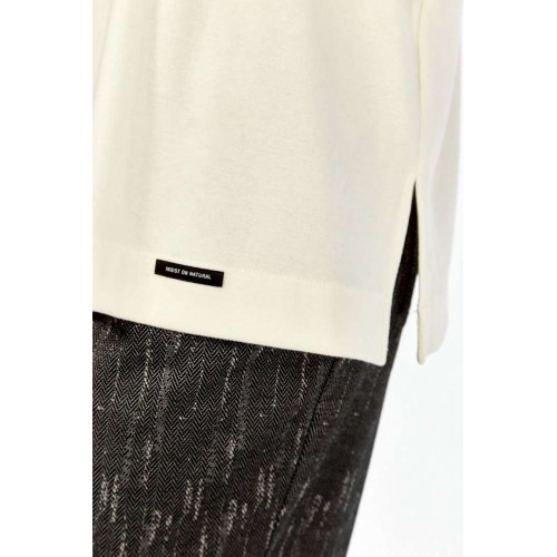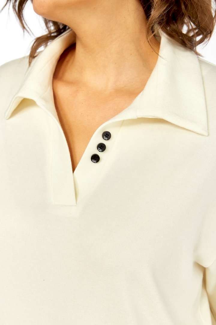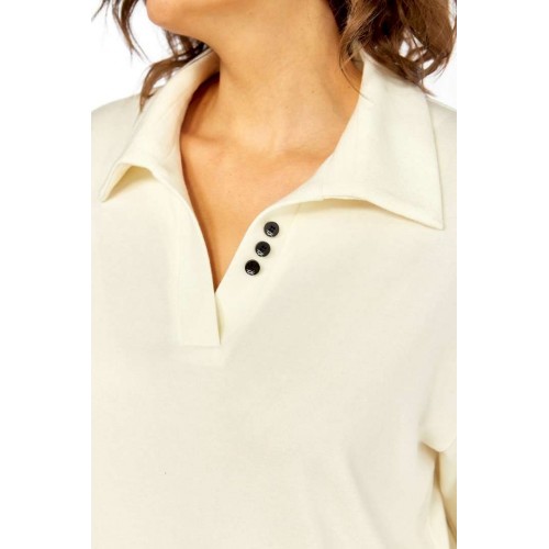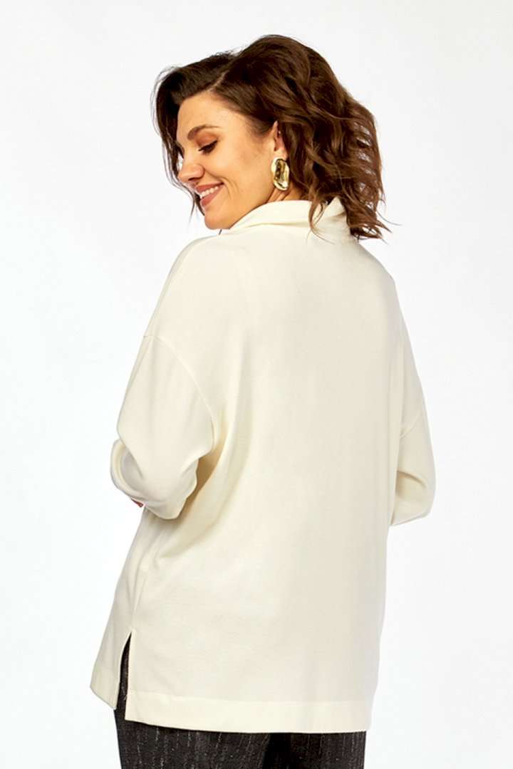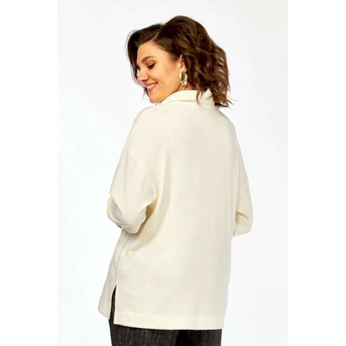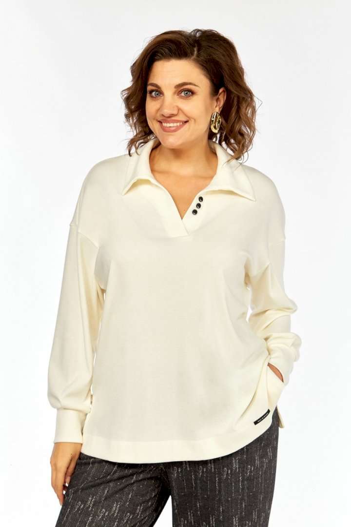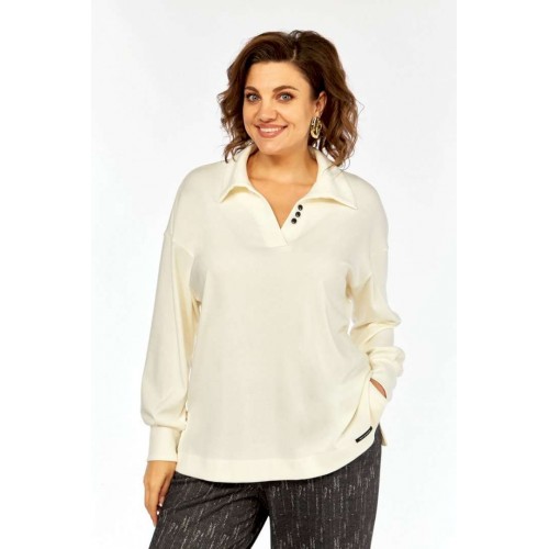 Джемпер свободного силуэта изготовлен из трикотажного полотна, с отложным воротником и прорезными планками. Рукава спущенные, по низу обработаны манжеты. В боковых швах имеются разрезы. Джемпер дополнен пуговицами и нашивкой. Обращаем Ваше внимание, что цвет на экране может отличаться от реального.