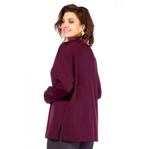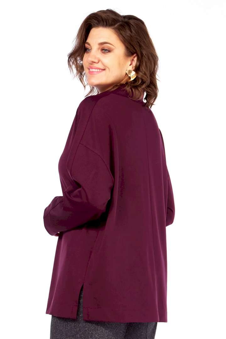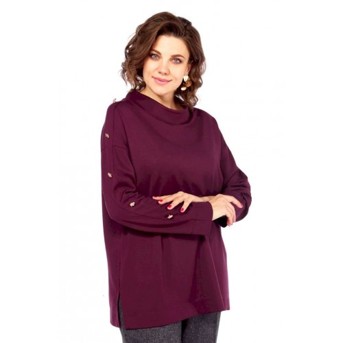 Джемпер женский свободного кроя, выполнен из трикотажного полотна. Перед цельнокроеный, спинка со средним швом. Рукава спущенные, от горловины до низа рукава вставка, декорированная с одной стороны пуговицами. Горловина с воротником стойка. В боковых швах разрезы. Обращаем Ваше внимание, что цвет на экране может отличаться от реального. Длина джемпера по спинке — 68 см, длина плеча + рукав — 68 см. р.52 — ПОГ 60 см ПОБ 61 см, р.54 — ПОГ 62 см ПОБ 63 см, р.56 — ПОГ 64 см ПОБ 65 см, р.58 — ПОГ 66 см ПОБ 67 см.