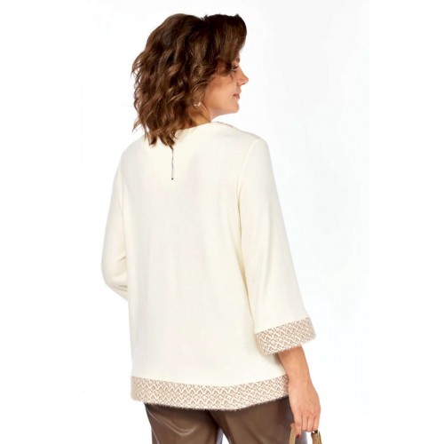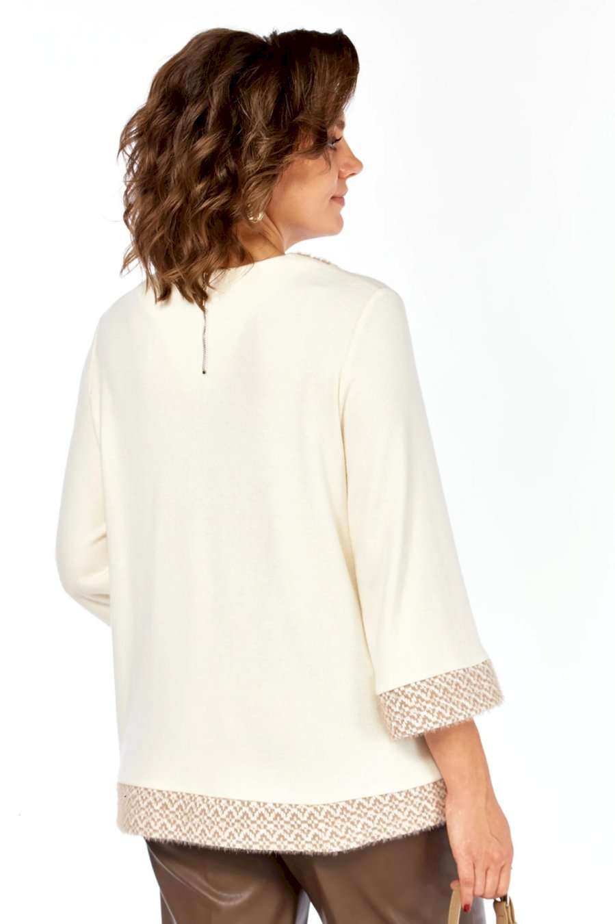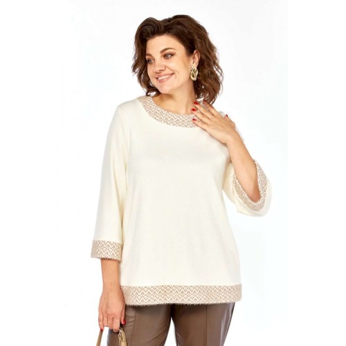 Джемпер женский прямого силуэта, выполнен из трикотажного полотна. Горловина округлой формы, по переду обработана вставка из отделочной ткани. Спинка с застежкой на молнию. Рукава втачные, по низу с притачной манжетой из отделочной ткани. Изделие обработано планкой. Обращаем Ваше внимание, что цвет на экране может отличаться от реального. Длина джемпера по спинке — 65 см, длина рукава — 48 см, длина плеча — 11,5 см. р.52 — ПОГ 55 см ПОБ 60 см, р.54 — ПОГ 57 см ПОБ 62 см, р.56 — ПОГ 59 см ПОБ 64 см.