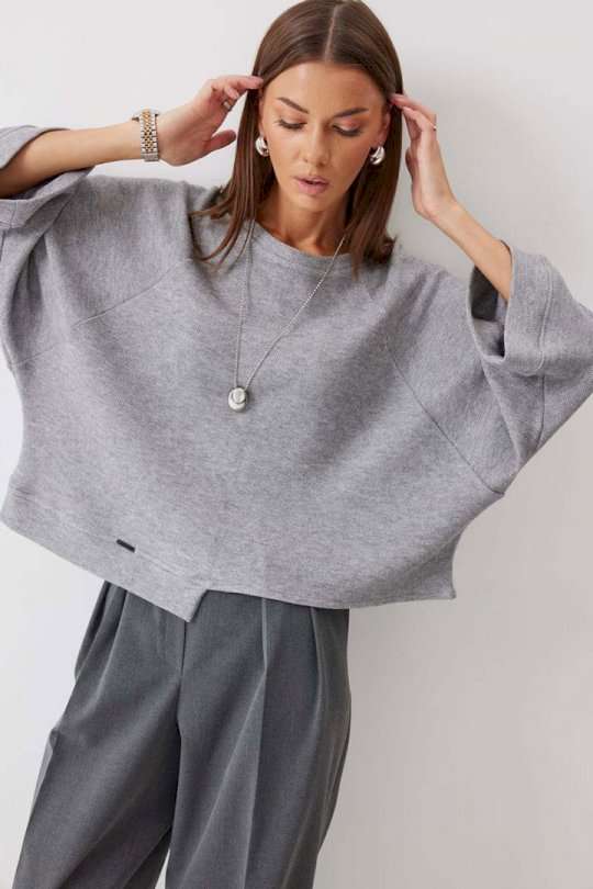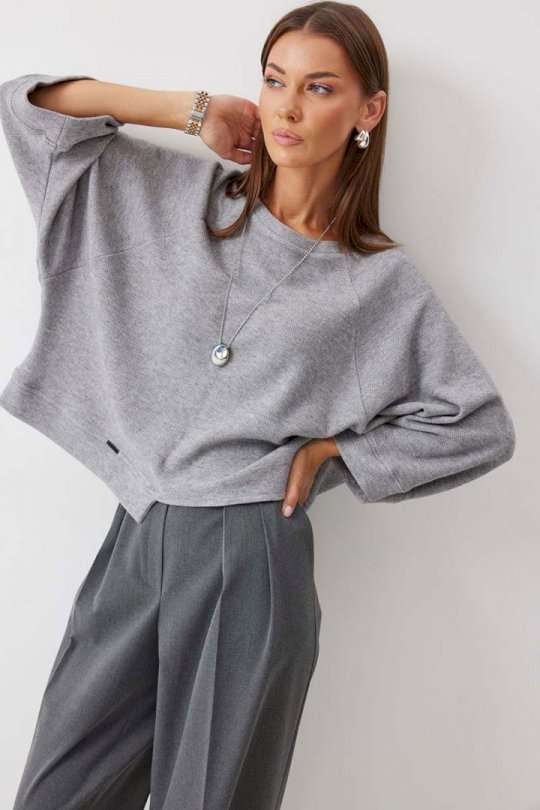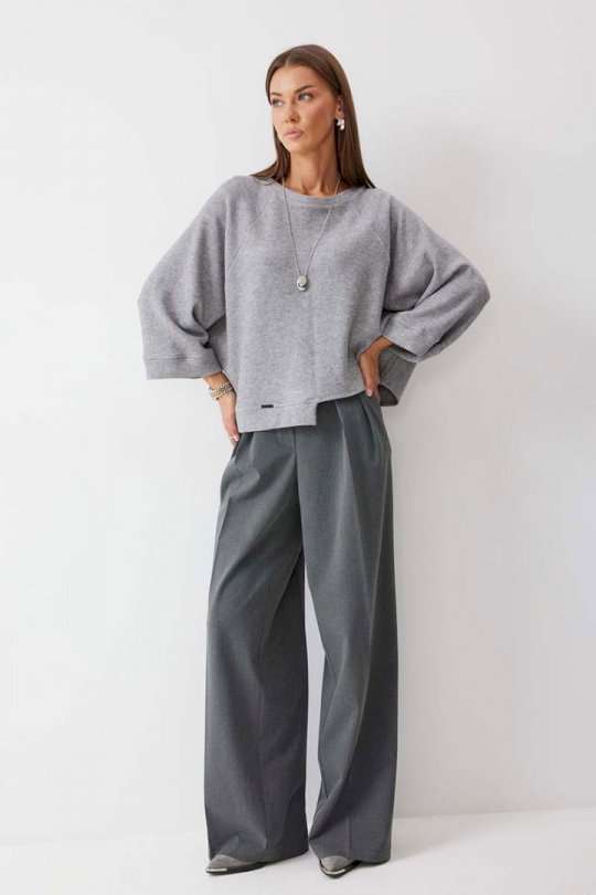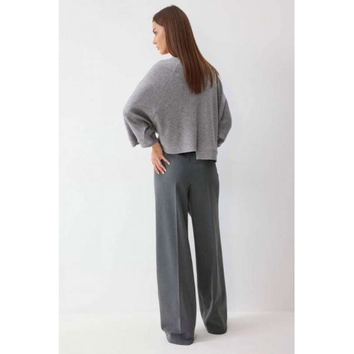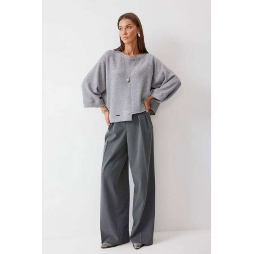 Ассиметричный джемпер прямого силуэта из трикотажного полотна. Горловина-лодочка. Рукав цельнокроеный с декоративным подрезом. По низу джемпера декоративный пояс с пришивным декором. Обращаем ваше внимание, что фурнитура может отличаться от фото. Подходит на рост 164-170 см. Длина изделия (44-50р – 54см) 58см. Длина рукава от горловины 57см.