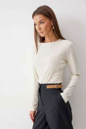 Джемпер прилегающего силуэта из трикотажного полотна. Горловина-лодочка. Рукав втачной удлиненный. Подходит на рост 164-170 см. Длина изделия (44-48р – 58см),(50-54р - 60,5см). Длина рукава 63см.