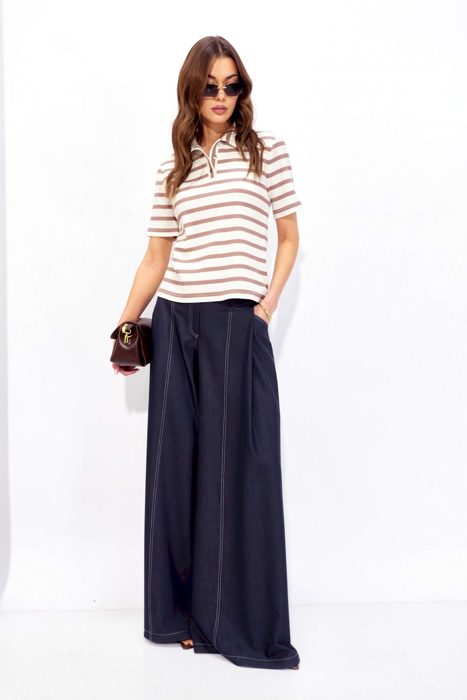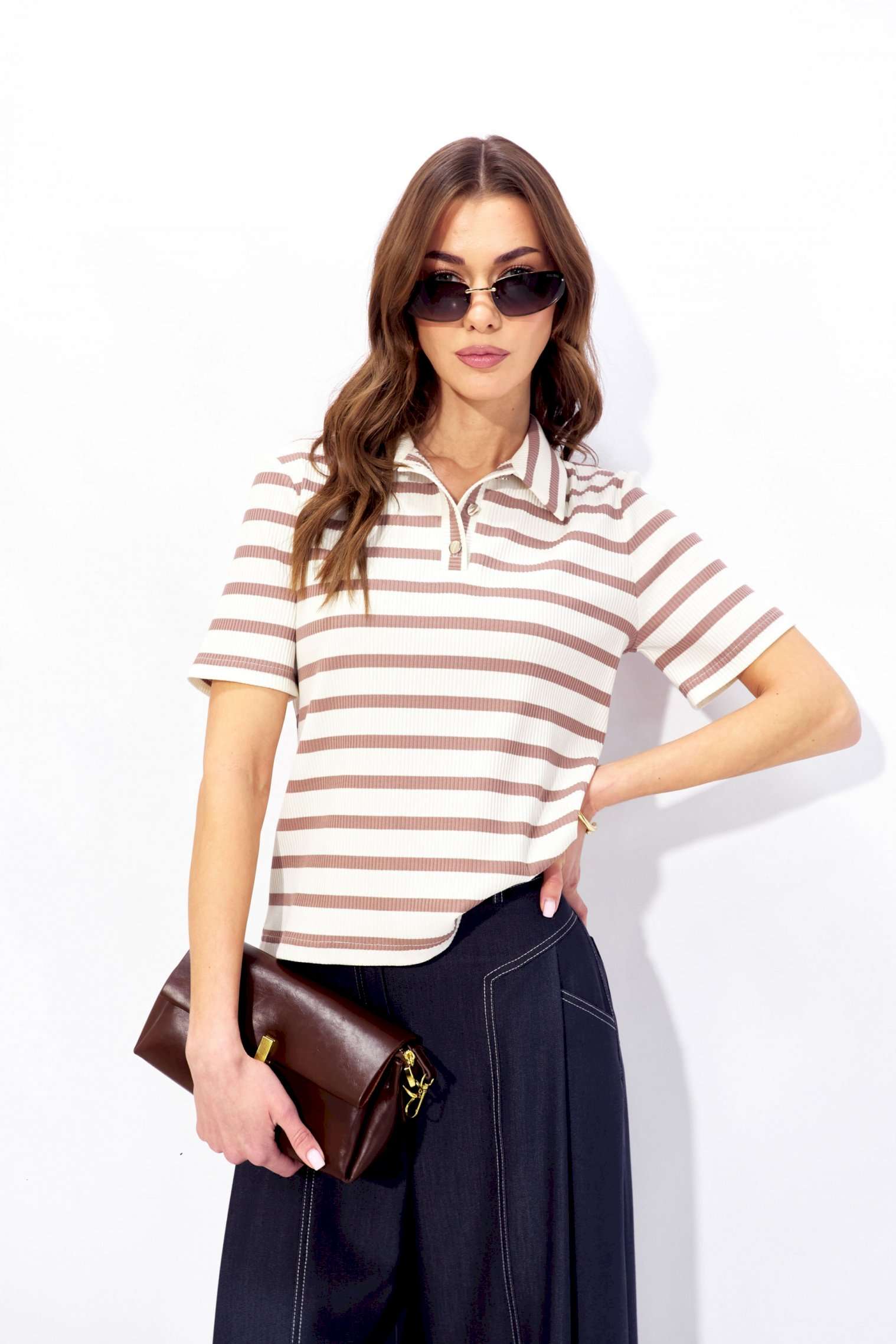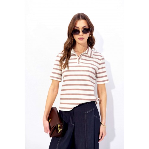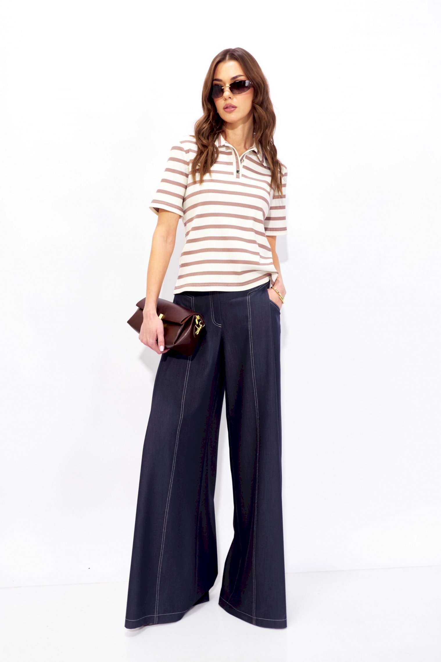 Джемпер полуприлегающего силуэта из трикотажного полотна в полоску. Воротник стояче-отложной, по центру застежка на петли и пуговицы. Рукав втачной, одношовный, выше линии локтя. Обращаем ваше внимание, что фурнитура может отличаться от фото. Длина джемпера (44-48р – 54см)(50-54р - 60см) Длина рукава от горловины (44-48р - 23,5см)(50-54р - 24,5см)
