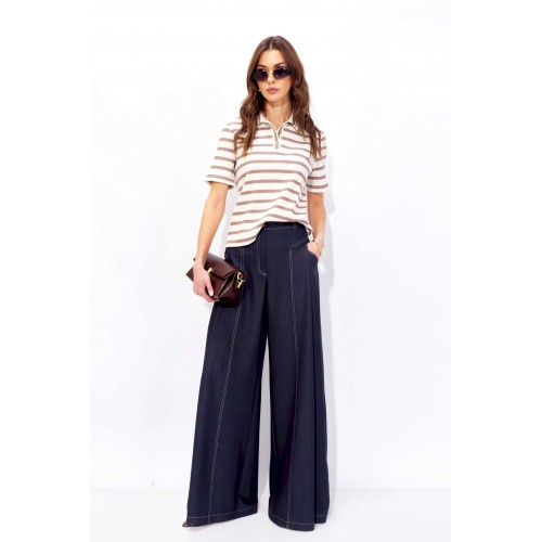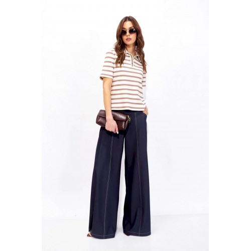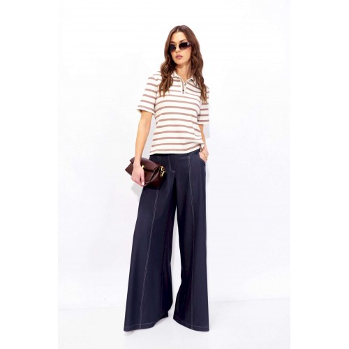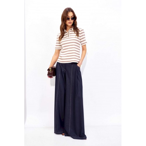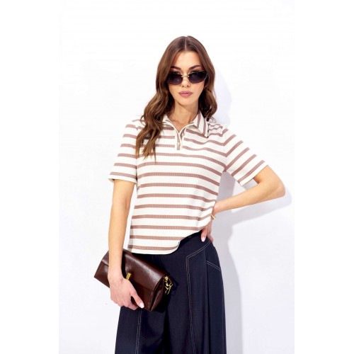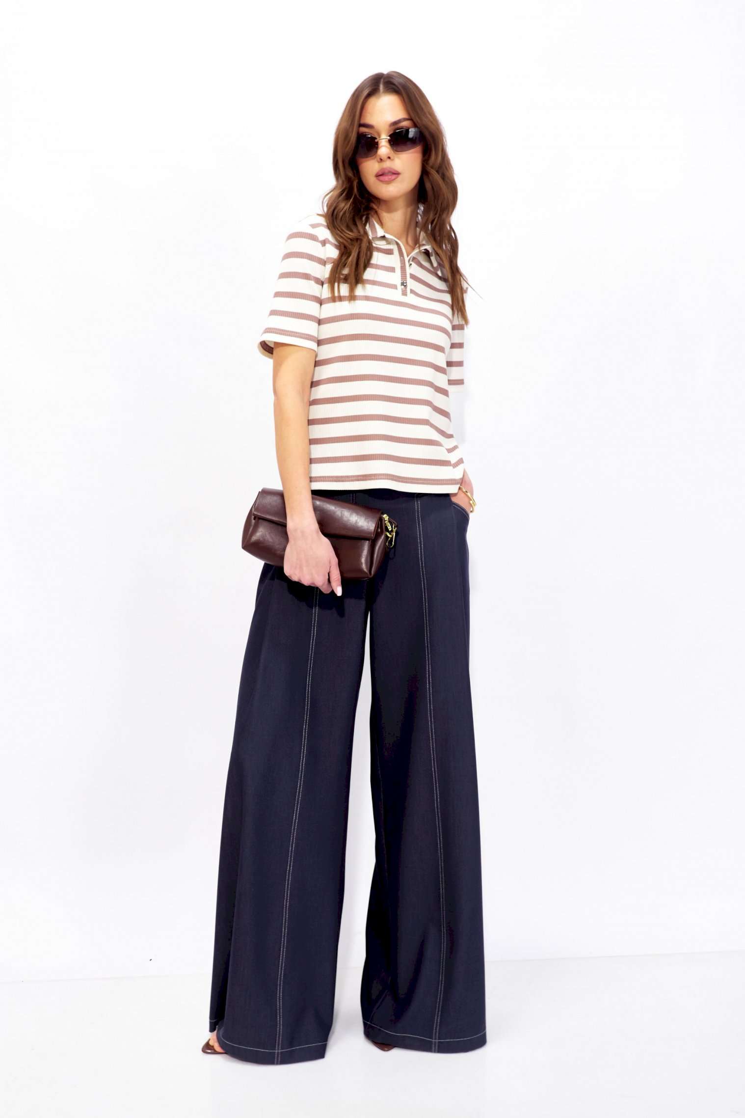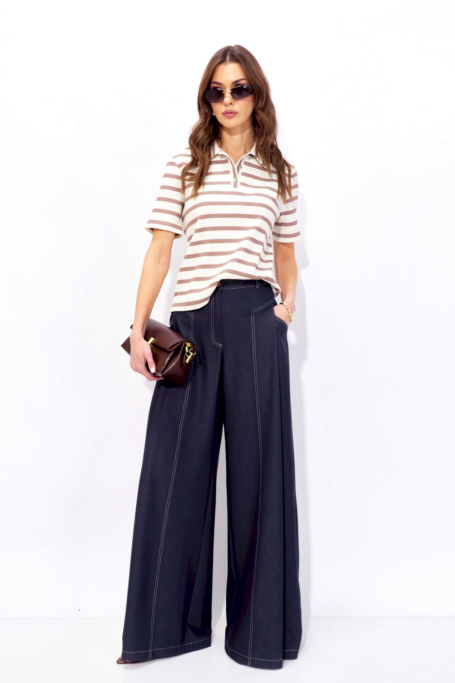 Джемпер полуприлегающего силуэта из трикотажного полотна в полоску. Воротник стояче-отложной, по центру застежка на петли и пуговицы. Рукав втачной, одношовный, выше линии локтя. Обращаем ваше внимание, что фурнитура может отличаться от фото. Длина джемпера (44-48р – 54см)(50-54р - 60см) Длина рукава от горловины (44-48р - 23,5см)(50-54р - 24,5см)