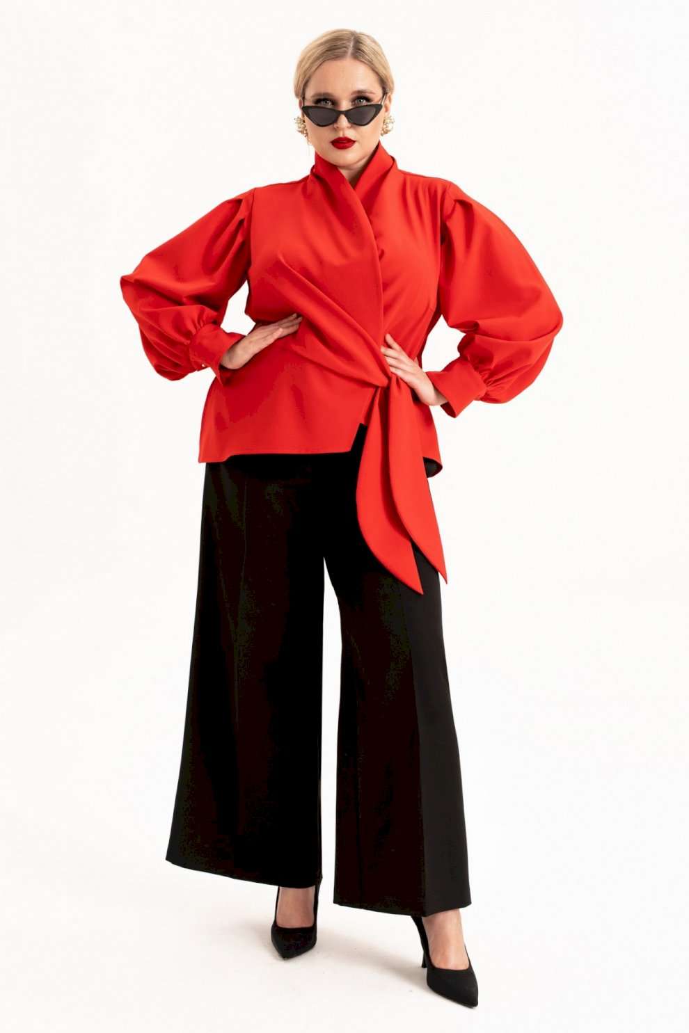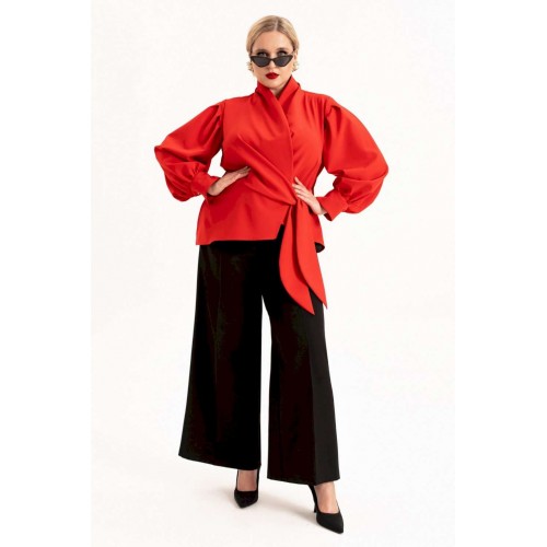 Элегантный женский костюм из ткани «марчано» стильный и универсальный наряд для различных мероприятий. Модель \"двойка\" сочетает в себе современные тенденции 2025-26 года с классическими акцентами. Подходит как для офиса, так и для особых случаев ( новый год, корпоративы, свадьбы или дни рождения) обеспечивая комфорт и уверенность в себе. Брюки с широкими штанинами палаццо выгодно подчеркивают женственные формы, а свободный крой обеспечивает удобство в любой ситуации. Этот костюм больших размеров идеально подойдет для прохладного времени года благодаря легкому материалу и возможности сохранить тепло. Текстура ткани добавляет изысканности и роскоши, делая образ особенно привлекательным на особых событиях. Благодаря универсальному дизайну, костюм можно успешно сочетать с различными элементами гардероба, создавая разнообразные стили от официального до повседневного. На брюках обработаны карманы в боковых швах, по талии пояс с застежкой на молнию и частично на резинке. Жакет с отрезной баской и воротником стойкой переходящей в борта. Застежка на потайную петлю и пуговицу и на завязки. Рукав длинный, втачной на манжете. По окату рукава обработаны складки. Доступен в различных размерах, в том числе и для женщин пышных форм, этот костюм позволит каждой леди подобрать идеальный вариант. Красный цвет костюма подчеркнут вашу индивидуальность и хороший вкус. Независимо от того, выберите ли вы его для офиса или вечера, этот костюм станет верным спутником в создании вашего стильного образа. Длина рукава (см): 62 Длина брюк (см): 106 Длина блузы (см): 67