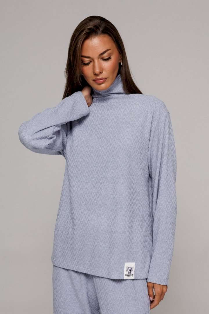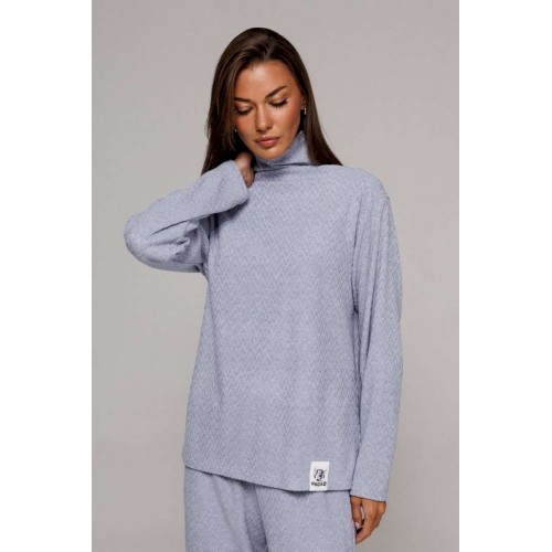 Костюм 2-ух предметный, состоящий из джемпера и брюк. Джемпер прямого силуэта со спущенной линией плеча. Рукав втачной. По переду нашивка \"BUTER\". Внизу по боковым швам обработаны высокие разрезы. Воротник-стойка цельнокроеная. Брюки на притачном, отстроченном поясе с резинкой. Брюки от линии бедра слегка расширены к низу, с карманами в боковых швах.