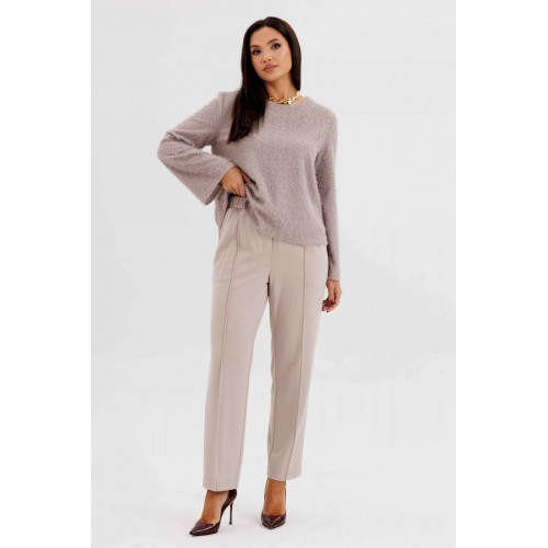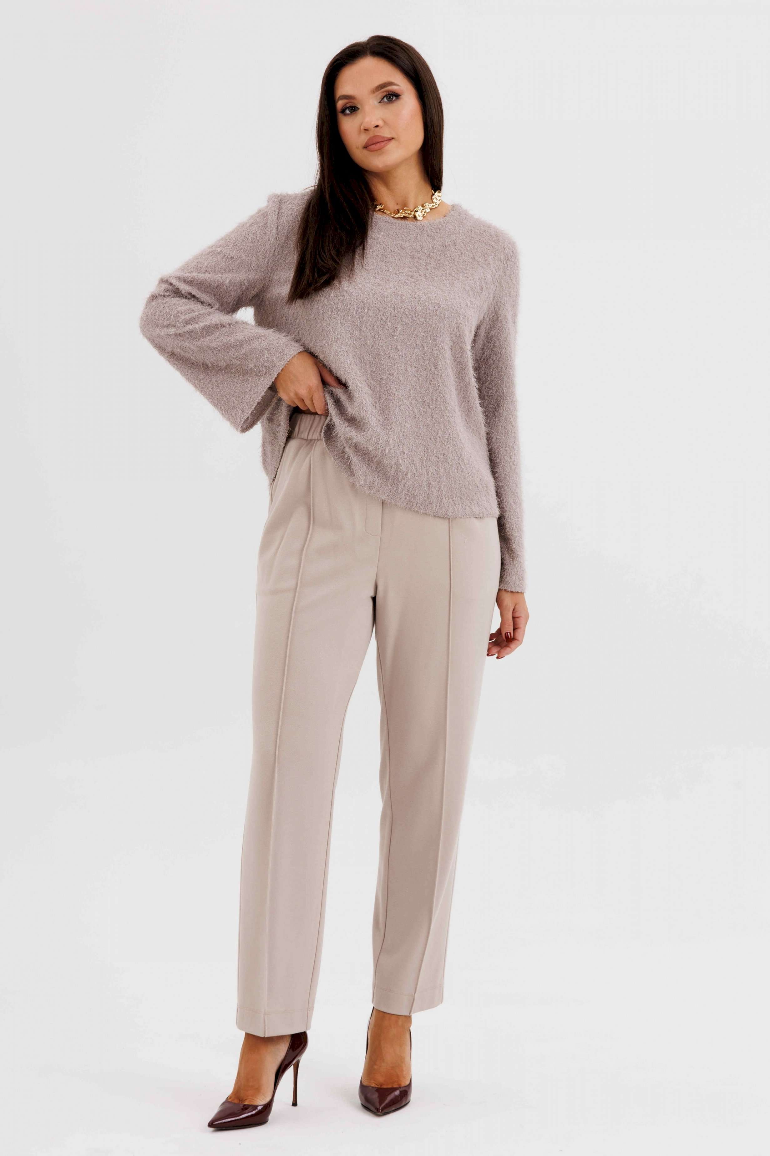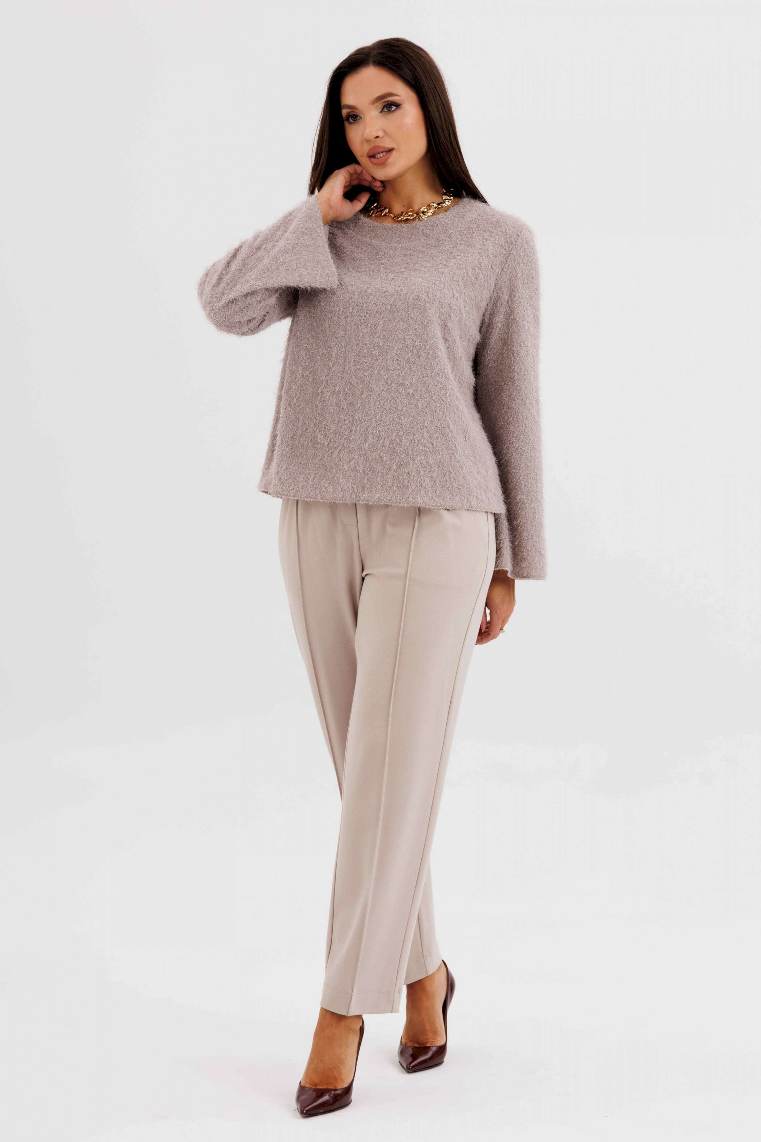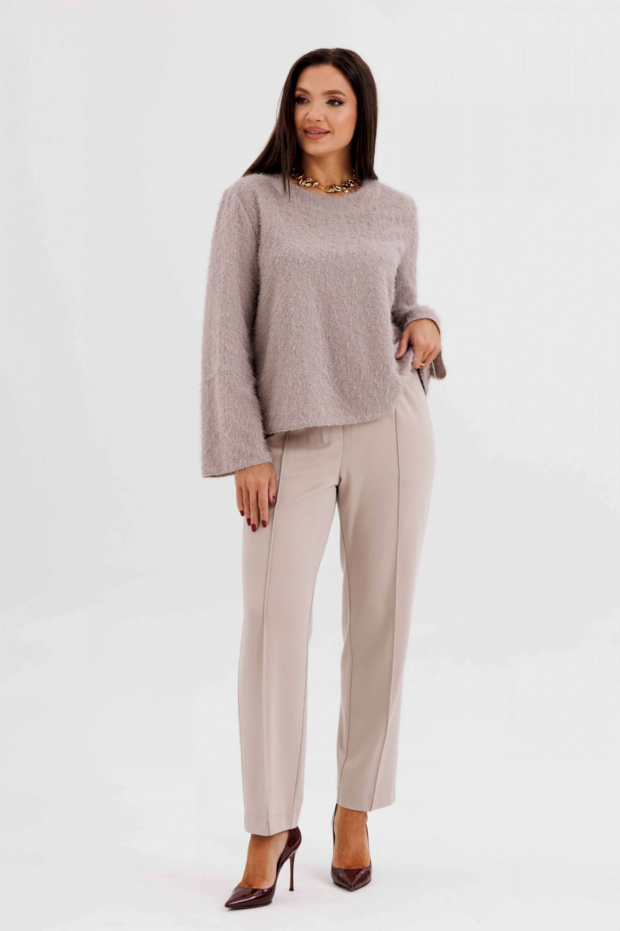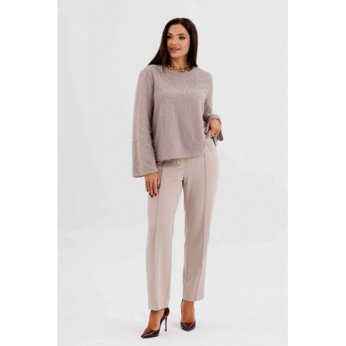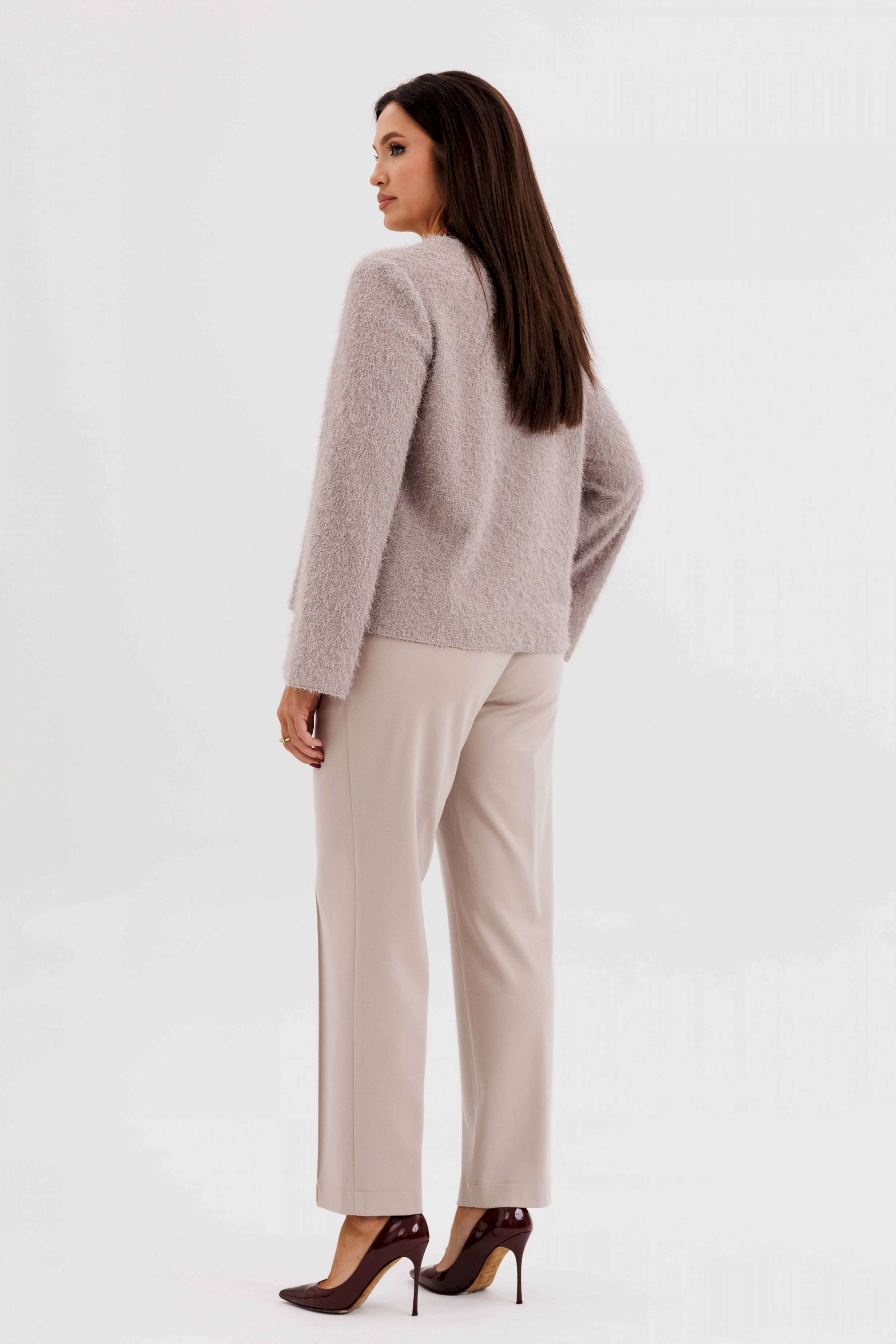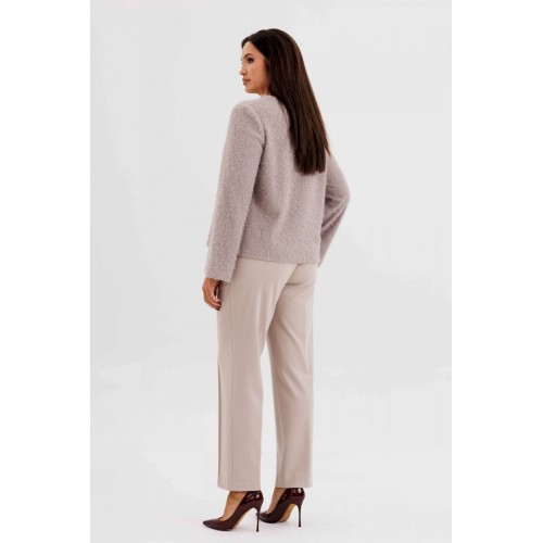 Элегантный брючный комплект — идеальное решение для стильных и уверенных в себе женщин. Комплект состоит из мягкой фактурной блузы свободного кроя и прямых брюк со стрелками. Такое сочетание подчеркивает женственность и утончённый вкус, оставаясь при этом удобным и практичным. Блуза выполнена из нежного трикотажа с лёгким ворсом — материал красиво драпируется и придаёт образу уют. Брюки классического кроя с высокой посадкой и застроченными стрелками визуально вытягивают силуэт и создают безупречную посадку. Комплект отлично подойдёт для офиса, деловых встреч, прогулок или вечернего выхода. Лаконичный дизайн позволяет легко сочетать вещи с обувью на каблуке, ботильонами или кедами. Особенности модели: Комплект: блуза + брюки Фактурная, мягкая блуза с лёгким блеском Брюки со стрелками и комфортной посадкой Универсальный стиль — от делового до casual chic Нежная цветовая гамма, подчёркивающая утончённость.