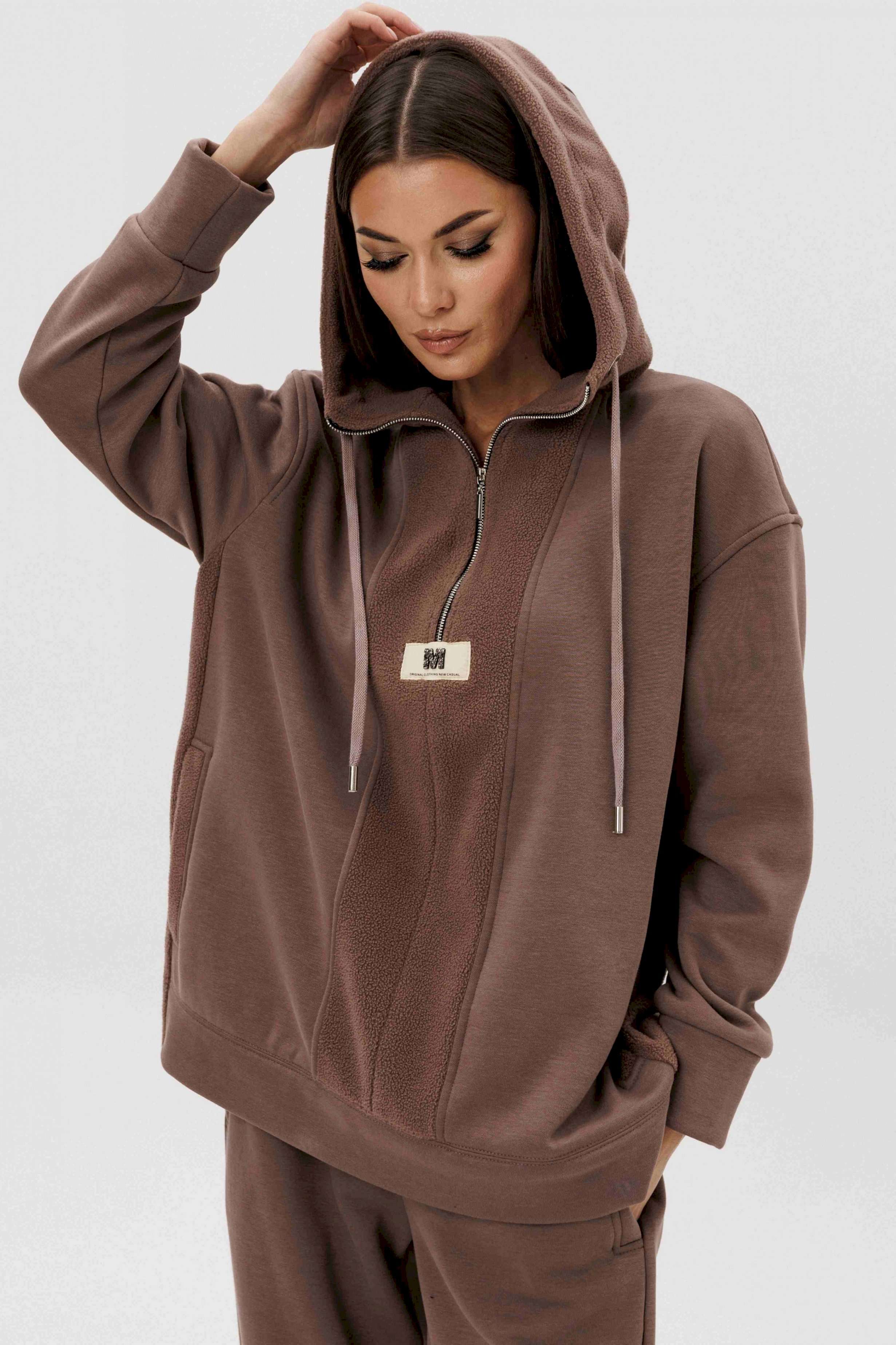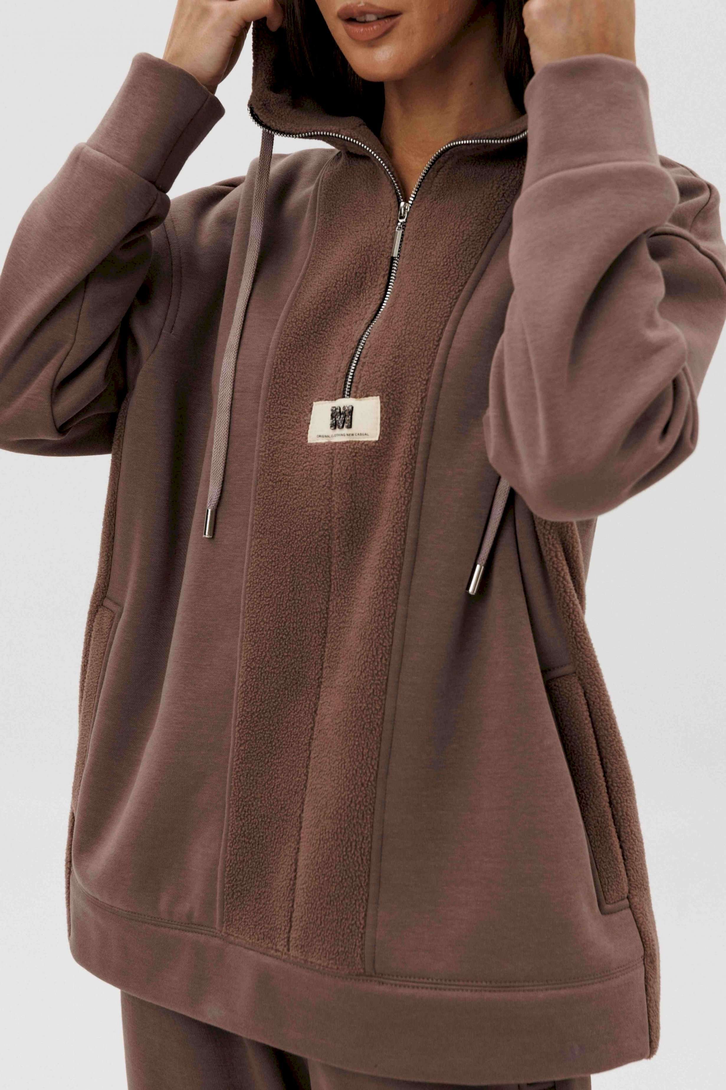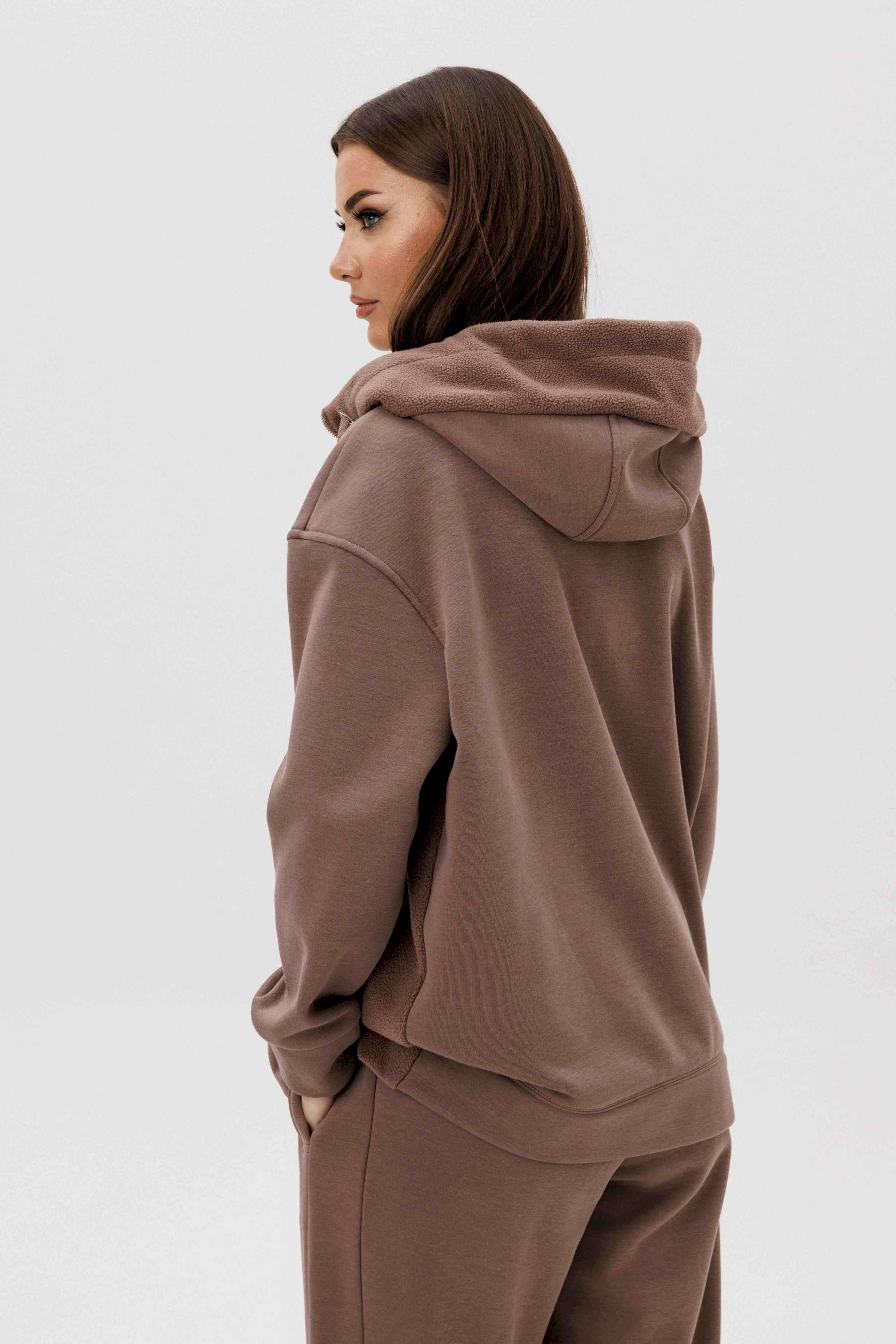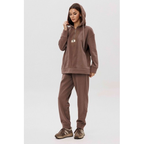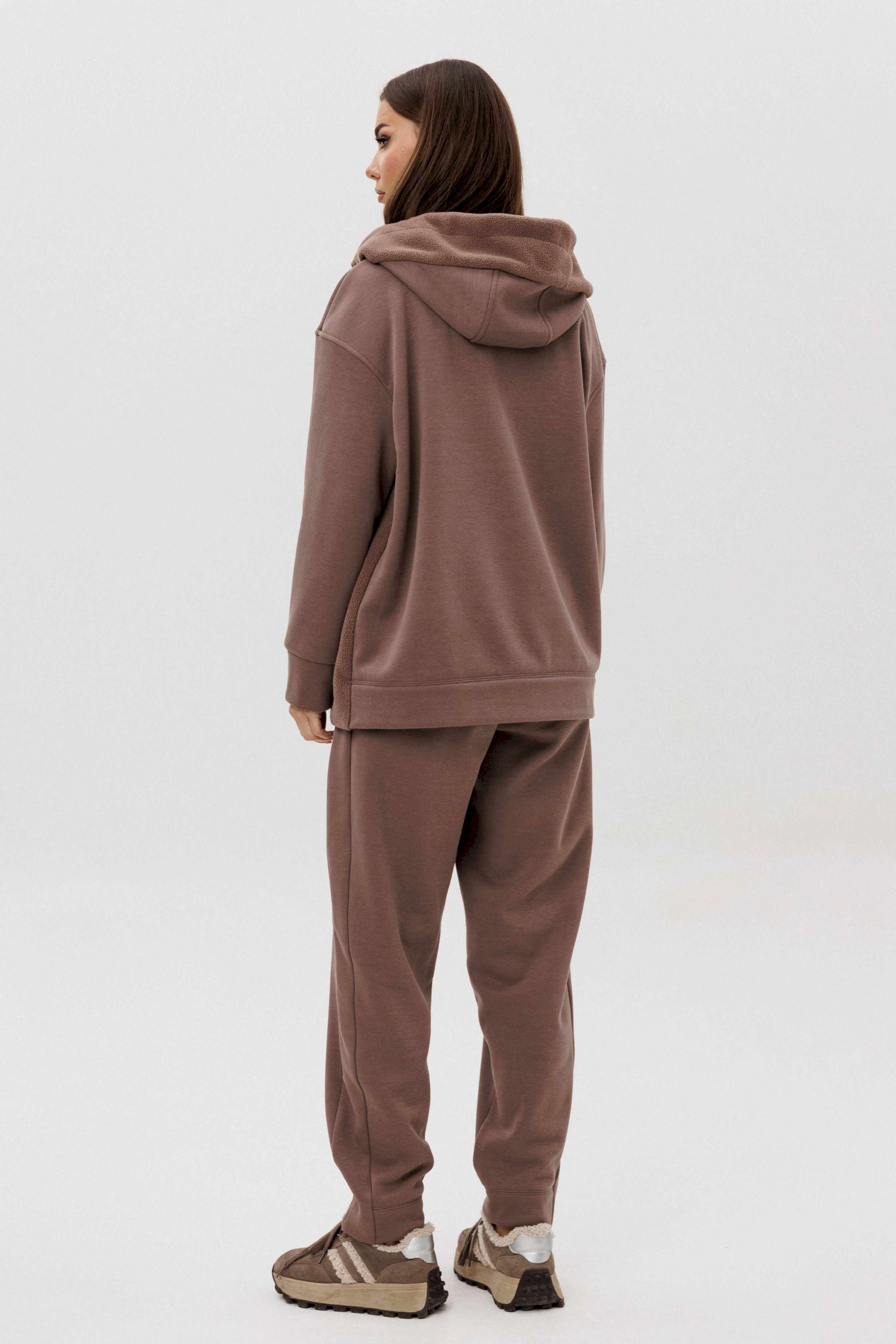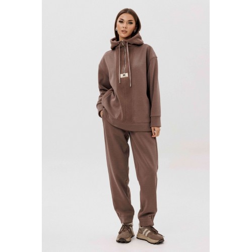 Уютный костюм из тёплого футера с мягким начёсом «барашек» — идеальный выбор для прохладного сезона. Толстовка свободного силуэта с объёмным капюшоном и функциональной молнией спереди создаёт стильный и комфортный образ. Акцентная отделка и фирменная нашивка добавляют современный штрих. Брюки прямого кроя с эластичным поясом и манжетами обеспечивают удобную посадку и свободу движений. Мягкий хлопковый футер с нежным ворсом внутри сохраняет тепло, приятно ощущается на коже и держит форму даже после стирки.