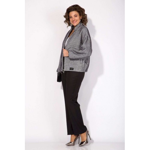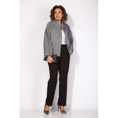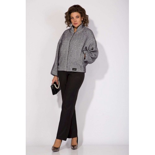Утепленный буклированный жакет, по типу бомбера – стильная женская одежда на каждый день, которая станет отличным дополнением повседневного гардероба. Модель свободного силуэта, со спущенной линией плеча. Застежка центральная на молнию. Низ рукава присборен на резинку. По спинке также предусмотрена резинка для комфортного прилегания. Жакет поставлен на подкладку, имеются прорезные карманы! Свободная оверсайз модель подходит практически под любую фигуру. Классические женские брюки, со средней посадкой, прямого покроя от бедра. Застежка – брючная тесьма-молния с обработанным гульфиком. Карманы боковые. Пояс притачной, в боковых участках вставлена резинка на свободу. По переду заутюжены канты. Спинка с Талиевыми выточками. Подгибка брюк –– 4 см. Длина брюк – 104 см. Длина по спинке – 68-65 ми, рукав – 62 см.