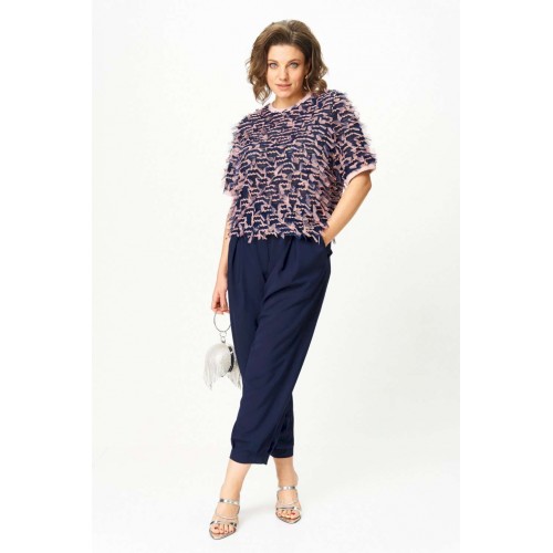 ◾Верх из сетки с бантиками — лёгкий, оригинальный и дышащий, добавляет игривость образу. ◾Брюки из струящейся ткани — приятные к телу, визуально вытягивают силуэт, элегантно движутся при ходьбе. ◾Можно носить как нарядный костюм или комбинировать отдельно: кофточку — с джинсами или юбкой, брюки — с блузками и жакетами. ◾Универсальный вариант для праздников, встреч, мероприятий и повседневных образов с ноткой шика. Комплект, который делает день особенным — легко, стильно и с улыбкой. Длина джемпера по спинке 50 см +\- 1 см, длина рукава 28 см +\- 1 см; длина брюк по боковому шву 97 см +\- 1 см, длина по шаговому шву 66 см +\- 1 см. Изделие подойдет на рост 170 см.