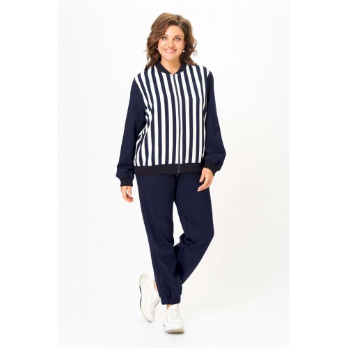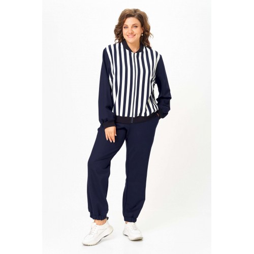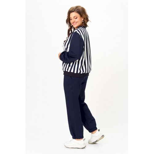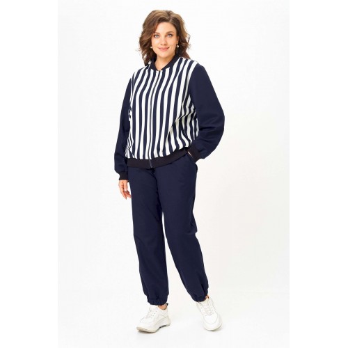 Костюм женский спортивный, состоящий из бомбера и брюк. Легкий джемпер-бомбер, предназначен для молодых и стильных женщин. Выполнен из двойной костюмно-плательной ткани, по передним полочкам выполнены прорезные карманы. Стойка-воротника выполнена из ткани кашкорсе, из этой же ткани выполнены манжеты на рукавах. По центру изделия молния. Брюки заужены к низу, с карманами. Брюки на резинке по талии. Низ брюк на манжете с резинкой. Бережная стирка при 30 градусах!