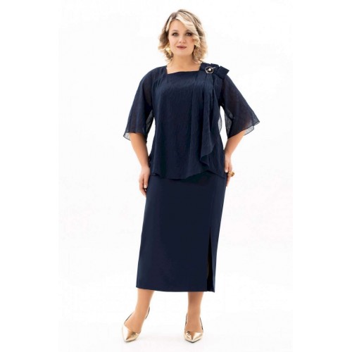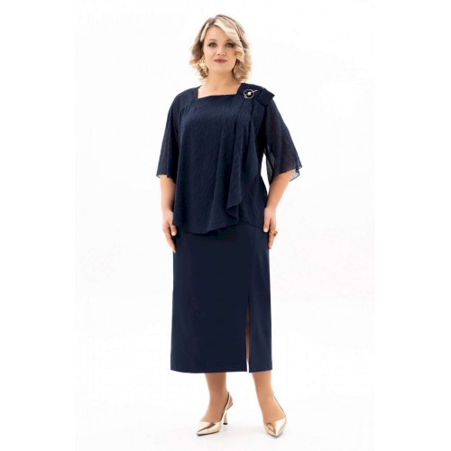 Костюм с юбкой 4125 Algranda (Новелла Шарм) мгновенно привлекает внимание своим изысканным дизайном. Коллекция бренда Новелла Шарм демонстрирует сочетание комфорта и стиля, идеального для офисной или вечерней атмосферы. Костюм выполнен из полиэстра и вискозы, что обеспечивает прочность и лёгкость ухода, а эластан добавляет эластичности. Блуза с нагрудными выточками, фигурным вырезом и декоративными элементами, такими как мягкие складки и съёмная брошь, подчёркивает женственность. Разрезы на юбке и её зауженная к низу форма добавляют динамичности образу. Длина блузы составляет 59 см, юбки — 90 см, рукава 39 см, что подходит для многих типов фигуры. Эластичная тесьма на поясе и застёжка на молнию сзади обеспечивают удобную посадку. Насыщенный синий цвет дополнит ваш гардероб, сочетаясь с различными аксессуарами. Идеален для разных сезонов — весны, осени, прохладных летних вечеров.