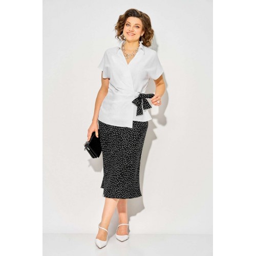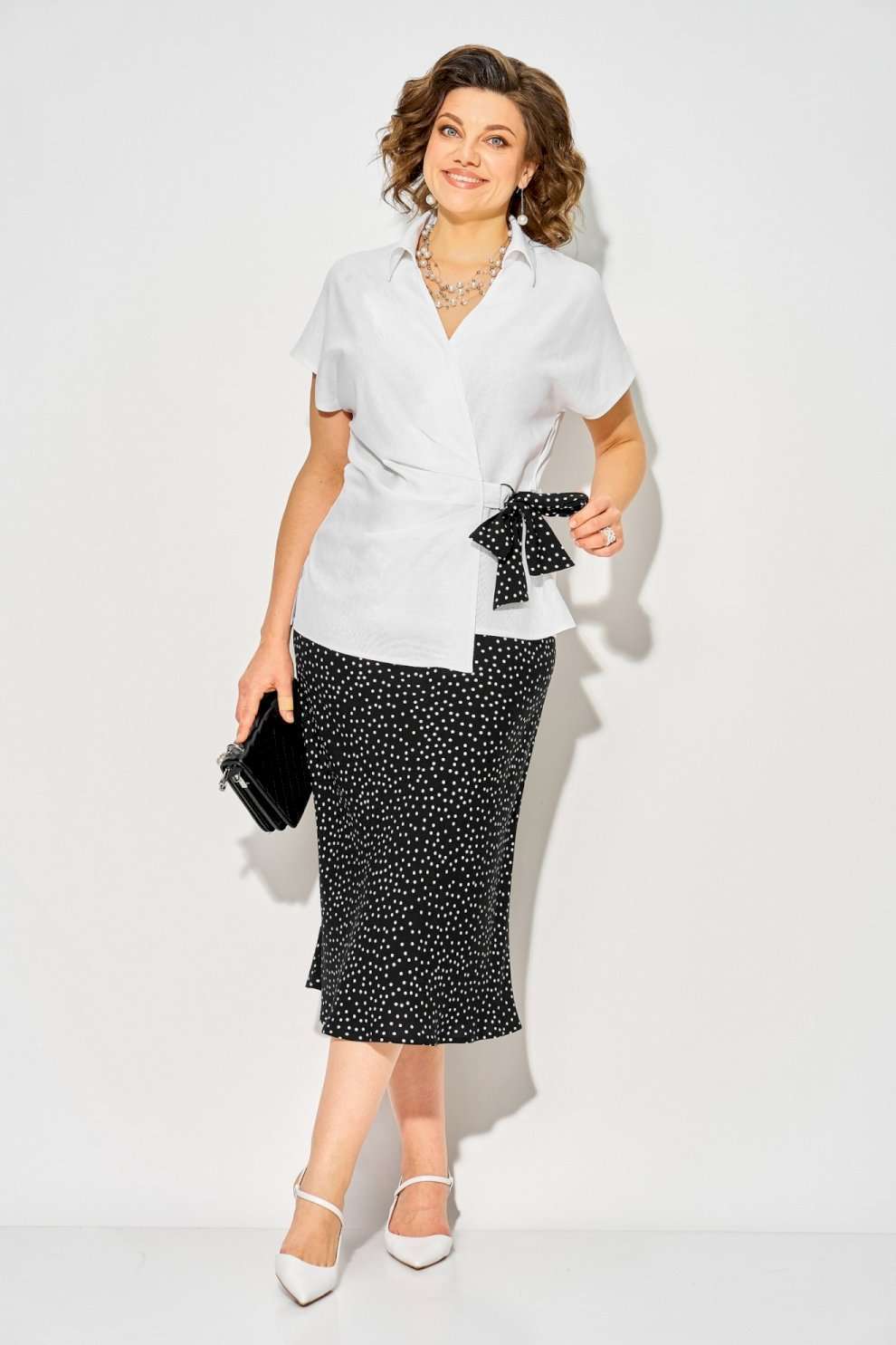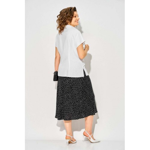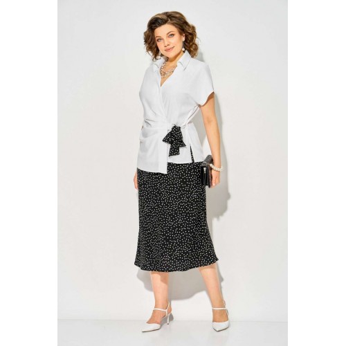 Костюм с юбкой 1534 Liliana-style — идеальный выбор для тех, кто ценит комфорт и стиль. Коллекция бренда Liliana-style включает в себя этот гармоничный комплект, состоящий из блузки и юбки из штапеля в модный горох. Материалы льон и хлопок обеспечивают лёгкость и воздухопроницаемость, а вискоза и полиэстер добавляют прочность. Блузка с V-образным вырезом и отложным воротником украшена завязкой, подчеркивающей талию. Юбка на цельнокроеном поясе с резинкой и разрезами обеспечивает свободу движений и визуально вытягивает силуэт. Идеален для повседневной носки в летние дни. Длина блузки — 62 см, юбки — 90 см.