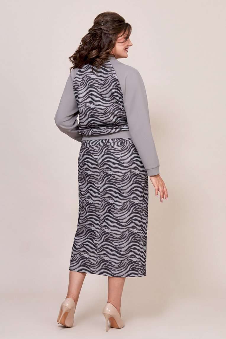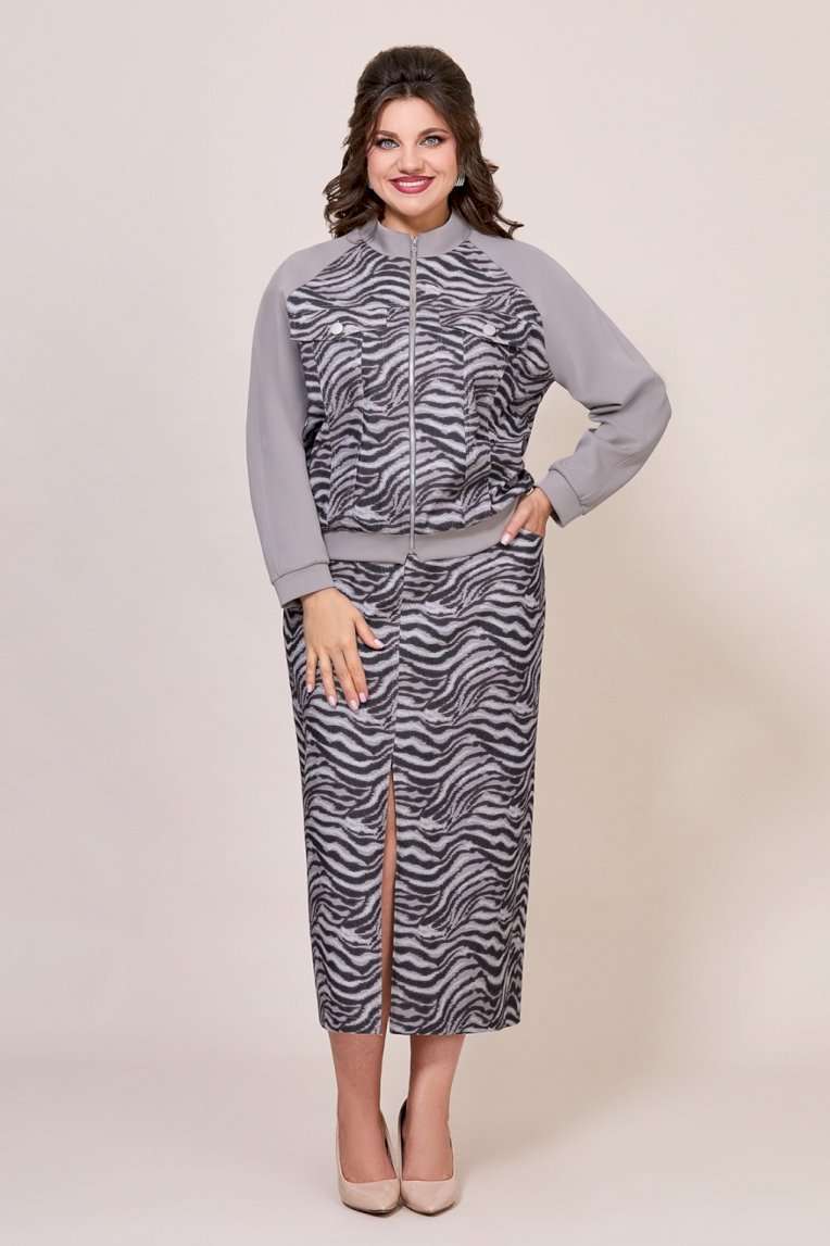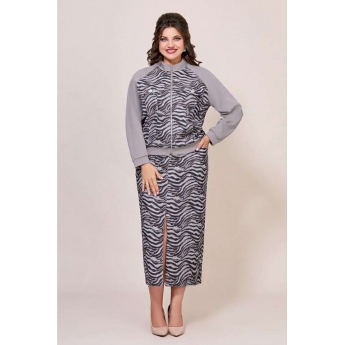 Современный комплект, состоящий из бомбера и юбки, полу-прилегающего силуэта, выполнен из трикотажа и джинса с принтом. Бомбер с застежкой на молнию по переду, полочка и спинка выполнена из джинса, также на полочке обработаны кокетки и рельефы, по рельефам выполнены накладные карманы с клапаном. Горловина обработана притачной стойкой из трикотажа и джинса, по низу бомбера притачная планка из трикотажа. Рукав покроя реглан, выполнен из трикотажа, по низу на манжете, спинка из джинса с принтом, без конструктивных элементов. Юбка слегка заужена к низу, верхний срез обработан притачным поясом, застежка спереди на молнию, по поясу на пуговицу. Также по переду обработаны карманы в боковых швах, средний шов, по низу шва разрез. На заднем полотнище юбки обработаны кокетки и прорезные карманы с листочкой, также на заднем полотнище обработан средний шов. Стильный комплект, выполнен в спортивном стиле отличный выбор, чтобы быть в тренде! Длина куртки 58см, длина юбки 85см. В 52р Куртка: Ширина груди- 58см, Ширина талии -55см, ширина бедер -50см, длина рукава- 70см, ширина рукава 22см. Юбка: Ширина бедер -57см, Ширина талии- 46см