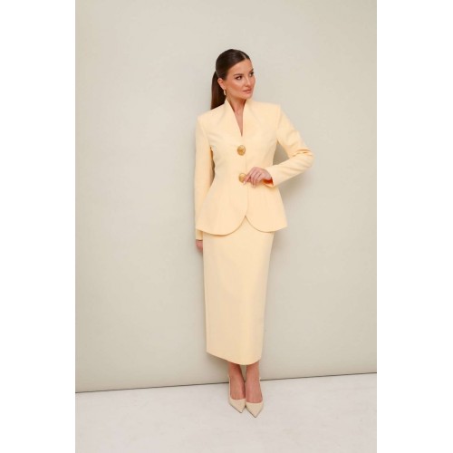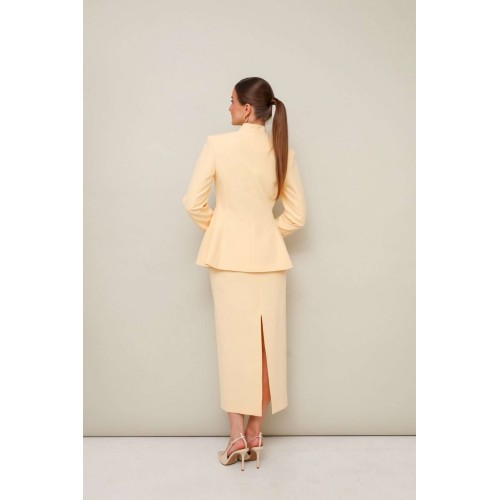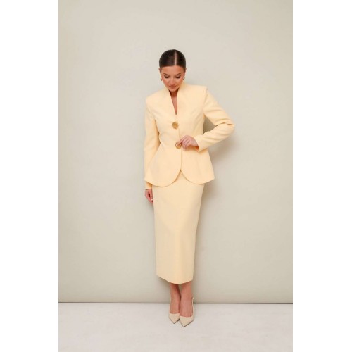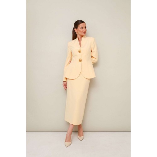 Костюм с юбкой 11-452-1 Pur Pur − яркий и стильный выбор для современных женщин. Коллекция бренда Pur Pur представляет этот костюм, выполненный из качественной костюмной ткани с добавлением полиэстера и спандекса. Жакет прилегающего силуэта, расширенный к низу, с удобной застёжкой на потайные кнопки и акцентными пуговицами. Горловина оформлена цельнокроеной стойкой и V-образным вырезом, придающим элегантности. Рукава втачные, с двухшовной конструкцией. Спинка жакета с рельефами и средним швом для идеальной посадки. Миди-юбка оснащена скрытой молнией и шлицей для удобства движения. Ярко-красный цвет и строгий классический стиль делают этот комплект отличным выбором для деловых встреч и стильных мероприятий в осенне-зимний период.