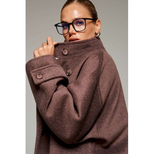 Демисезонное пальто прямого силуэта для тех, кто любит комфорт и лаконичность. Это сочетание стиля, современных материалов и безупречного кроя. Лёгкое, удобное и уютное пальто подходит для любого случая выхода. Пальто выполнено из шерстяной ткани, которая обеспечивает теплоизоляцию и защиту от ветра и влаги, подходит для межсезонья и теплой зимы. Двубортное, на подкладке. Изделие рассчитано на температурный режим от +10 до -5 градусов. Модель прямого силуэта актуального покроя «летучая мышь»; предназначена для повседневного использования. Передняя часть цельнокроеная с двумя функциональными прорезными карманами с листочкой. Спинка с центральным швом. Для удобства динамики внизу изделия расположена высокая шлица. Рукав длинный двухшовный тип «летучая мышь». Внизу рукава расположена пата, фиксируемая кнопкой. Воротник – стойка. Застёжка до верха, смещенная, на три видимые петли с декоративными пуговицами и на одну потайную петлю с пуговицей, а также на дополнительную петлю с пуговицей на воротнике, Низ изделия ровный. Подкладка гладкая. К изделию прилагается пояс-завязка. Длина (по среднему шву спинки) = 122 см. (+1см.) Длина рукава (+плечо) = 79 см. (+1см.)