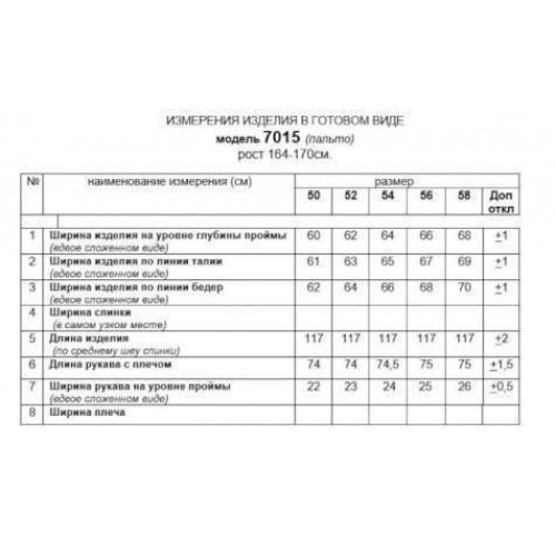 Демисезонное пальто прямого силуэта для тех, кто любит комфорт и лаконичность. Это сочетание стиля, современных материалов и безупречного кроя. Лёгкое, удобное и уютное пальто подходит для любого случая выхода. Пальто выполнено из шерстяной ткани, которая обеспечивает теплоизоляцию и защиту от ветра и влаги, подходит для межсезонья и теплой зимы. Двубортное, на подкладке. Изделие рассчитано на температурный режим от +10 до -5 градусов. Модель прямого силуэта, чуть расширенная к низу, покроя «летучая мышь»; предназначена для повседневного использования. Передняя часть цельнокроеная, с двумя прорезными карманами с широкой листочкой. Спинка с центральным швом. Для удобства динамики внизу изделия расположена высокая шлица. Рукав длинный, двухшовный с вытачкой тип «летучая мышь». Застёжка смещенная на две видимые петли с декоративными пуговицами и на потайную петлю с пуговицей. Для удобства застегивания изделия до верха на правом лацкане выполнена навесная петелька в цвет пальто. Воротник классический пиджачного типа с лацканами. Низ изделия ровный. Подкладка гладкая. К изделию прилагается пояс-завязка. Длина (по среднему шву спинки) = 117см. (+2 см.) Длина рукава (+плечо) = 74,5 см. (+1,5 см.)