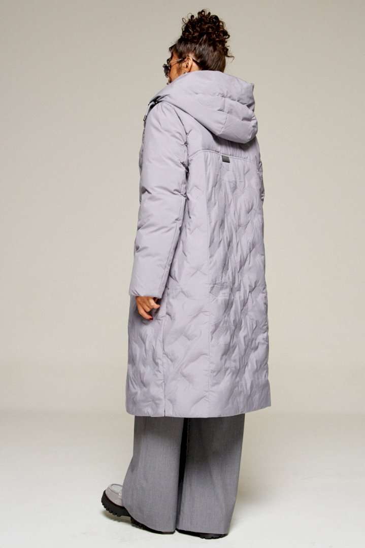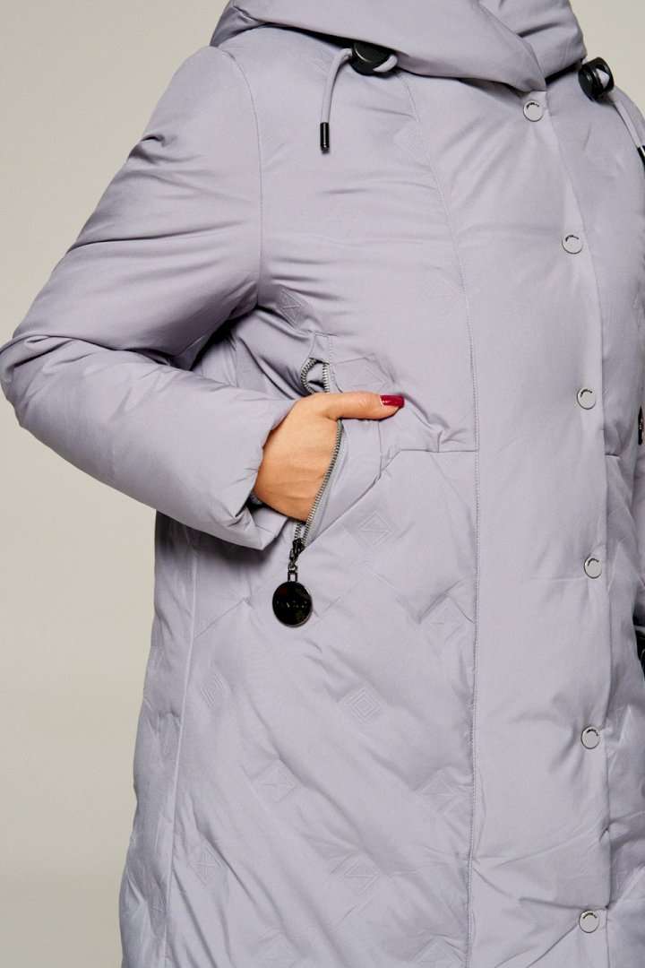 Зимнее, стеганое полупальто прямого силуэта для ценителей стиля и практичности. Это отличное сочетание современных материалов и точного кроя. Лёгкое, удобное и классическое пальто подходит для холодных дней, обеспечивая тепло и комфорт в холодную погоду. Идеально сочетает в себе сдержанность и расслабленность, универсальность и гармоничность. Пальто выполнено из прочной, влагостойкой и приятной на ощупь полиэстерной ткани; на синтетической подкладке. Утеплитель холлофайбер 250 г/м. кв. предназначен для использования изделия при температурном режиме от -10 до -25 градусов. Модель прямого силуэта, базового кроя; предназначена для повседневной носки. Перед с центральной вертикальной вставкой, переходящей в капюшон, а также с фигурным подрезом на уровне талии и с симметричными боковыми карманами от него, фиксируемые на кнопку. Выше подреза расположены функциональные вертикальные карманы на молнии с декоративным металлическим бегунком. Спинка с кокеткой и с боковыми рельефами от неё. Рукав длинный втачной двухшовный. По низу внутри рукава предусмотрена дополнительная вставка в виде притачной трикотажной манжеты. Капюшон умеренного объема. По периметру капюшона с внешней стороны вставлен шнур в цвет изделия с декоративными фиксаторами и наконечниками. Застежка смещенная на двустороннюю молнию от верха до низа и кнопки. Низ изделия ровный. Для удобства движения внизу в боковых швах предусмотрены небольшие разрезы. Подкладка гладкая с наличием внутреннего кармана слева. Длина (по среднему шву спинки) ~ 110 см. (+2 см.) Длина рукава ~ 65,5 см. (+1.5 см.) С учетом плюсовых прибавок подходит на рост 170 см.