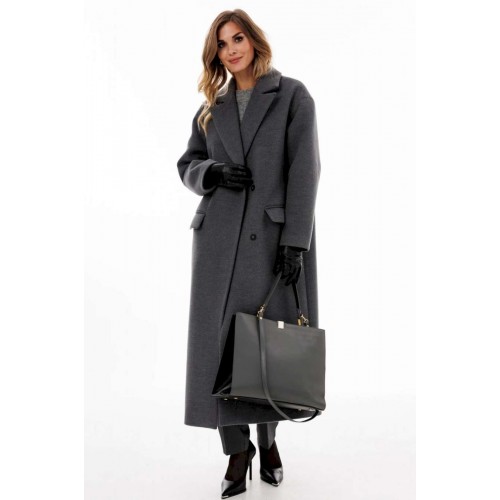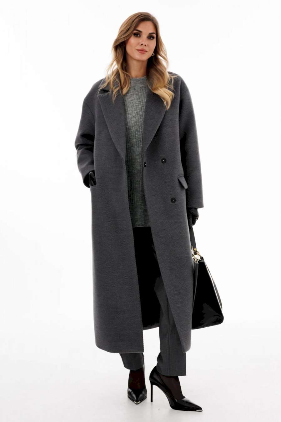Пальто выполнено из пальтовой ткани в рубчик. Пальто прямого силуэта, длиной до середины икры. Спереди застежка двубортная на пришивные кнопки, горизонтальные прорезные карманы. Спинка со средним швом со шлицей по низу. Воротник пиджачного типа. Плечевой шов спущен. Рукав одношовный. Пальто на притачной по низу подкладке. Длина пальто: р.44-48 - 126,5 см, р.50-54 - 128 см. Длина рукава: р.44-48 - 74 см, р.50-54 - 75 см. Гарантийный срок не установлен ГОСТ 25295 - 2003
