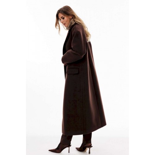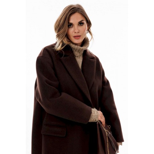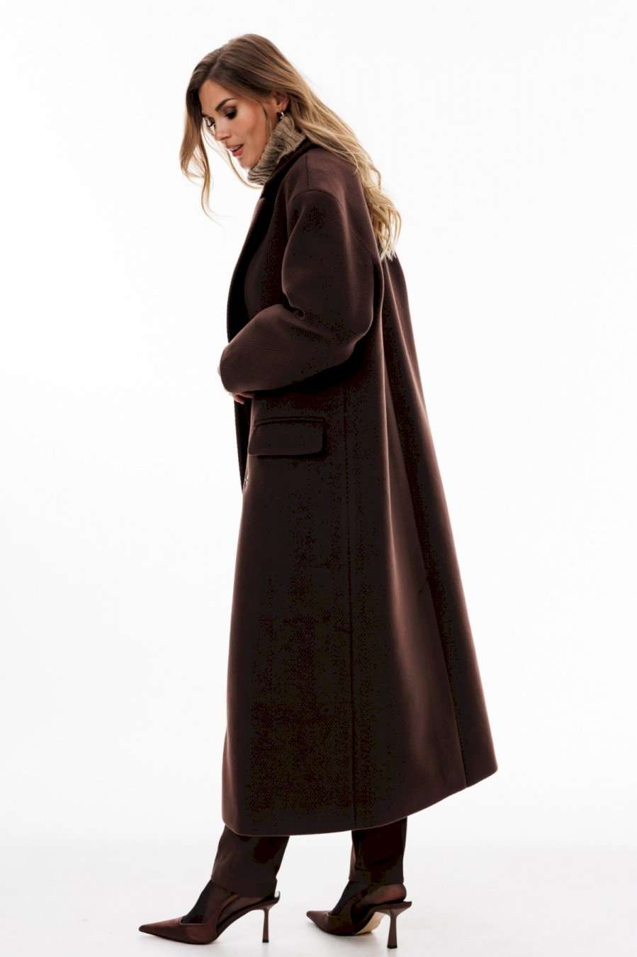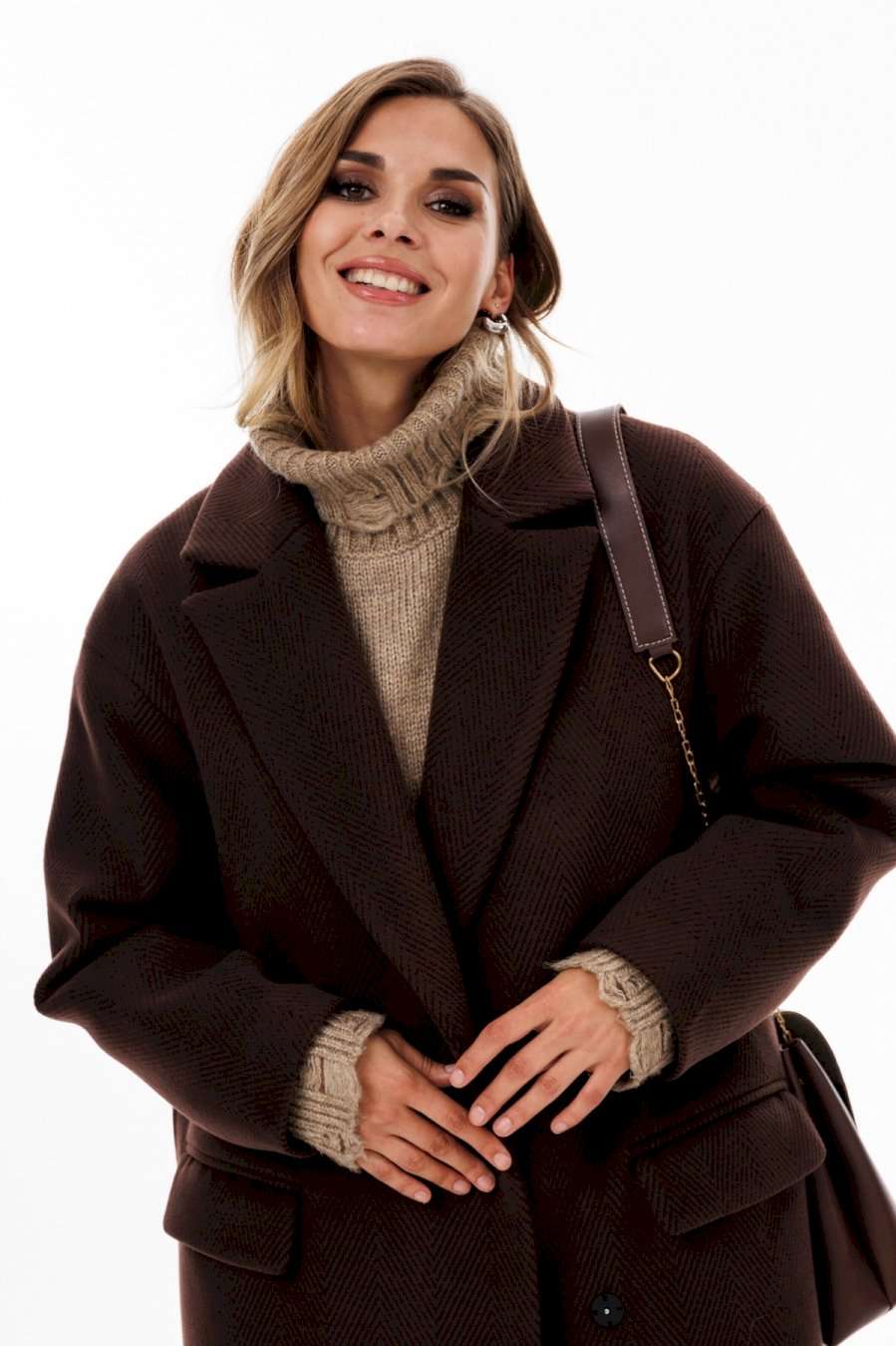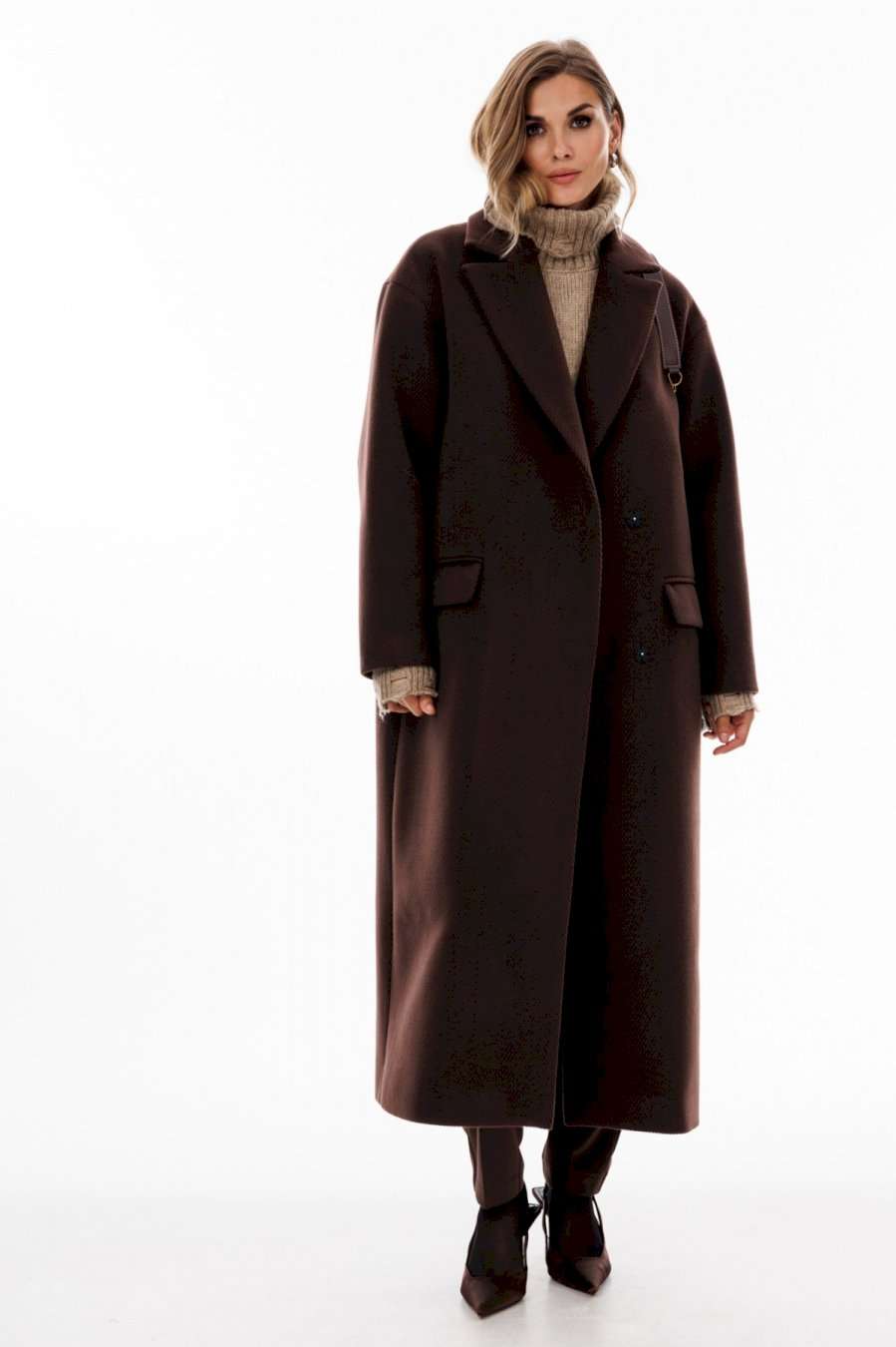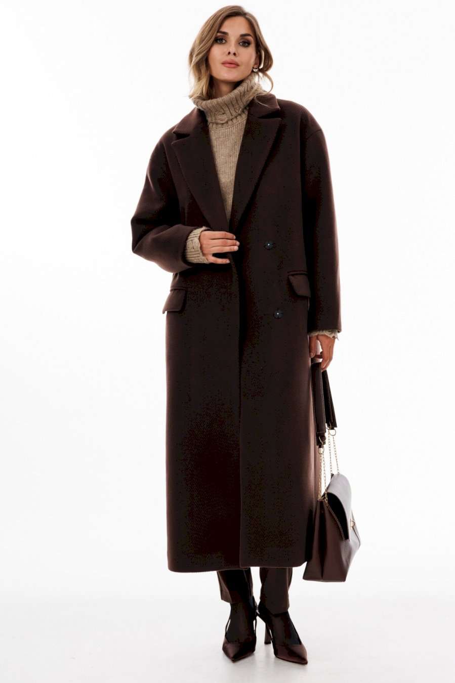 Пальто выполнено из пальтовой ткани в рубчик. Пальто прямого силуэта, длиной до середины икры. Спереди застежка двубортная на пришивные кнопки, горизонтальные прорезные карманы. Спинка со средним швом со шлицей по низу. Воротник пиджачного типа. Плечевой шов спущен. Рукав одношовный. Пальто на притачной по низу подкладке. Длина пальто: р.44-48 - 126,5 см, р.50-54 - 128 см. Длина рукава: р.44-48 - 74 см, р.50-54 - 75 см. Гарантийный срок не установлен ГОСТ 25295 - 2003