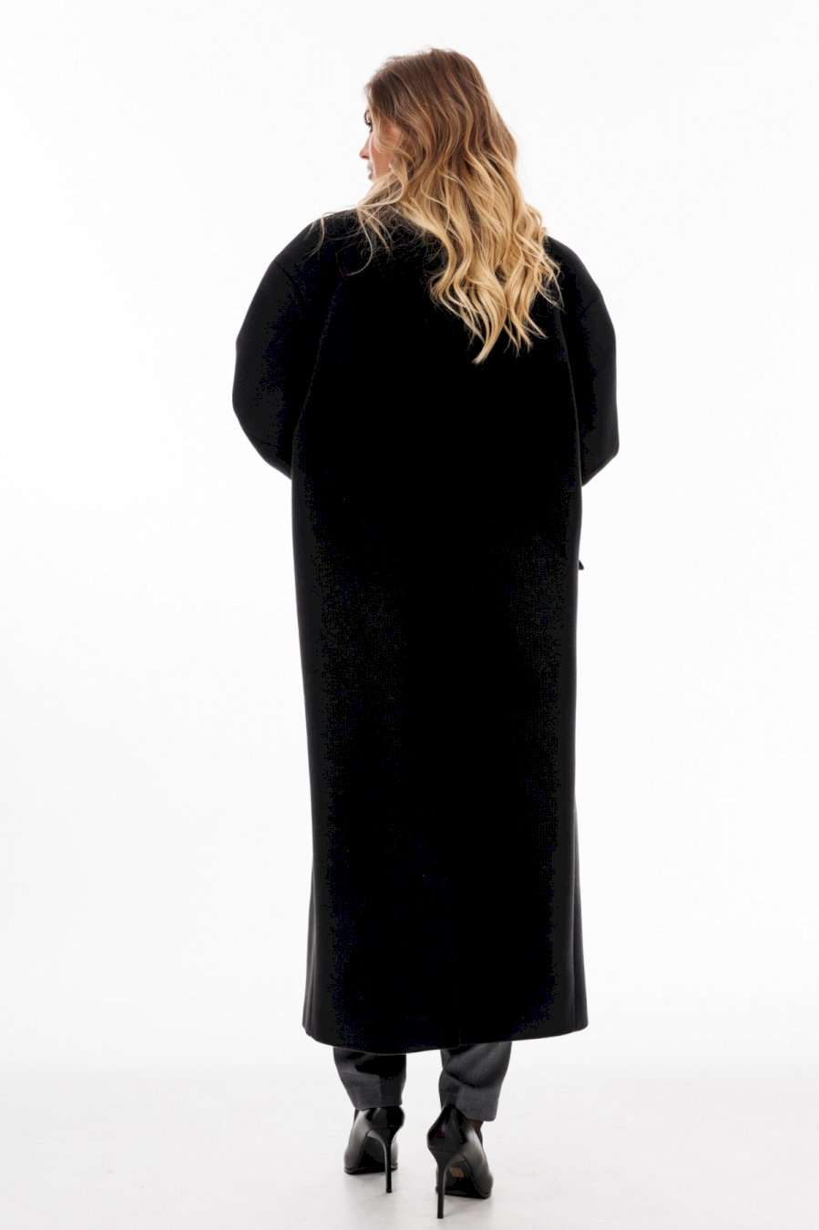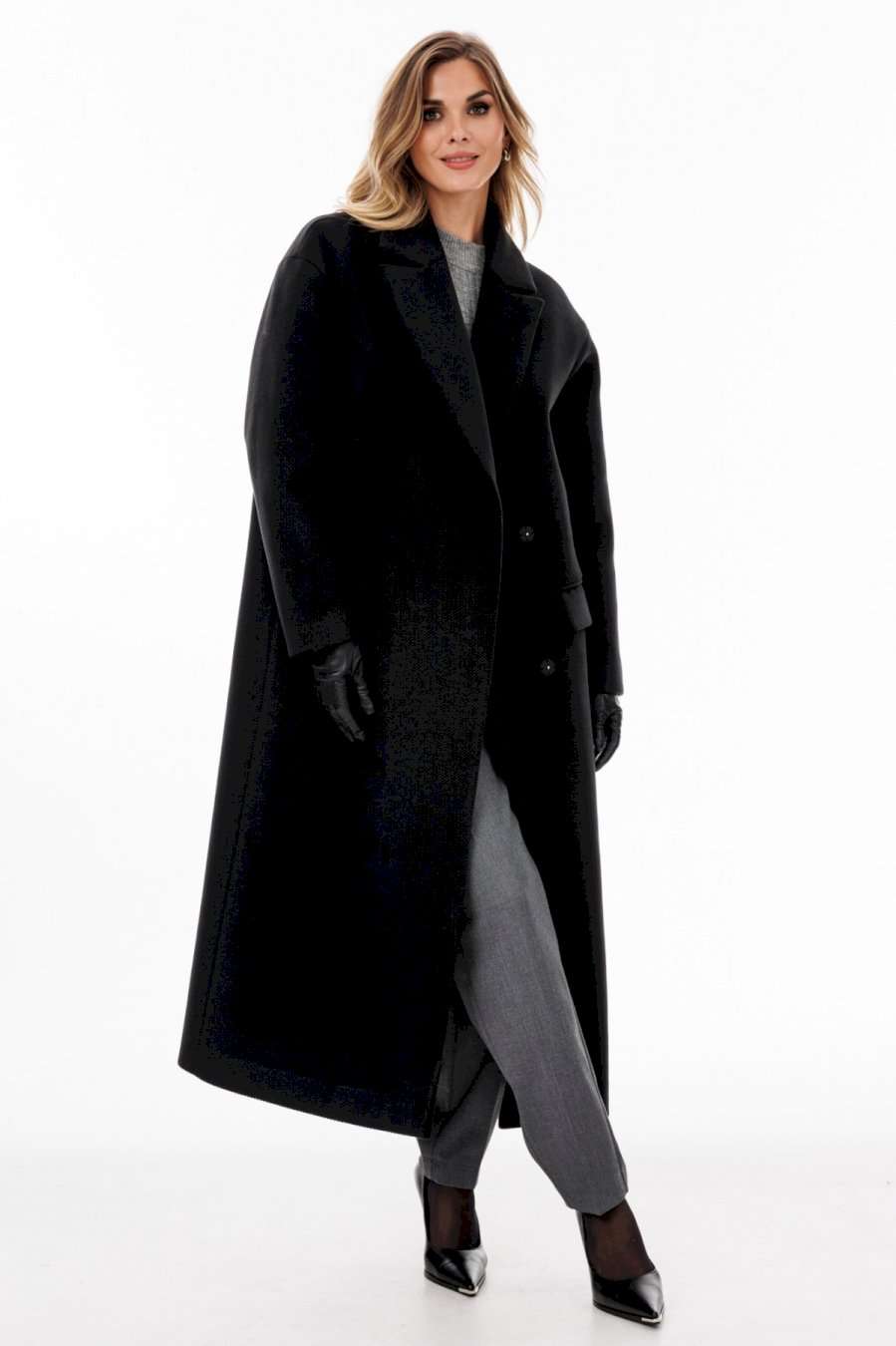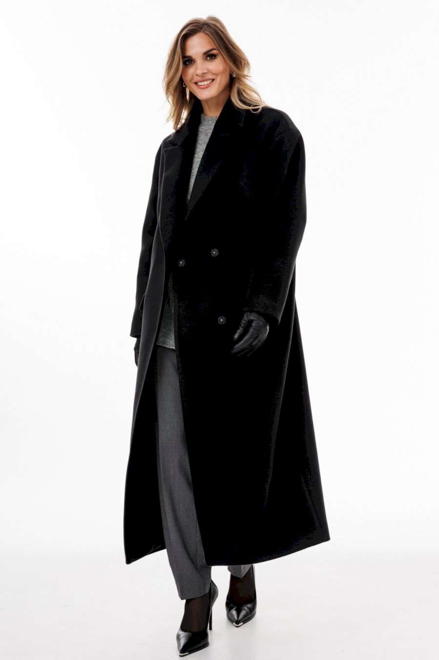 Пальто выполнено из пальтовой ткани в рубчик. Пальто прямого силуэта, длиной до середины икры. Спереди застежка двубортная на пришивные кнопки, горизонтальные прорезные карманы. Спинка со средним швом со шлицей по низу. Воротник пиджачного типа. Плечевой шов спущен. Рукав одношовный. Пальто на притачной по низу подкладке. Длина пальто: р.44-48 - 126,5 см, р.50-54 - 128 см. Длина рукава: р.44-48 - 74 см, р.50-54 - 75 см. Гарантийный срок не установлен ГОСТ 25295 - 2003