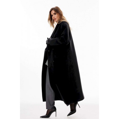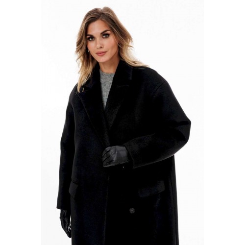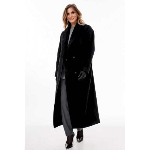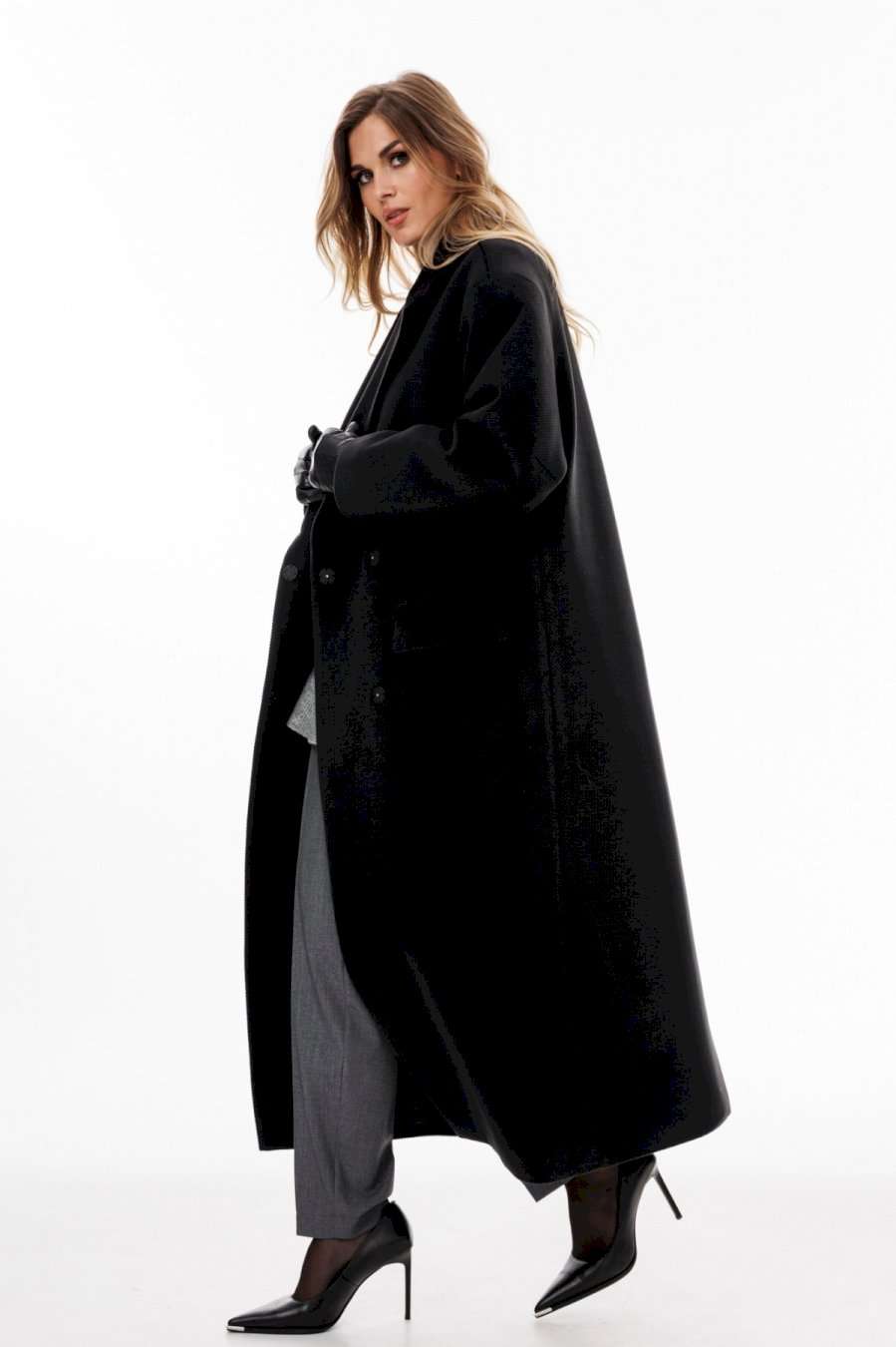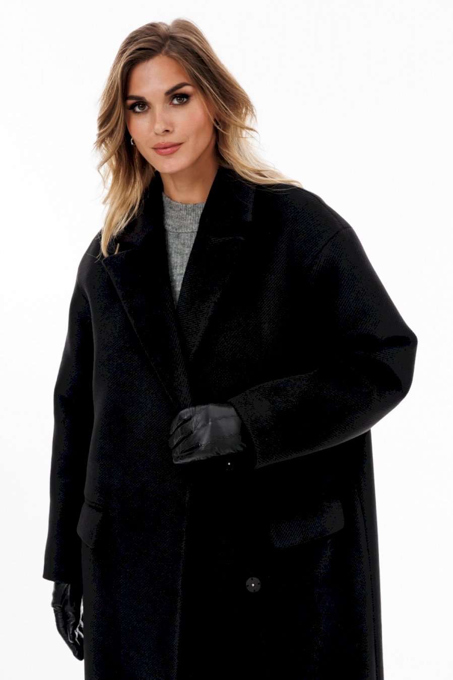 Пальто выполнено из пальтовой ткани в рубчик. Пальто прямого силуэта, длиной до середины икры. Спереди застежка двубортная на пришивные кнопки, горизонтальные прорезные карманы. Спинка со средним швом со шлицей по низу. Воротник пиджачного типа. Плечевой шов спущен. Рукав одношовный. Пальто на притачной по низу подкладке. Длина пальто: р.44-48 - 126,5 см, р.50-54 - 128 см. Длина рукава: р.44-48 - 74 см, р.50-54 - 75 см. Гарантийный срок не установлен ГОСТ 25295 - 2003