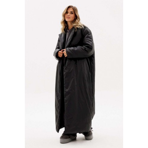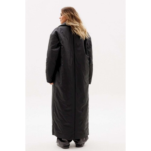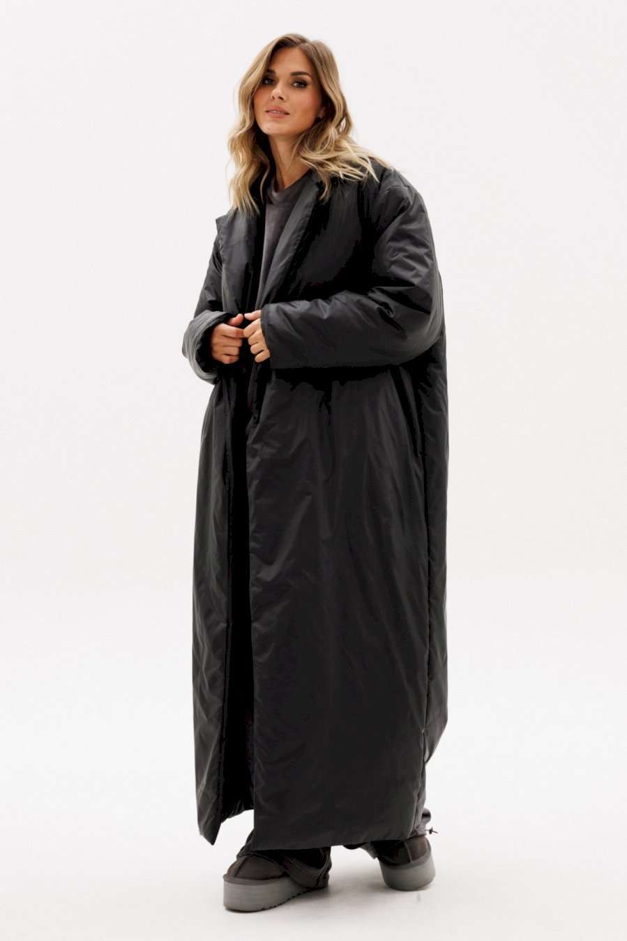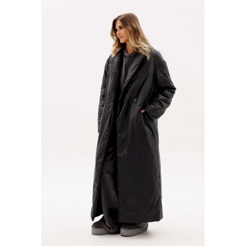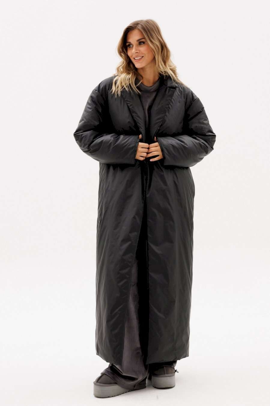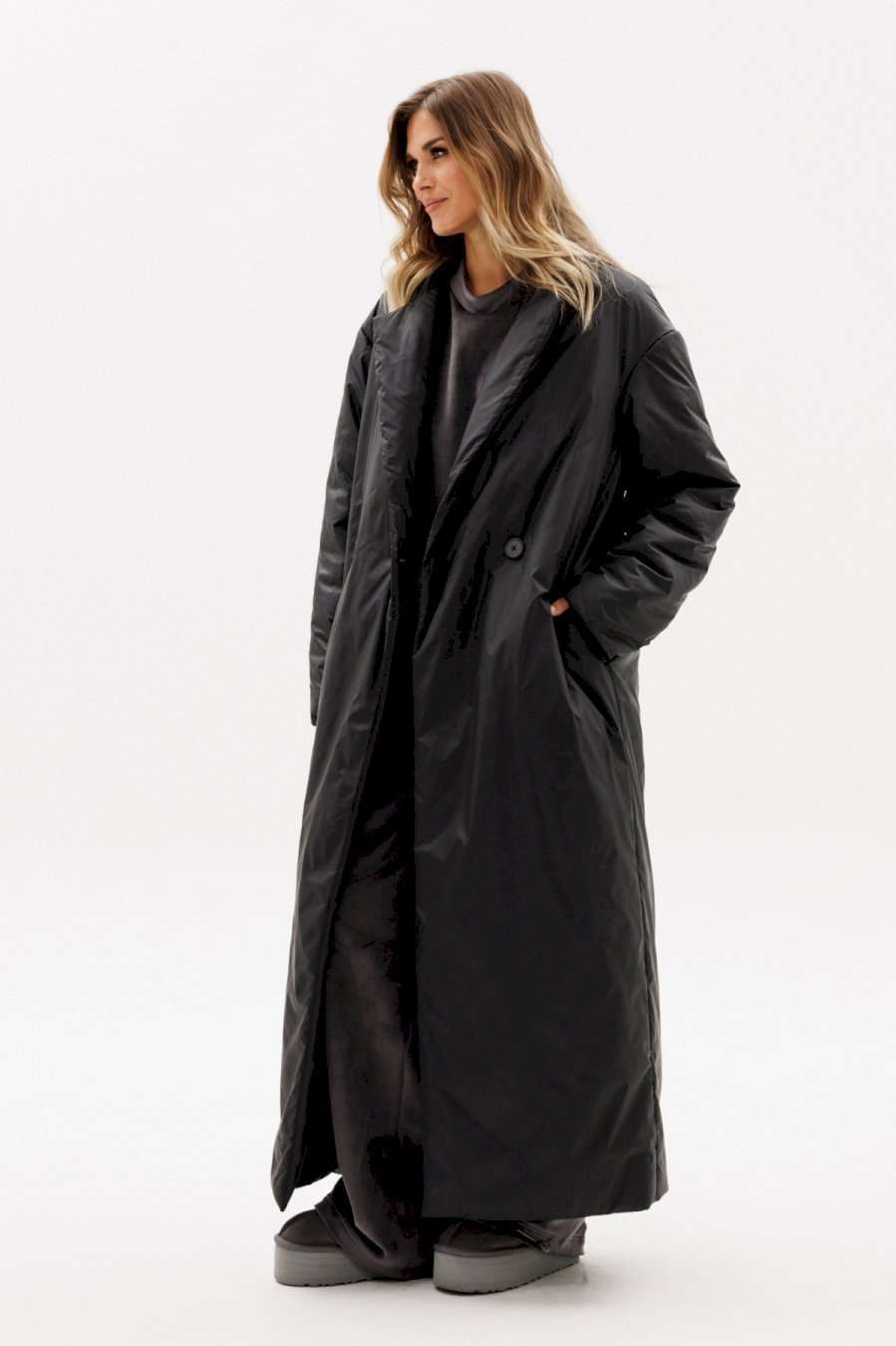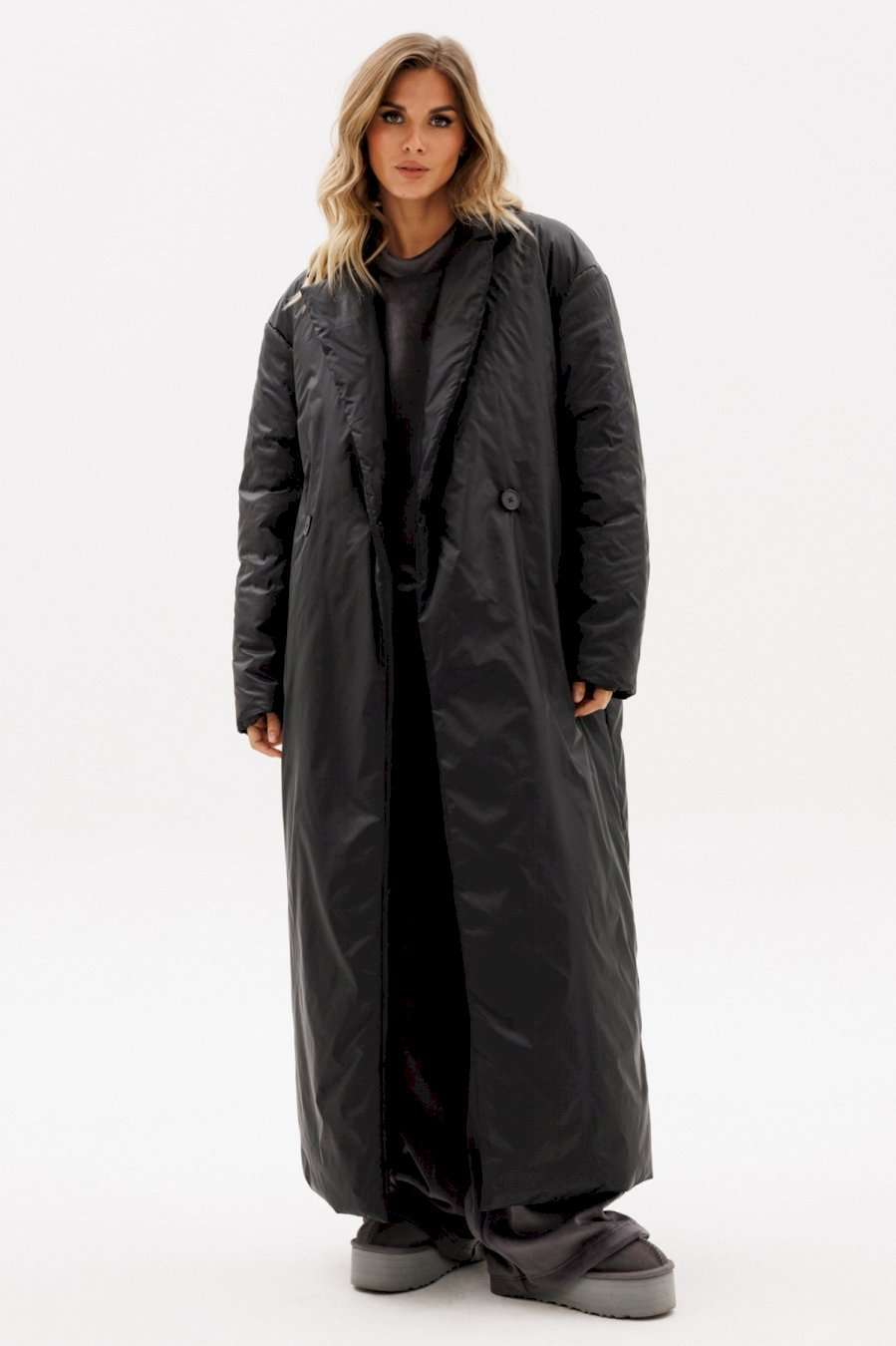 Пальто выполнено из плащевой ткани с утеплителем Isosoft. Пальто прямого силуэта, длиной до линии щиколотки. Спереди двубортная застежка на один ряд пуговиц и прорезные карманы в швах. Спинка со средним швом. Плечевой шов спущен. Воротник пиджачного типа. Рукав рубашечного покроя, двухшовный. Пальто на притачной по низу подкладке. Температурный режим: от 0 до -10 С. Длина пальто: р. 42-46 - 133,5 см, р. 48-52 - 135 см. Длина рукава: р. 42-46 - 79 см, р. 48-52 - 80 см. Гарантийный срок не установлен ГОСТ 25295 - 2003