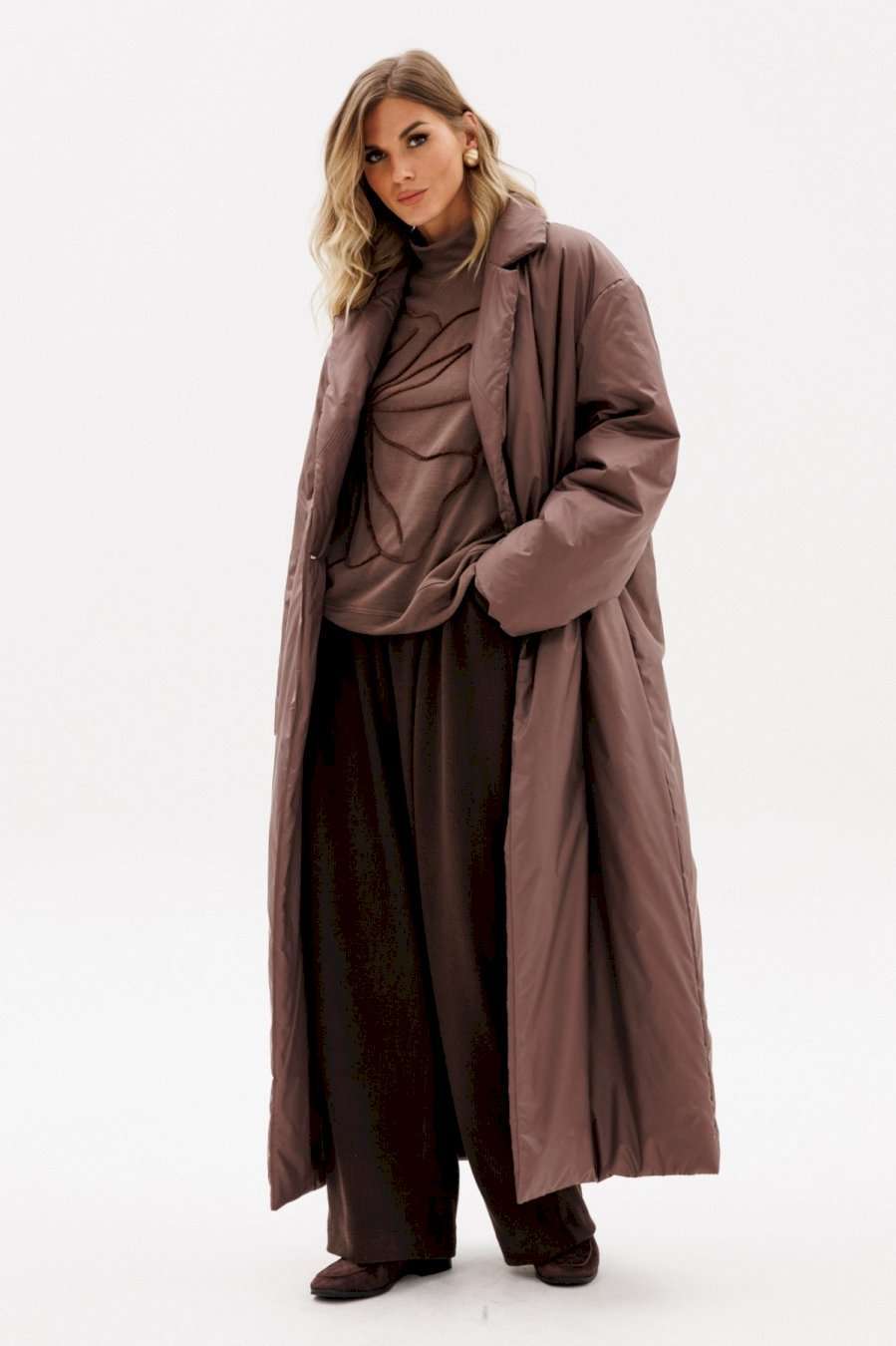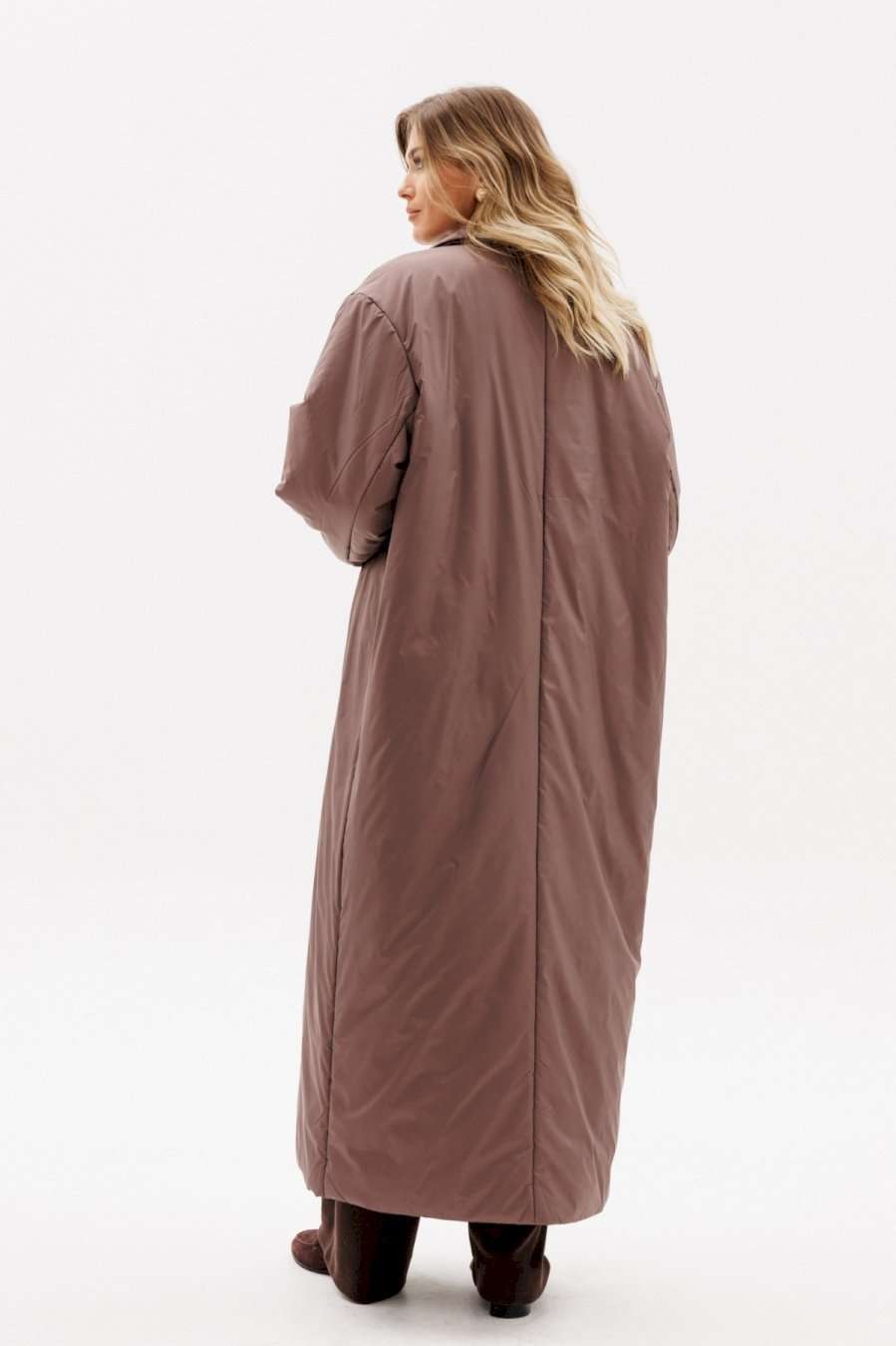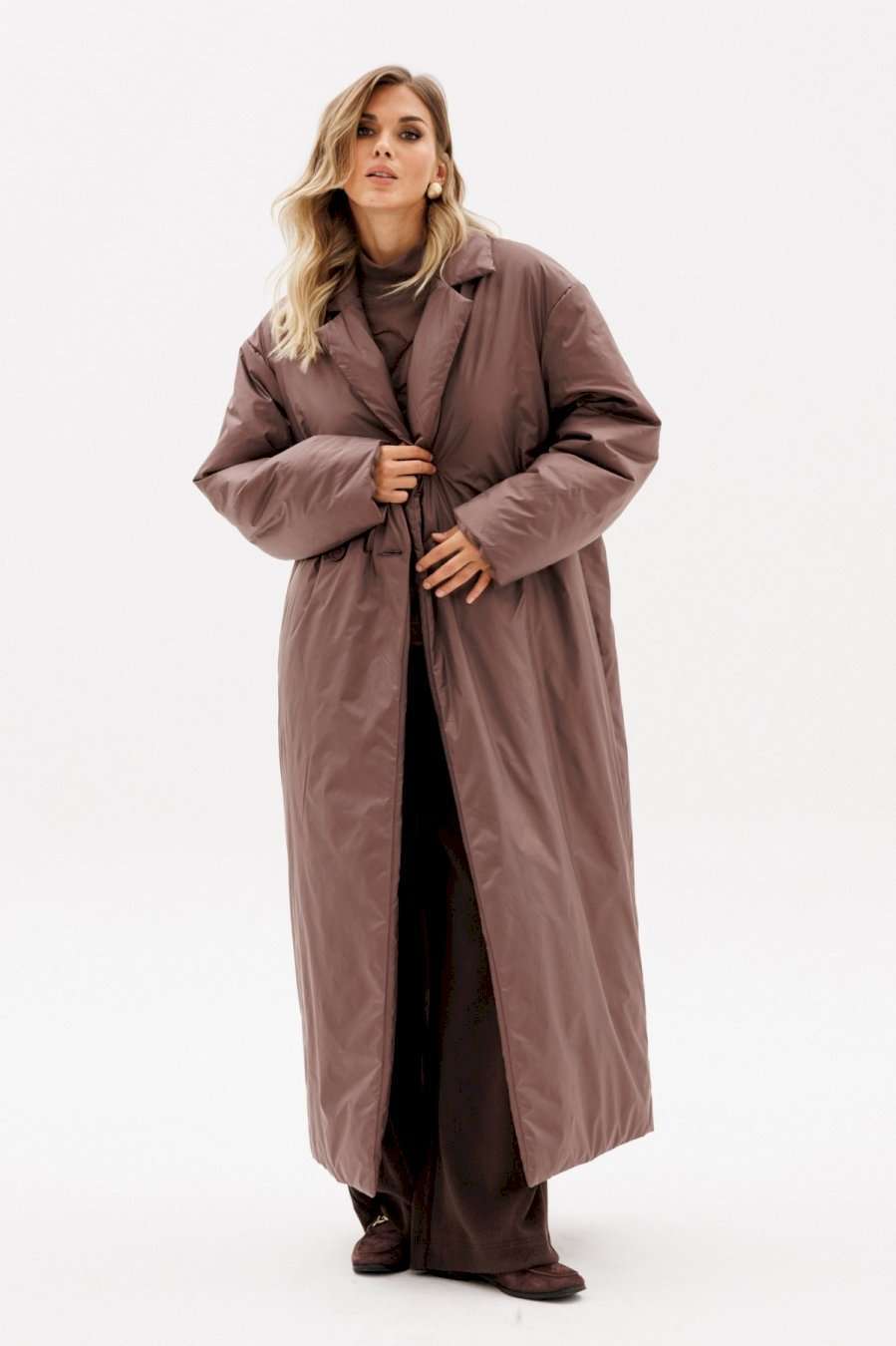 Пальто выполнено из плащевой ткани с утеплителем Isosoft. Пальто прямого силуэта, длиной до линии щиколотки. Спереди двубортная застежка на один ряд пуговиц и прорезные карманы в швах. Спинка со средним швом. Плечевой шов спущен. Воротник пиджачного типа. Рукав рубашечного покроя, двухшовный. Пальто на притачной по низу подкладке. Температурный режим: от 0 до -10 С. Длина пальто: р. 42-46 - 133,5 см, р. 48-52 - 135 см. Длина рукава: р. 42-46 - 79 см, р. 48-52 - 80 см. Гарантийный срок не установлен ГОСТ 25295 - 2003