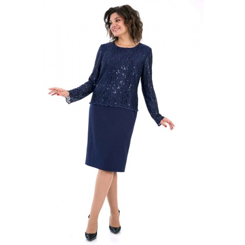 Элегантное вечернее платье, выполненное в насыщенном синем цвете, добавит изысканности любому событию. Отрезное по линии талии, этот наряд подчеркивает фигуру, обеспечивая комфорт с помощью продуманного дизайна верха, который отлетен и выполнен на подкладке. Нежное украшение в виде переливающихся пайеток по всей длине верха создаёт эффектный светоотражающий узор. Рукава длинные, одношовные, обеспечивают свободу движений и добавляют благородства образу. Застёжка на навесную петлю и пуговицу на спинке, а также декоративный разрез, завершающийся шлицей, обогащают дизайн, делая его привлекательным с любого ракурса. Перед платья украшен нагрудными и талиевыми выточками, а спинка – аналогичными талиевыми выточками для идеальной посадки. Это платье – идеальный выбор для вечерних мероприятий, когда необходимо выглядеть безупречно.