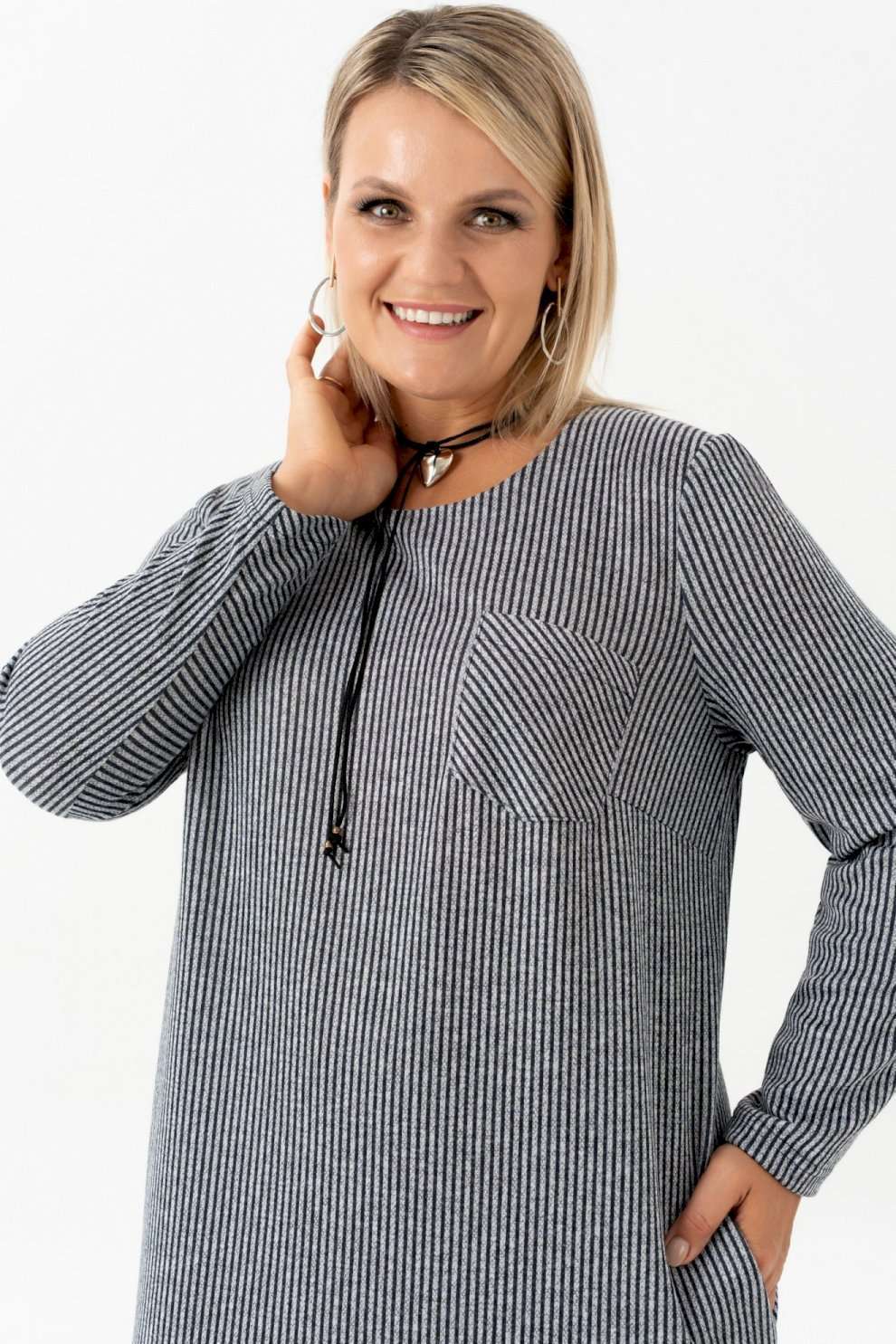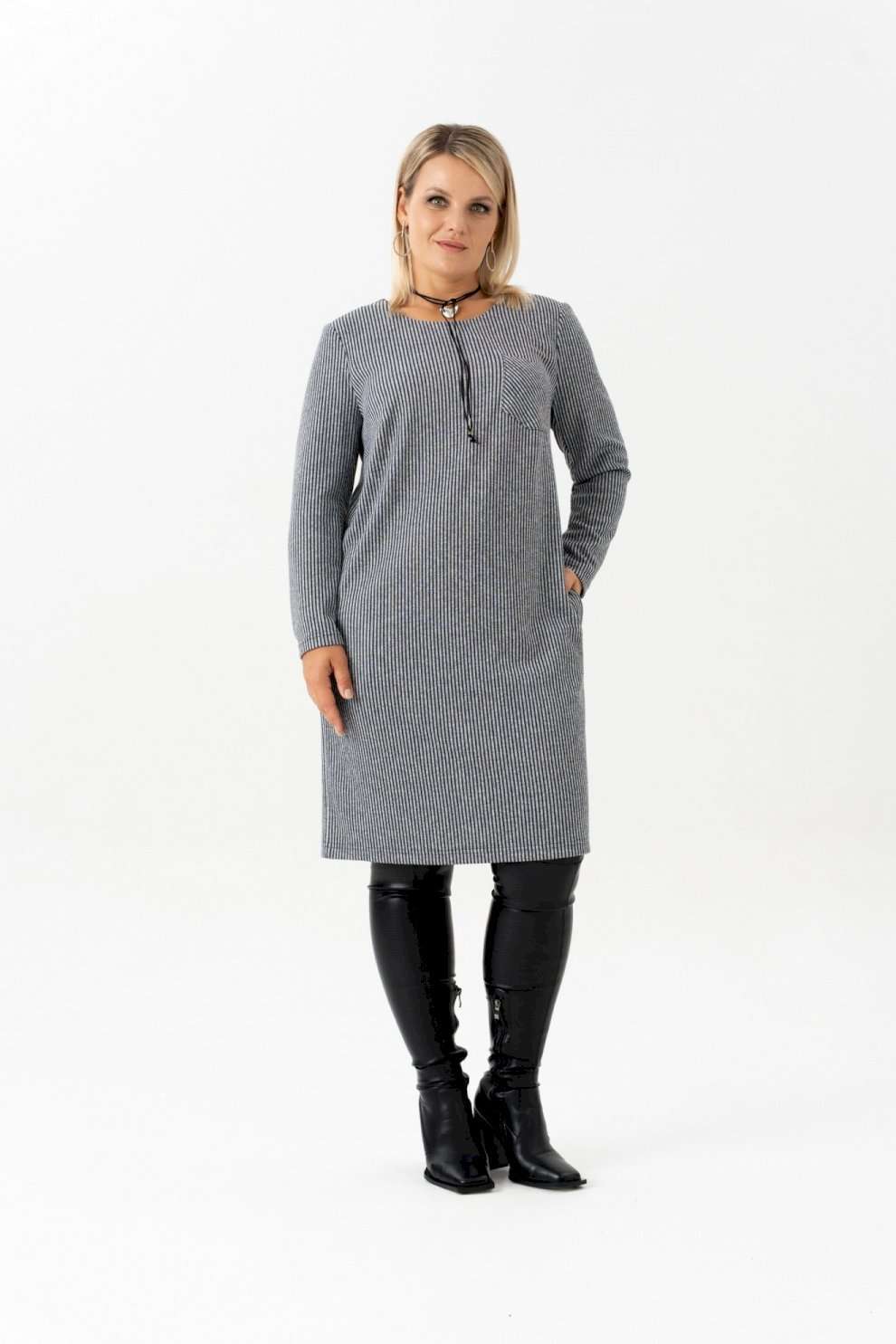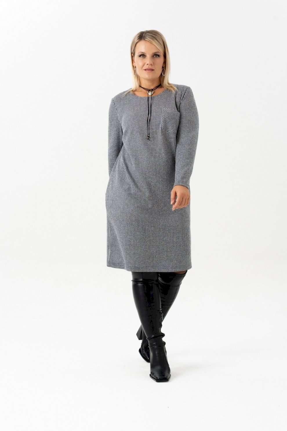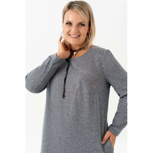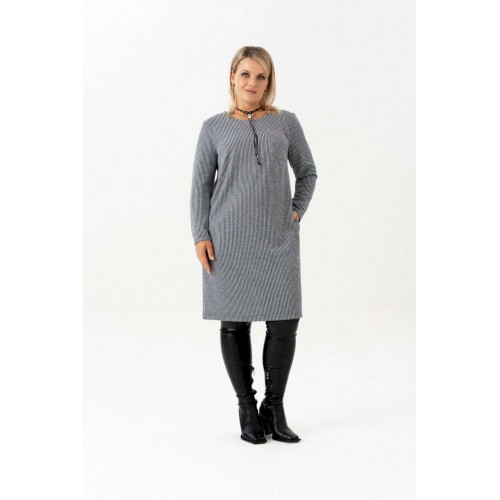 Платье с длинным рукавом в полоску - идеальный выбор для женщин, ищущих комфорт и стиль в повседневной одежде. Это платье длинной до колена, созданное без застежки для удобства надевания. Оно идеально подходит для офисной работы, а также для повседневного ношения благодаря своей легкости и практичности. Отсутствие подкладки делает его особенно удобным. Платье обеспечивает идеальный силуэт. Оно прекрасно сядет на любую фигуру. Фактура ткани добавляет текстуру и интерес к внешнему виду платья. Платье прямого силуэта с нагрудными выточками и накладным карманом в области груди. На платье обработаны карманы в боковых швах. Рукав длинный. Благодаря малой сминаемости трикотажа , вам практически не придется утюжить или отпаривать платье. Это изделие прямого свободного кроя позволяет не изменять любимому стилю и выглядеть всегда женственно и даже в холода: в осенний, зимний и весенний период. Чудесное платье на каждый день для девушки, стремящейся выглядеть модно. Платье большого размера отлично подойдет для работы, офиса и деловых встреч. Длина изделия (см): 106 Длина рукава (см): 60