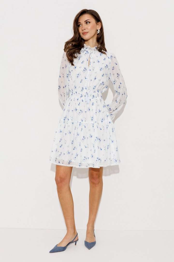 Платье 3255 розовый принт BUTER — великолепный выбор для вашего гардероба. Коллекция бренда BUTER предлагает вам нежное платье, созданное из качественного полиэстера. Этот материал обеспечивает комфорт и легкость в носке, а также стойкость к износу. Полуприлегающий фасон с отрезной линией талии и V-образным вырезом идеально подчеркивает фигуру. Особенности дизайна включают стойку с рюшей и застежку на пуговицы, добавляющие нотку изысканности. Рукава с резинкой и волан по низу создают воздушный стиль, подходящий для весны и лета. Принт в розовых тонах делает это платье идеальным для любого праздничного события или вечеринки.